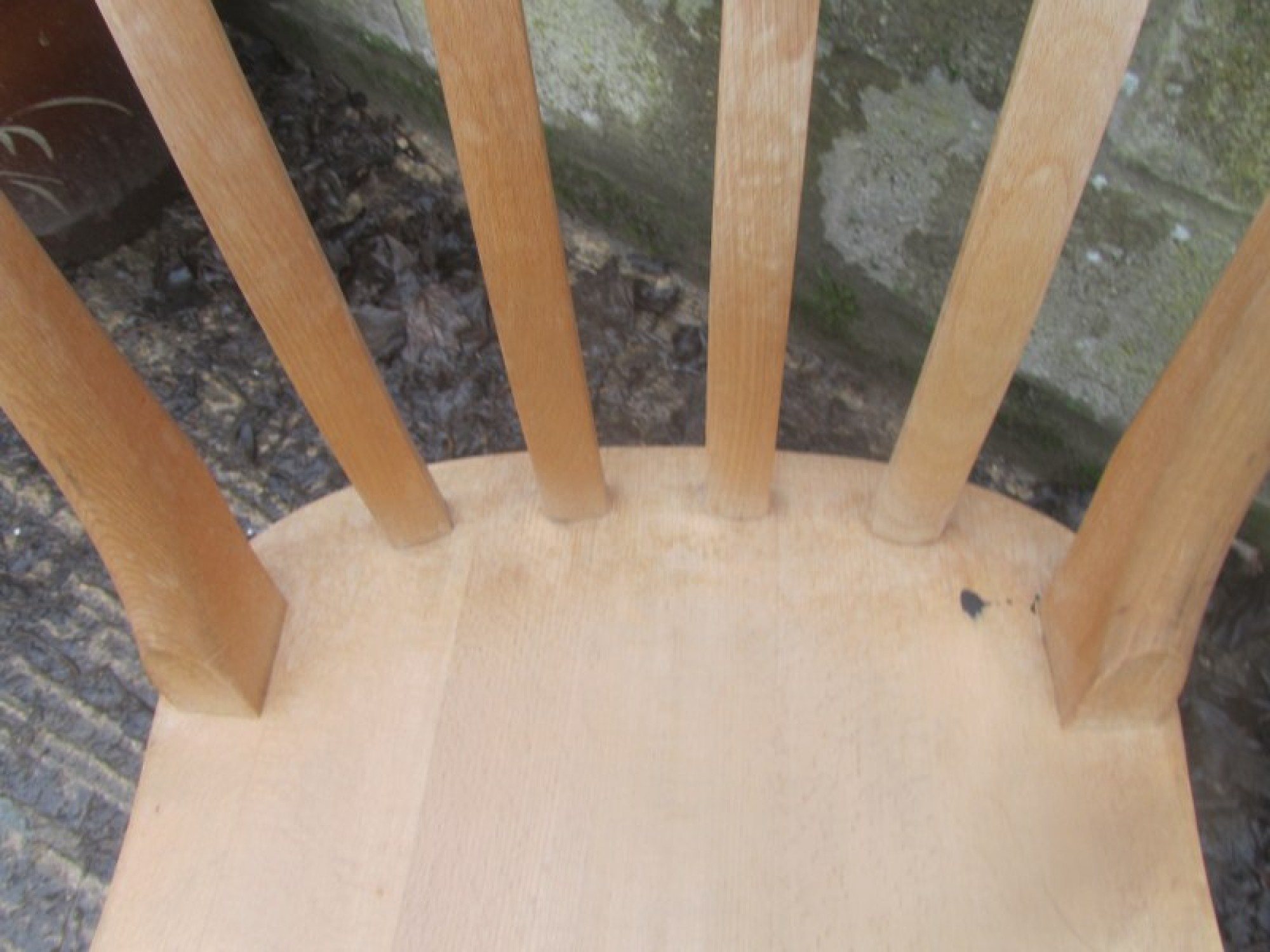 THIS IS A CHAIR FOR THE KITCHEN OR DINING ROOM. IN A TRADITIONAL FARMHOUSE STYLE. THE FRAME IS SOLID BEECH WOOD. SEAT HEIGHT IS 47cm. SMALL INK STAIN ON THE SEAT.