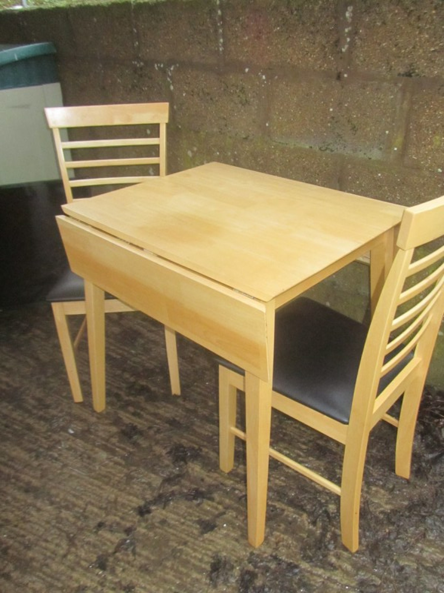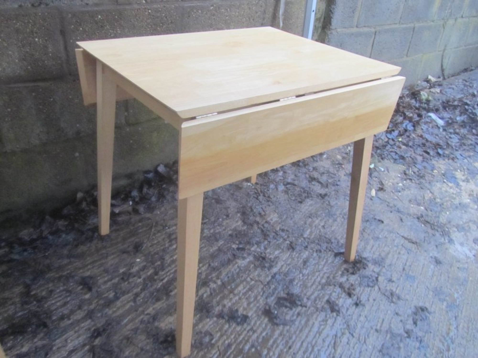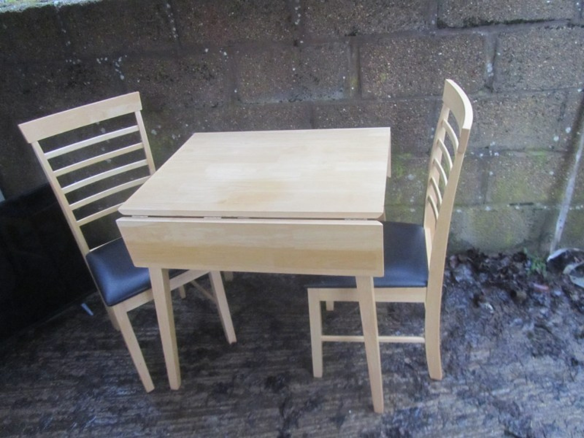 Items for Sale MODERN BEECH KITCHEN DINING TABLE & 2 CHAIRS Share: View Larger Image View Larger Image View Larger Image View Larger Image View Larger Image View Larger Image Select to enlarge Swipe £ 50 - THE SET THIS IS A STRONG AND STURDY BEECH DINING TABLE. THE 2 CHAIRS ARE BEECH AND ARE STURDY. IN GOOD CONDITION. CHAIRS ARE 94cm HIGH, 43cm WIDE AND 47cm DEEP, SEAT HEIGHT IS 45cm. TABLE SIZE IS BELOW. FOR SALE AS A SET. ADDITIONAL DETAILS RESERVE ITEM Condition:GOOD Manufacture Date:2000s Height:74 cms Length:76 cms Depth:65 / 97 cms Item Number:40985 * Please complete all the fields below to send an enquiry about this product. Please reserve this item for me… Reset Send