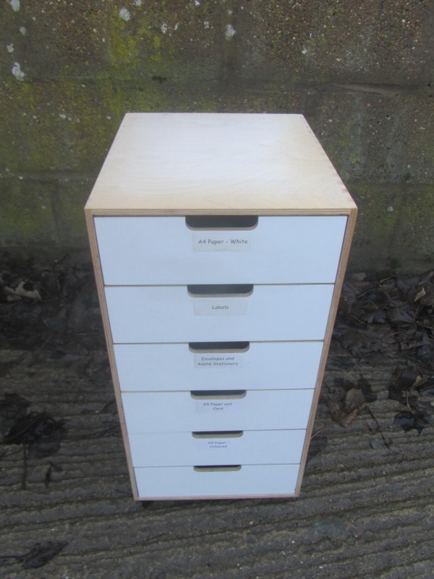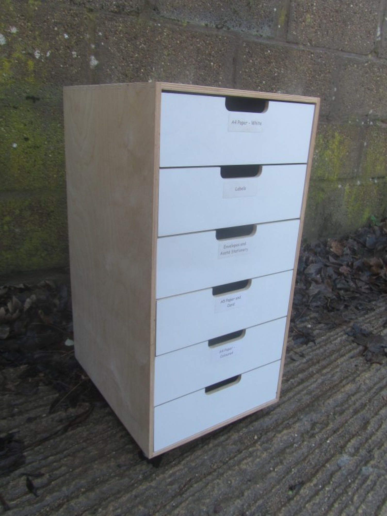Items for Sale MODERN WHITE OFFICE DRAWERS / CABINET Share: View Larger Image View Larger Image View Larger Image Select to enlarge £ 15 A MODERN CHEST OF DRAWERS / OFFICE DRAWERS. ADDITIONAL DETAILS RESERVE ITEM Condition:GOOD Manufacture Date:2000s Height:61 cms Length:30 cms Depth:36 cms Quantity:1 Item Number:40679 * Please complete all the fields below to send an enquiry about this product. Please reserve this item for me… Reset Send