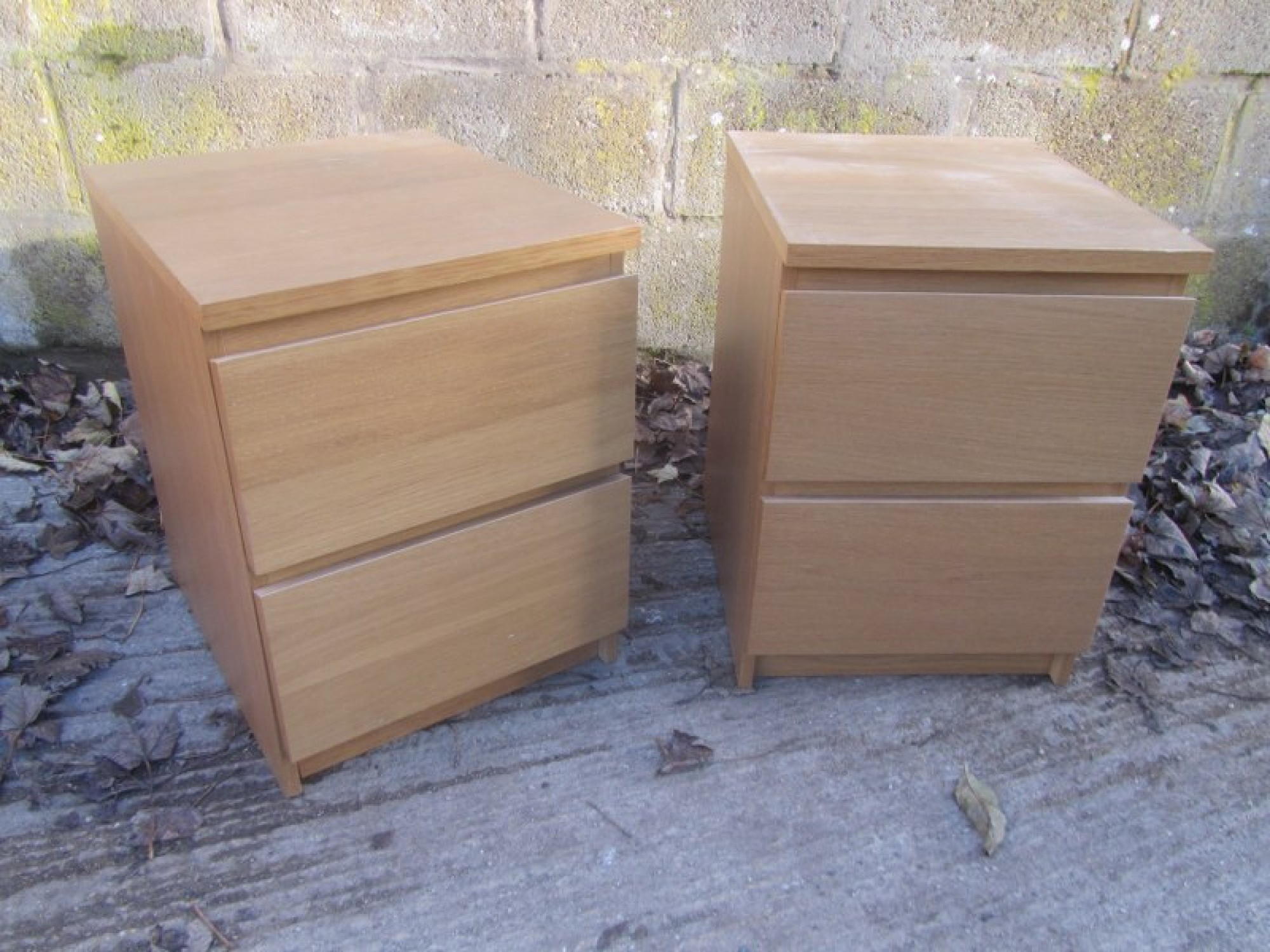 A MODERN CHEST OF DRAWERS. IT IS IN AN OAK VENEER AND IN GOOD CONDITION. SOLD AS A PAIR.