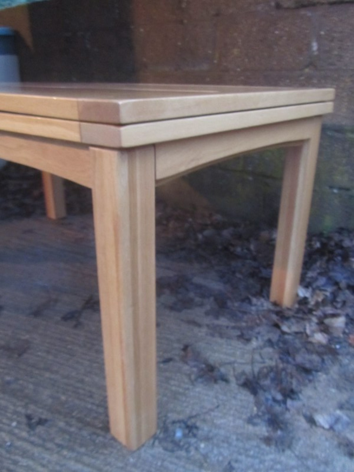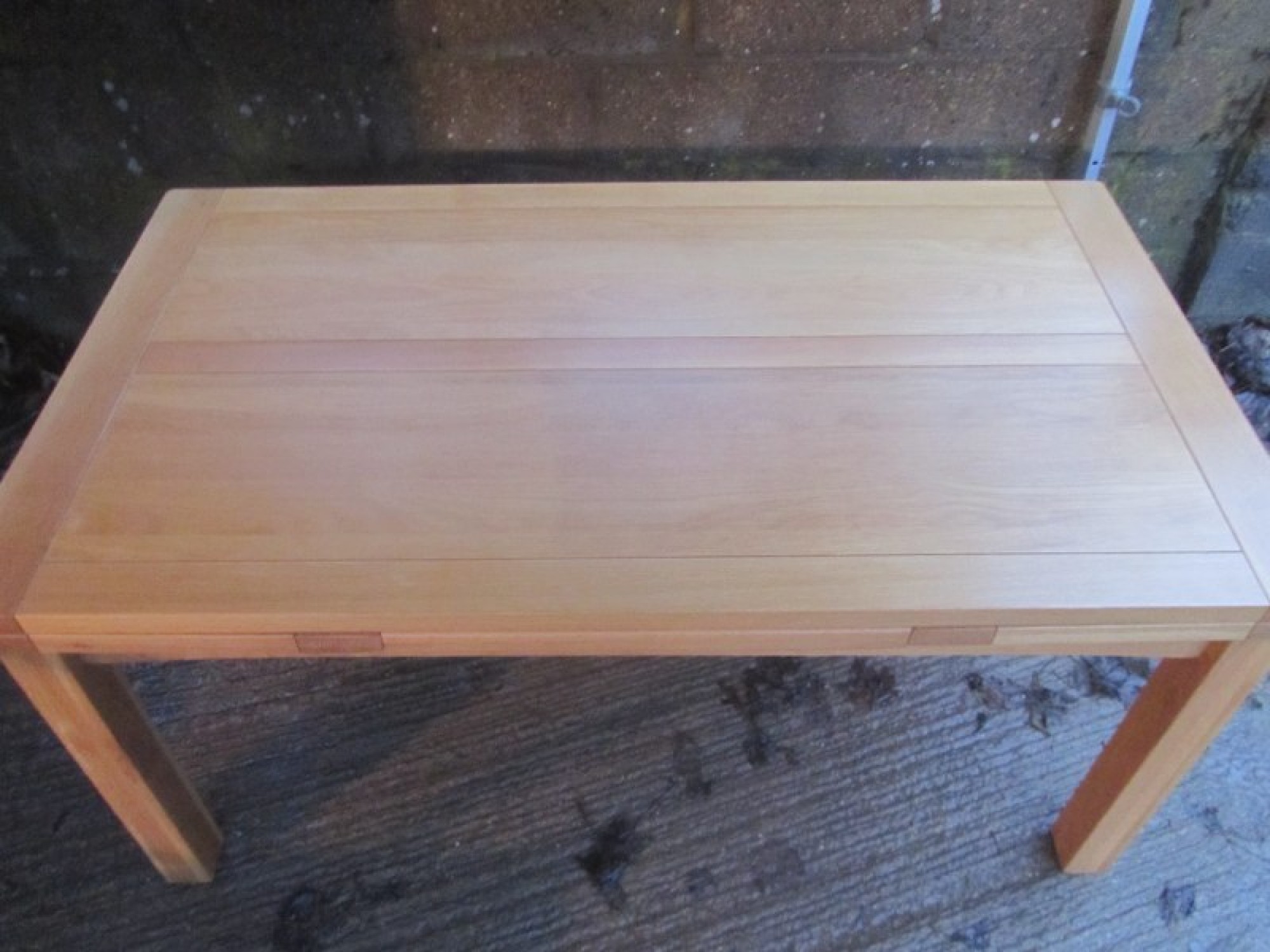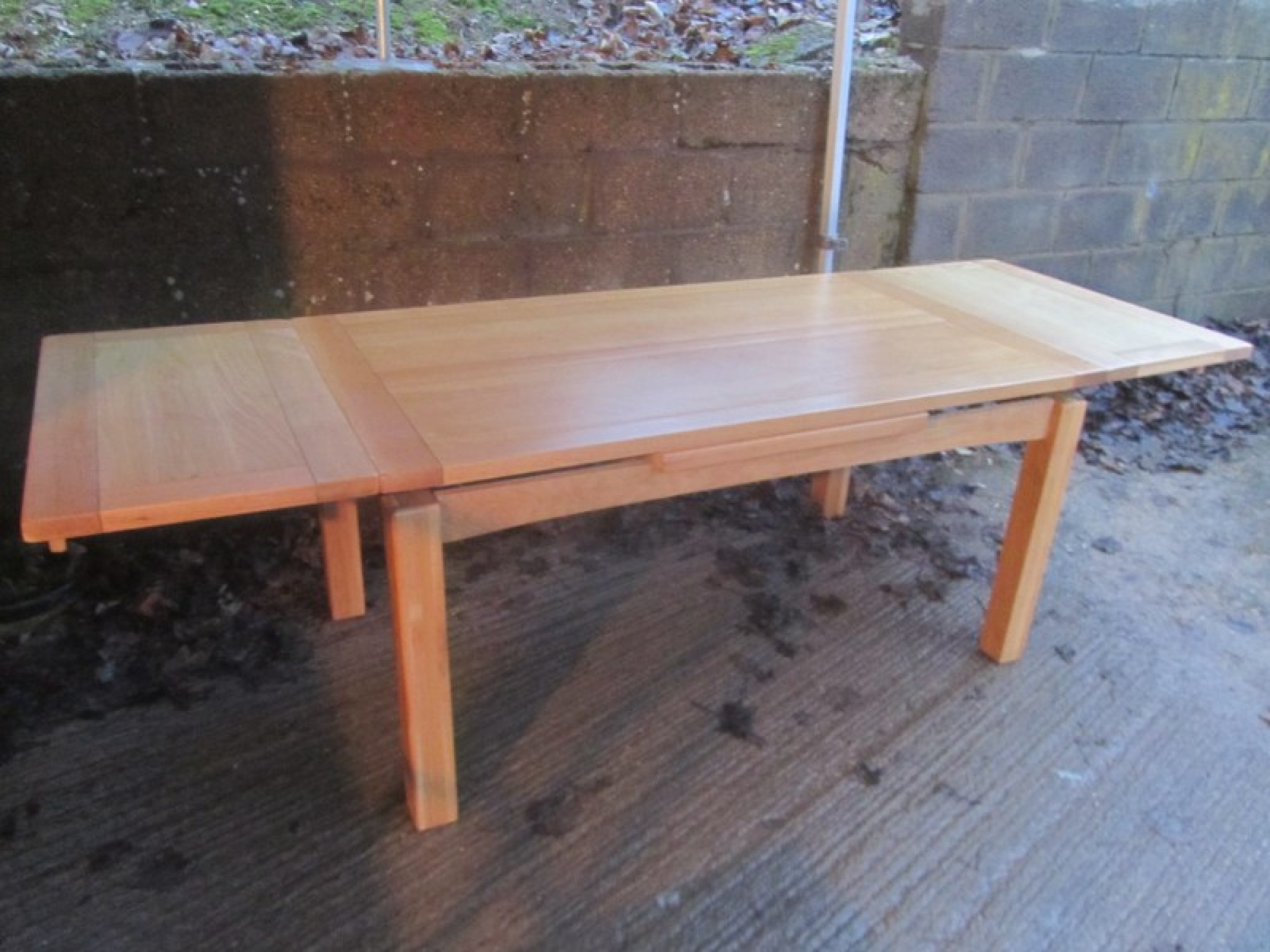 THE TABLE HAS REMOVABLE LEGS, THE TOP IS IN AN OAK VENEER. IT SEATS 6 - 8 DINERS, WITH A SLIDE OUT LEAF EACH SIDE. TABLE MEASUREMENTS ARE BELOW, EXTENDED SIZE IS 260cm x 90cm. A PRACTICAL AND STYLISH DINING TABLE. IN GOOD CONDITION.
