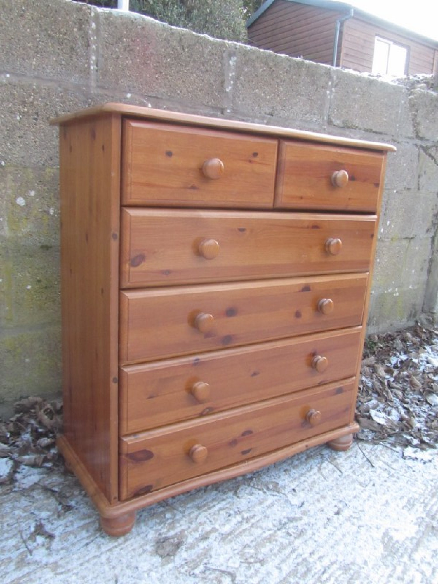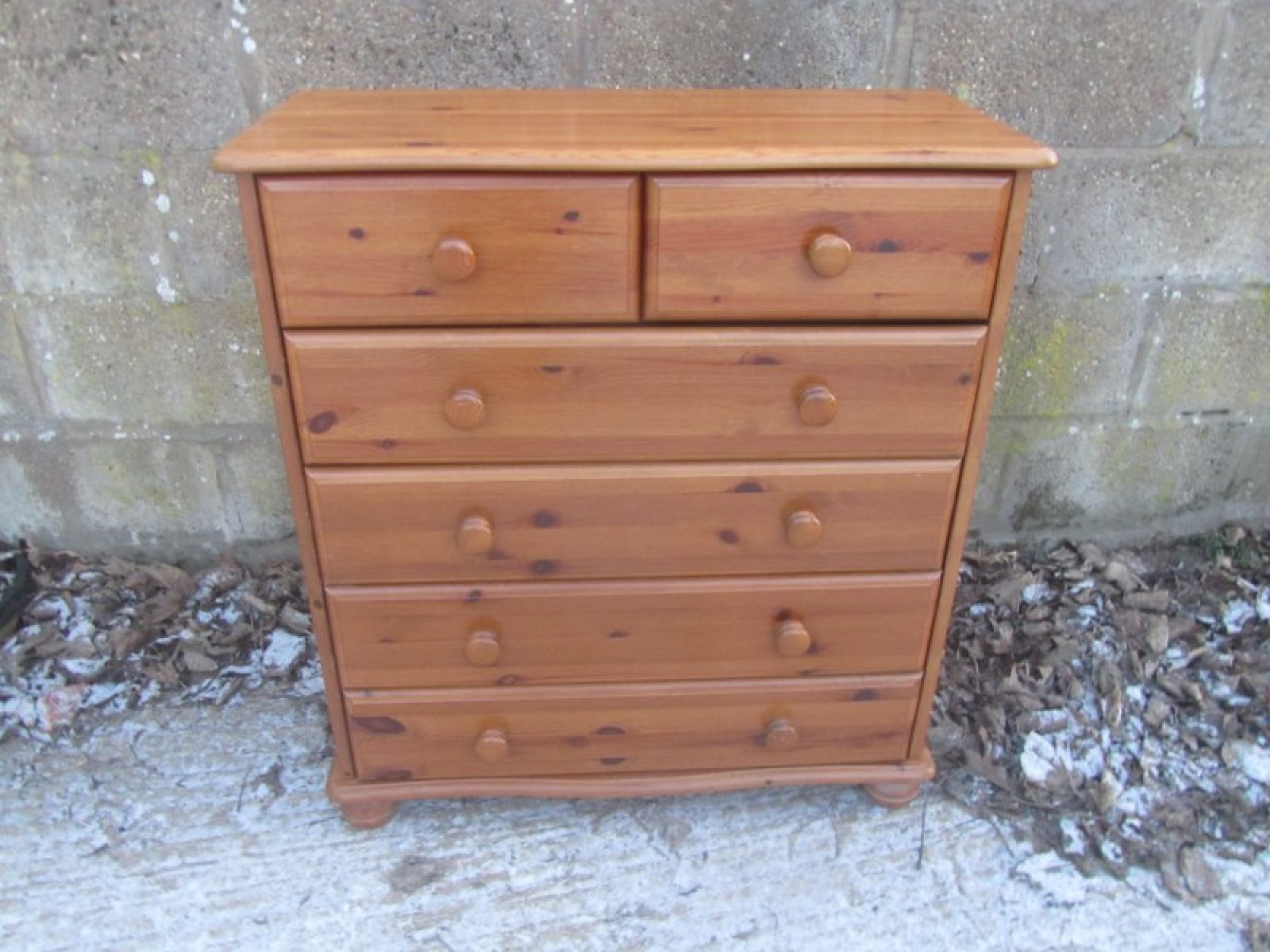 A MODERN SOLID PINE CHEST OF DRAWERS, IN AN ANTIQUE PINE COLOUR FINISH, STRONG AND STURDY.