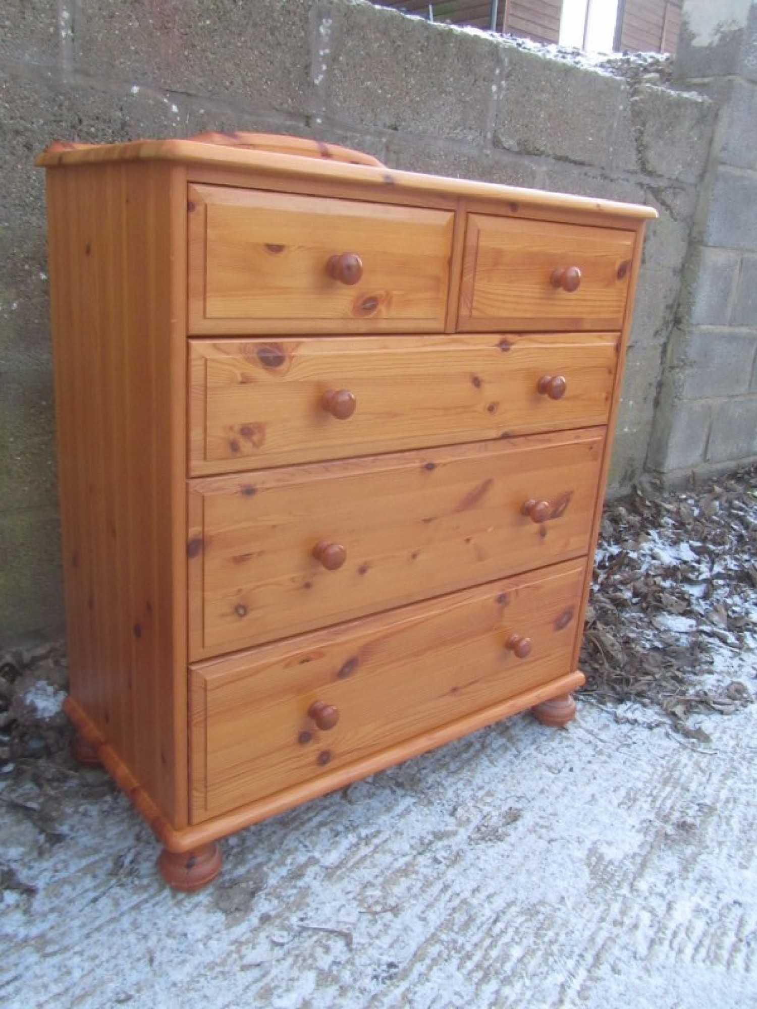 A MODERN SOLID PINE CHEST OF DRAWERS, IN AN ANTIQUE PINE COLOUR FINISH, STRONG AND STURDY.