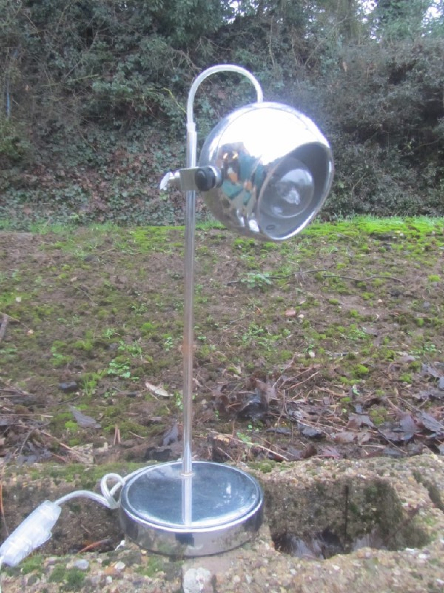 A MODERN DESK LAMP WITH MOVEABLE HEAD. SOME RUST AND WEAR.