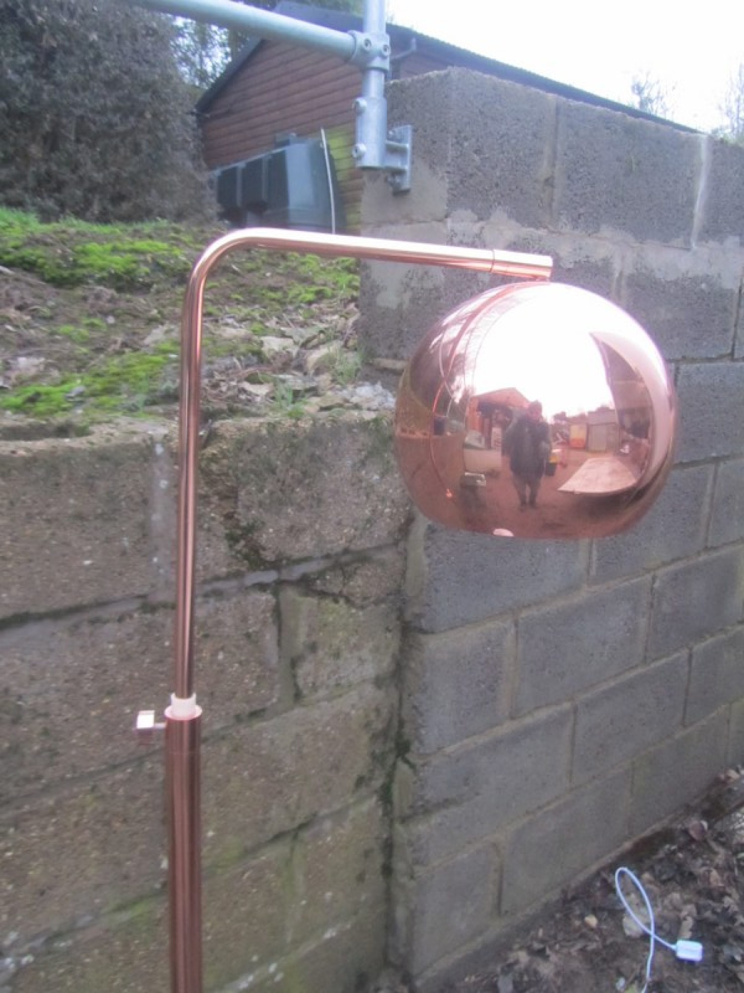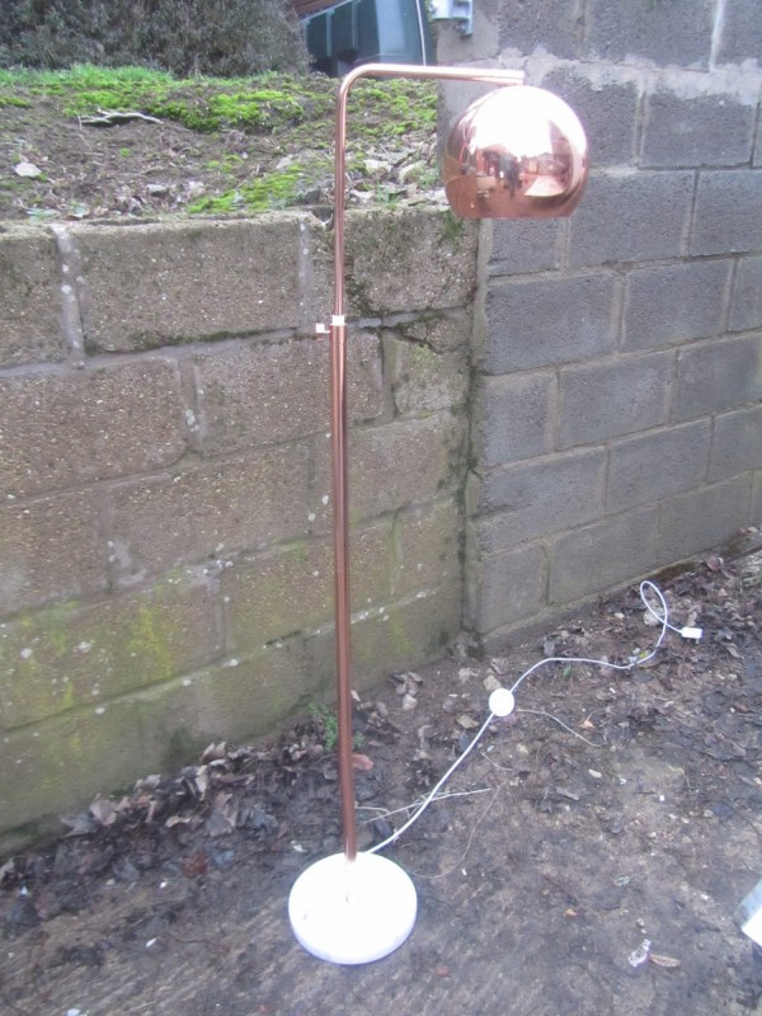 A MODERN TALL LAMP WITH CURVED ARM.
