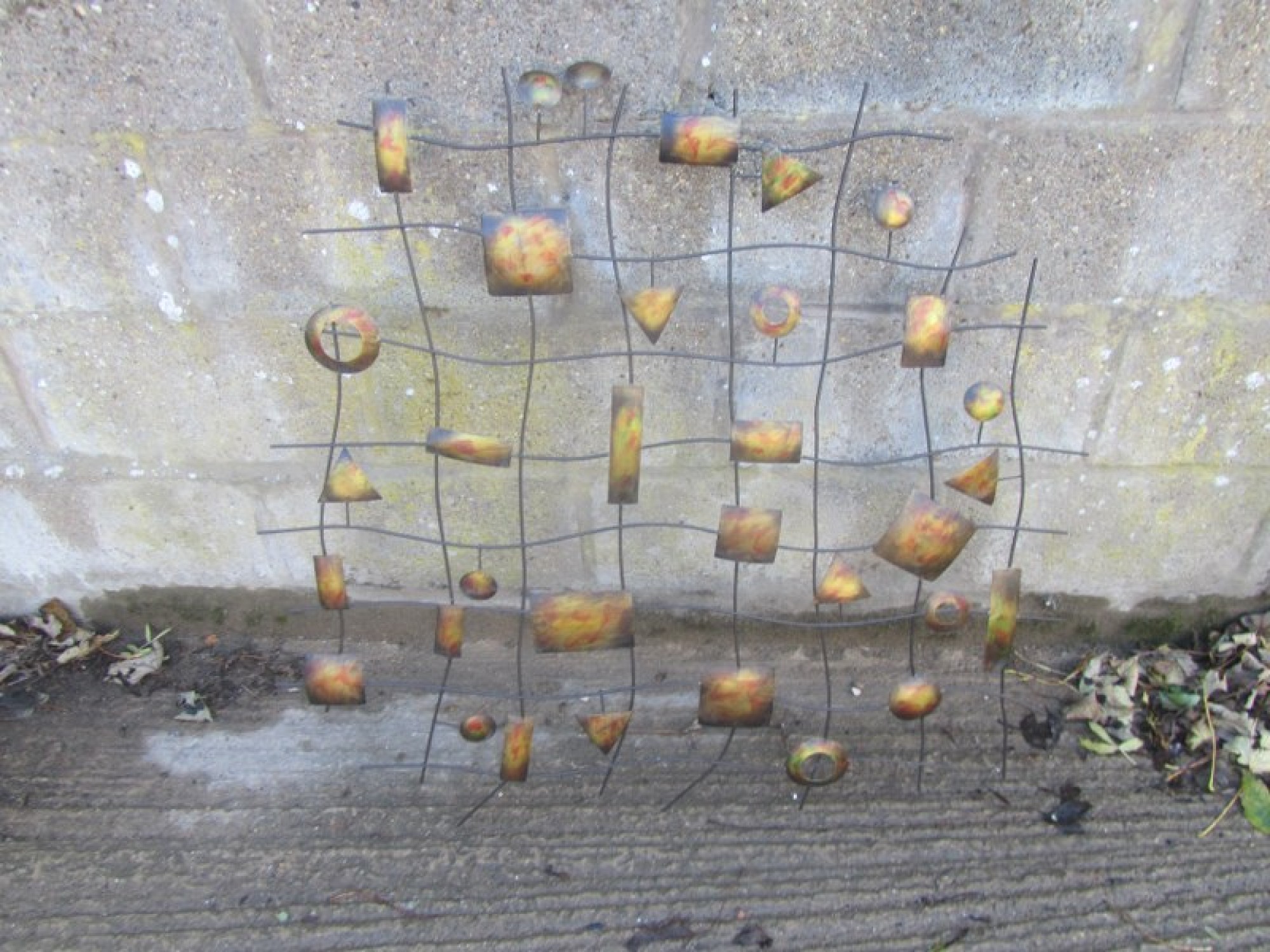 Items for Sale MODERN METAL WALL ART Share: View Larger Image View Larger Image Select to enlarge £ 10 MODERN METAL WALL ART. ADDITIONAL DETAILS RESERVE ITEM Condition:GOOD Manufacture Date:2000s Height:95 cms Length:95 cms Depth:2 cms Quantity:1 Item Number:40477 * Please complete all the fields below to send an enquiry about this product. Please reserve this item for me… Reset Send