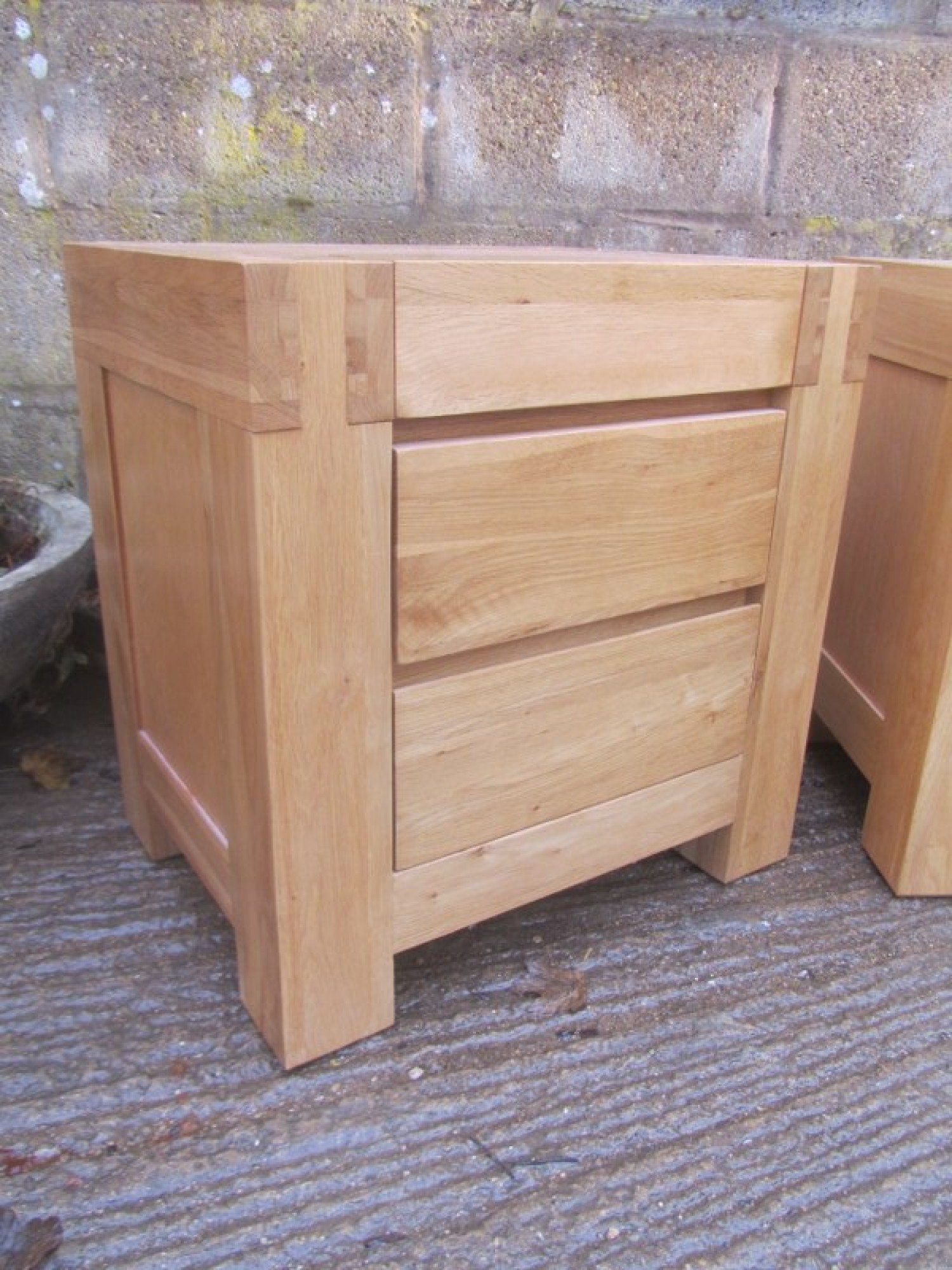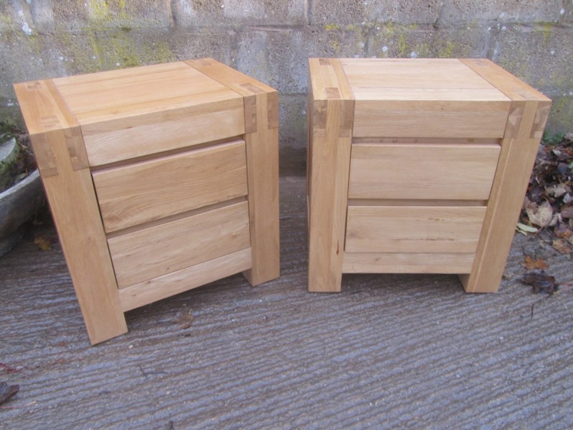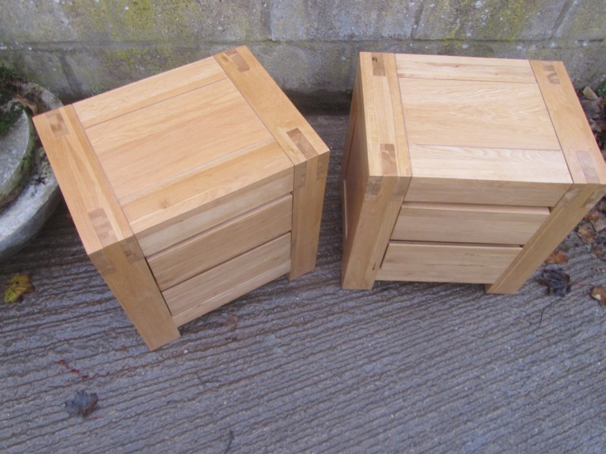 A PAIR OF OAK BEDSIDE CABINETS IN A MODERN STYLE. STRONG AND STURDY. SOLID & VENEER. LARGE AND HEAVY.