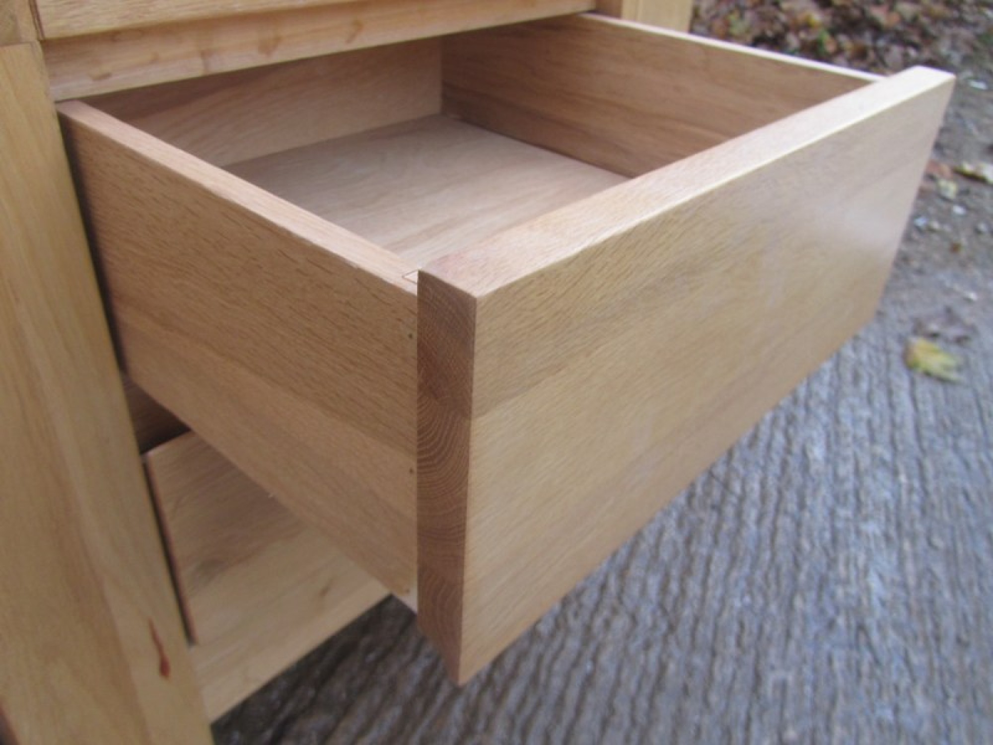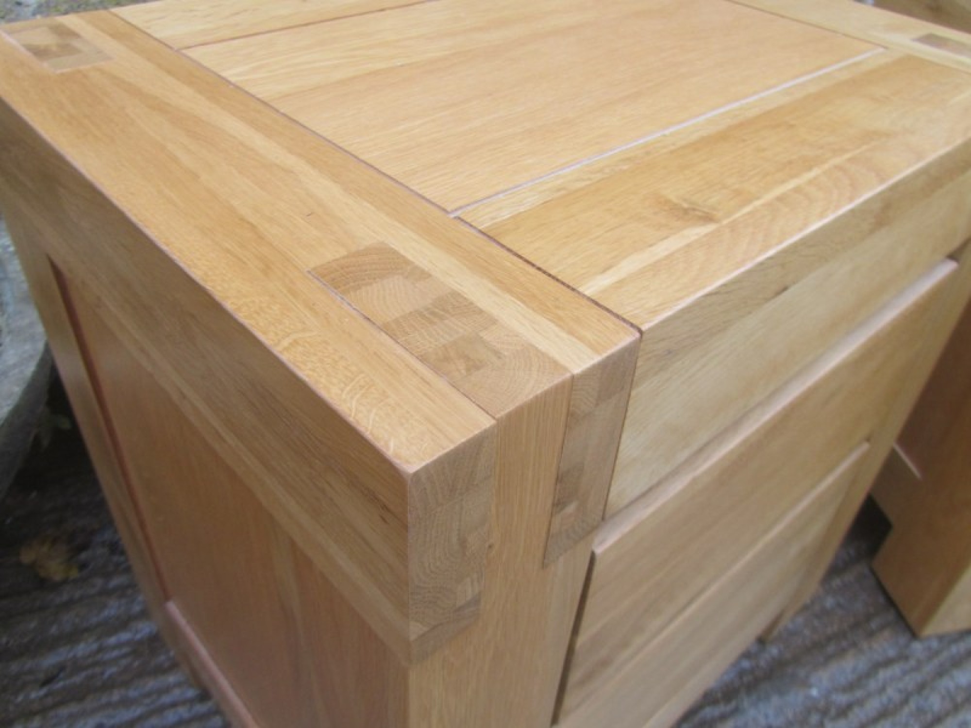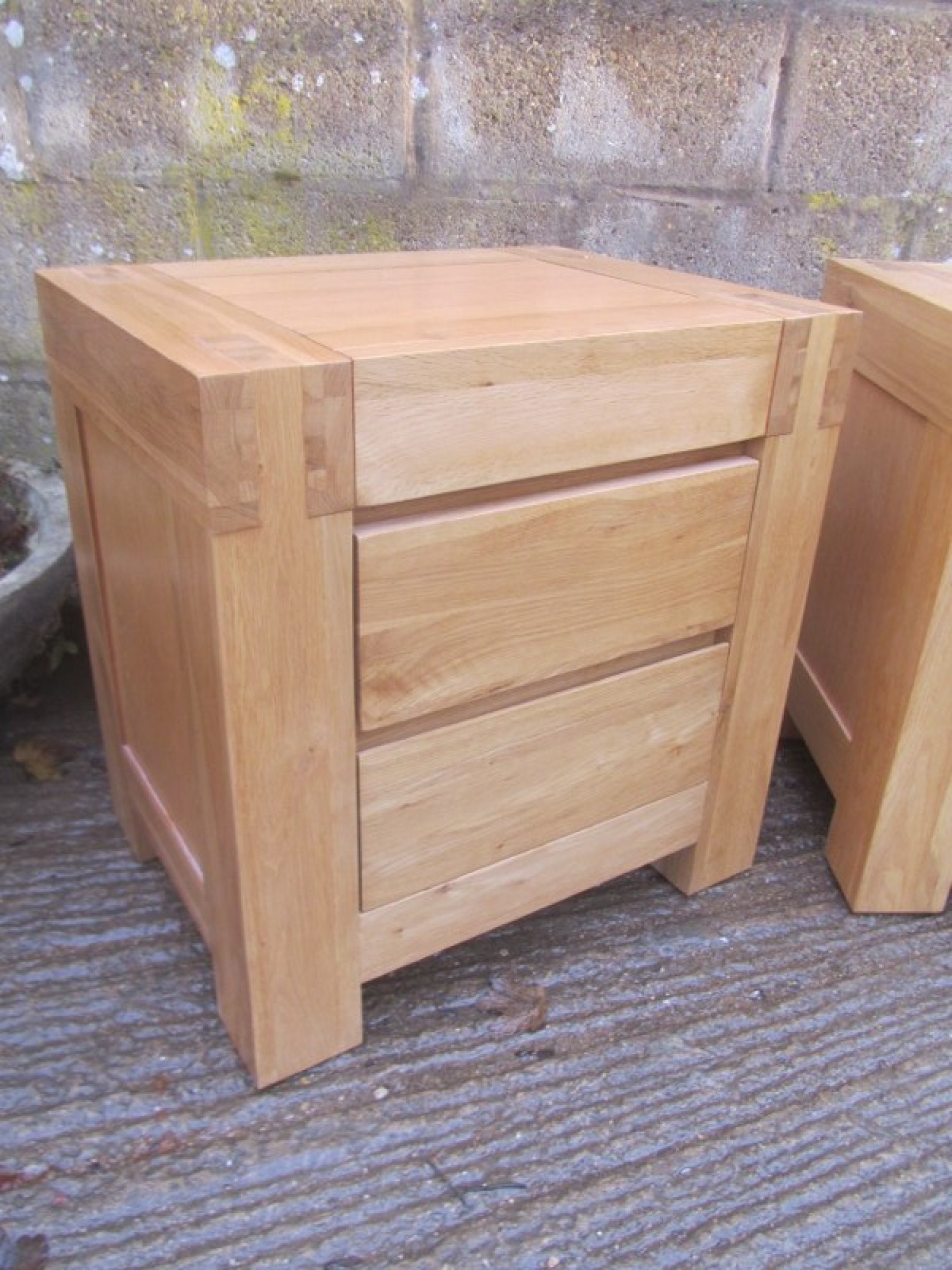 A PAIR OF OAK BEDSIDE CABINETS IN A MODERN STYLE. STRONG AND STURDY. SOLID & VENEER. LARGE AND HEAVY.