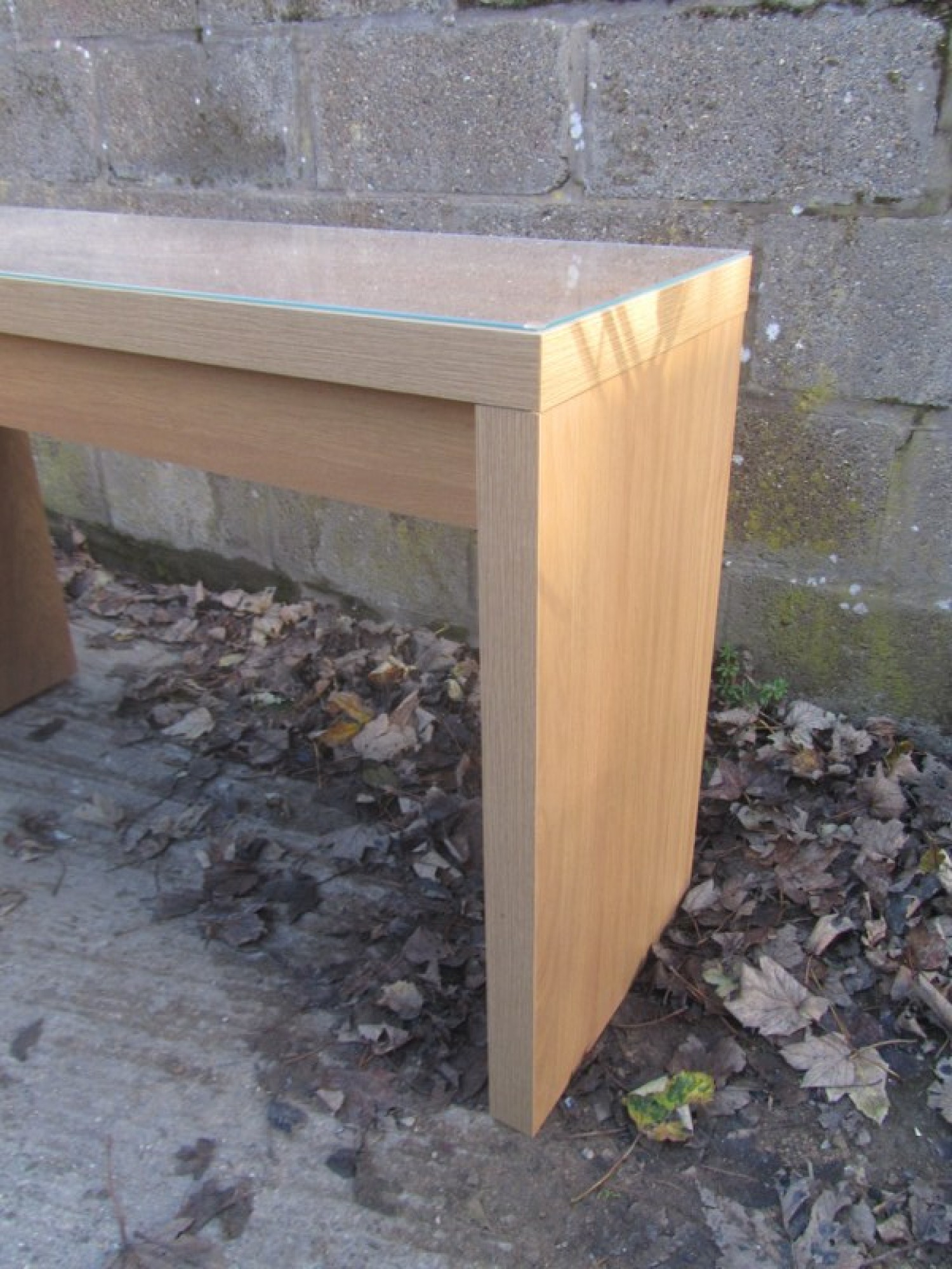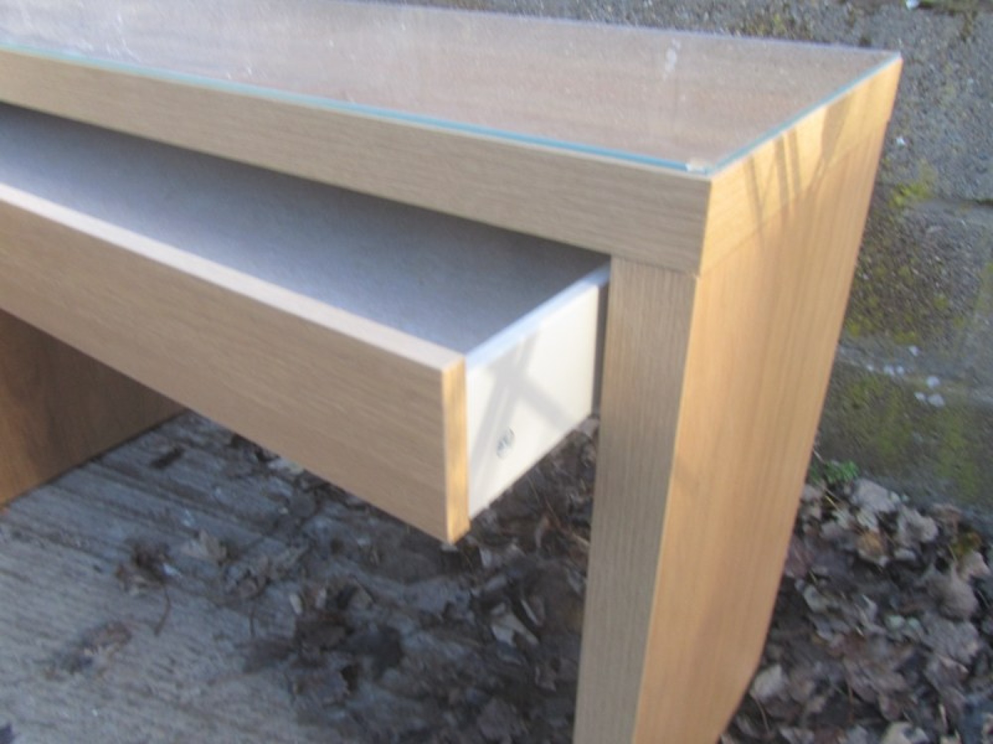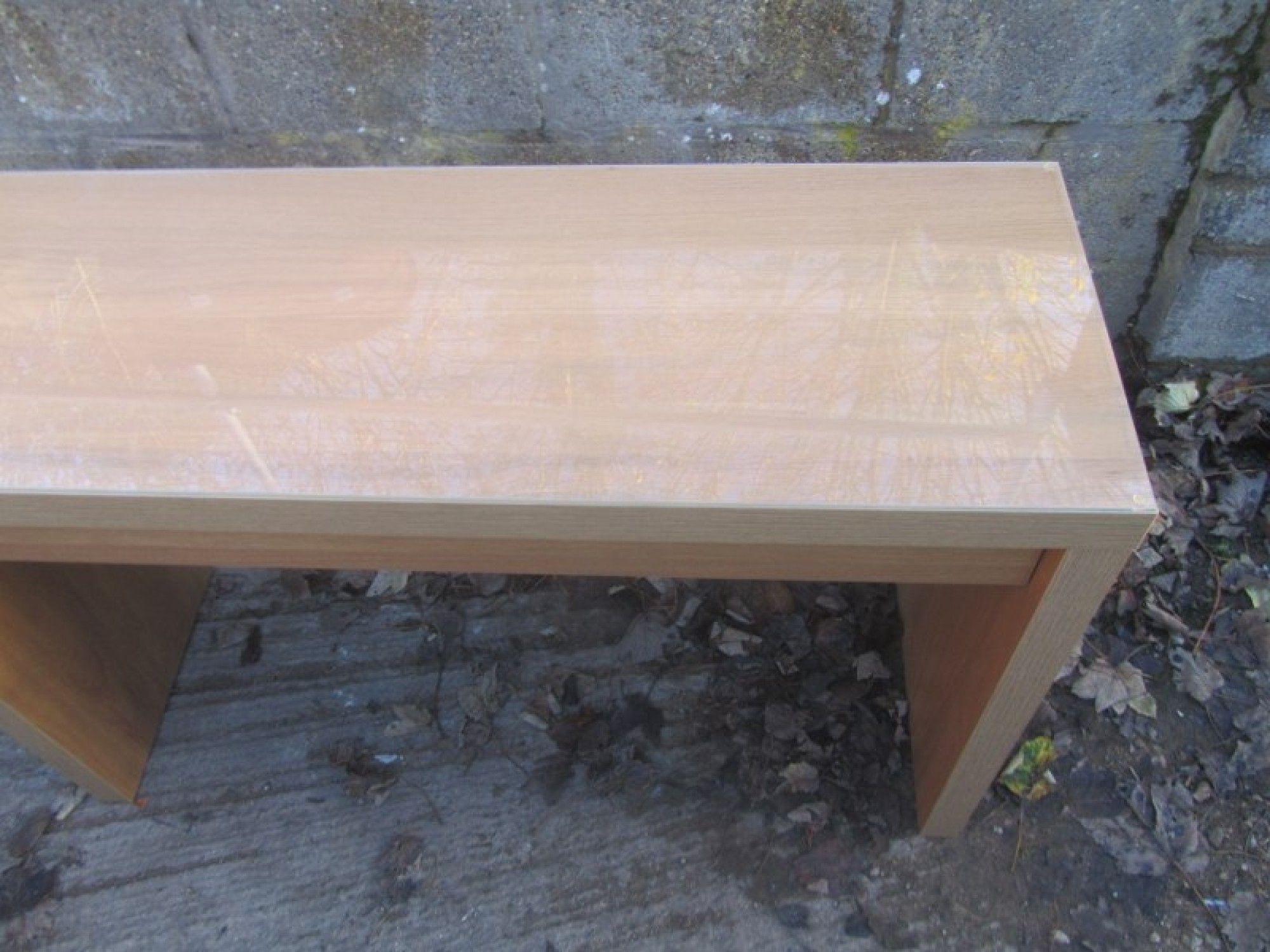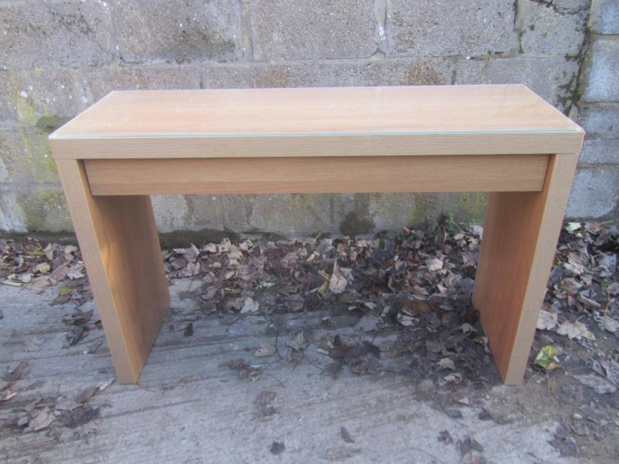 AN OAK EFFECT DRESSING TABLE IN A MODERN MINIMALIST STYLE. SINGLE DRAWER.