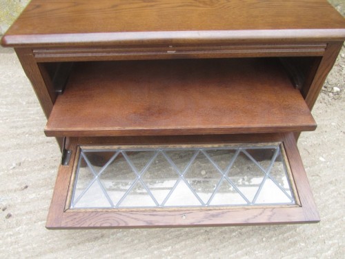 A CABINET IN OAK VENEER. DROP DOWN DOOR.