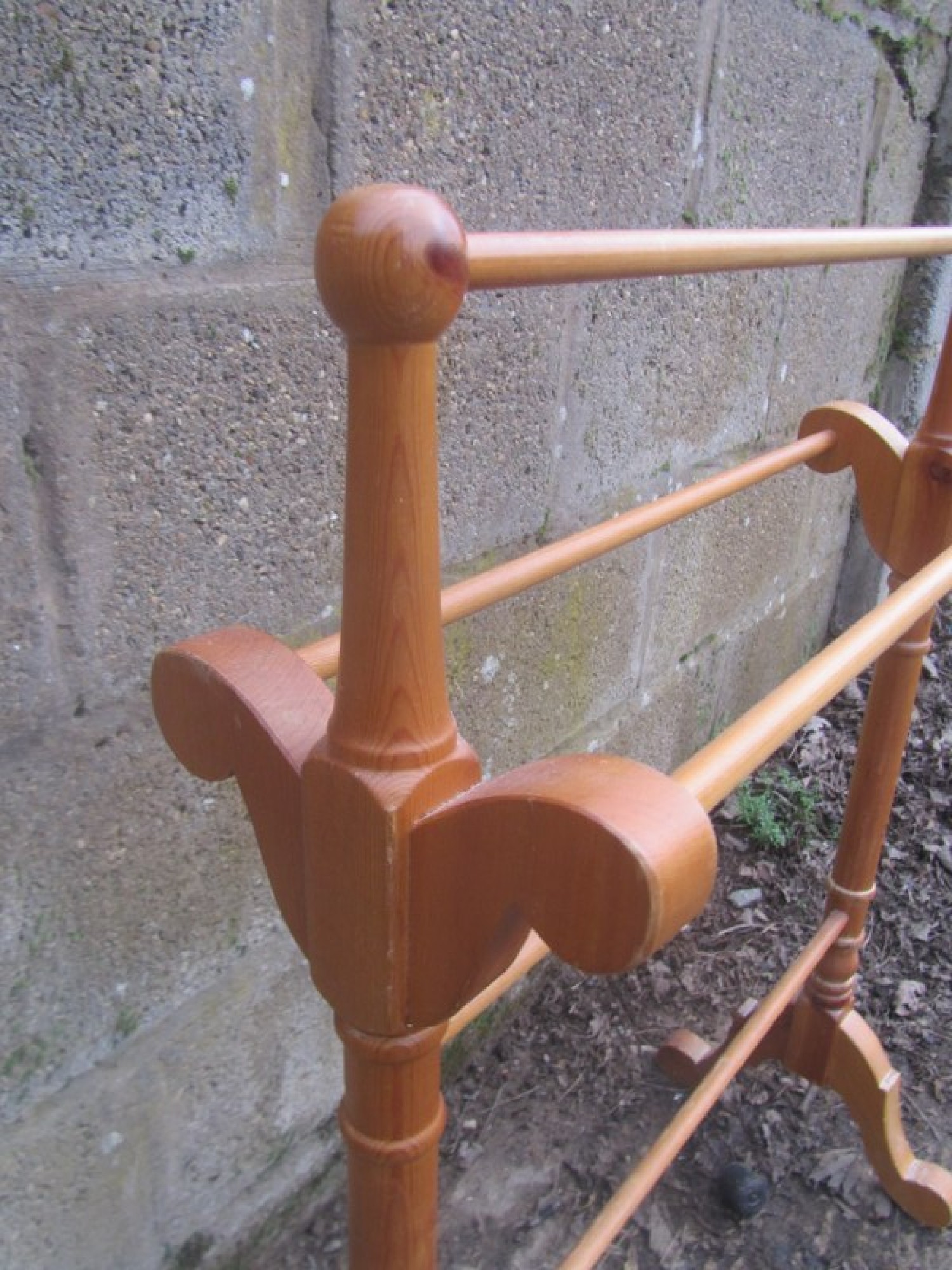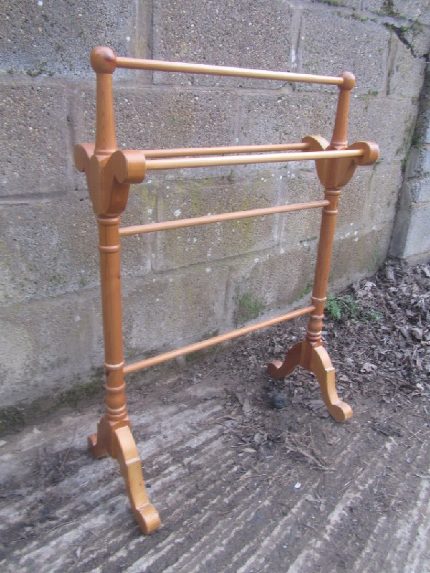 A SMALL TOWEL RAIL MADE FROM SOLID PINE. IT IT OF SIMPLE CONSTRUCTION, STRONG AND STURDY. IDEAL FOR A BATHROOM OR ANYWHERE IN THE HOME. A USEFUL PIECE.