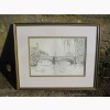 AN ORIGINAL INK DRAWING OF THE TOWN BRIDGE - STAMFORD - BY MILDRED HARDING, SIGNED BY THE ARTIST.