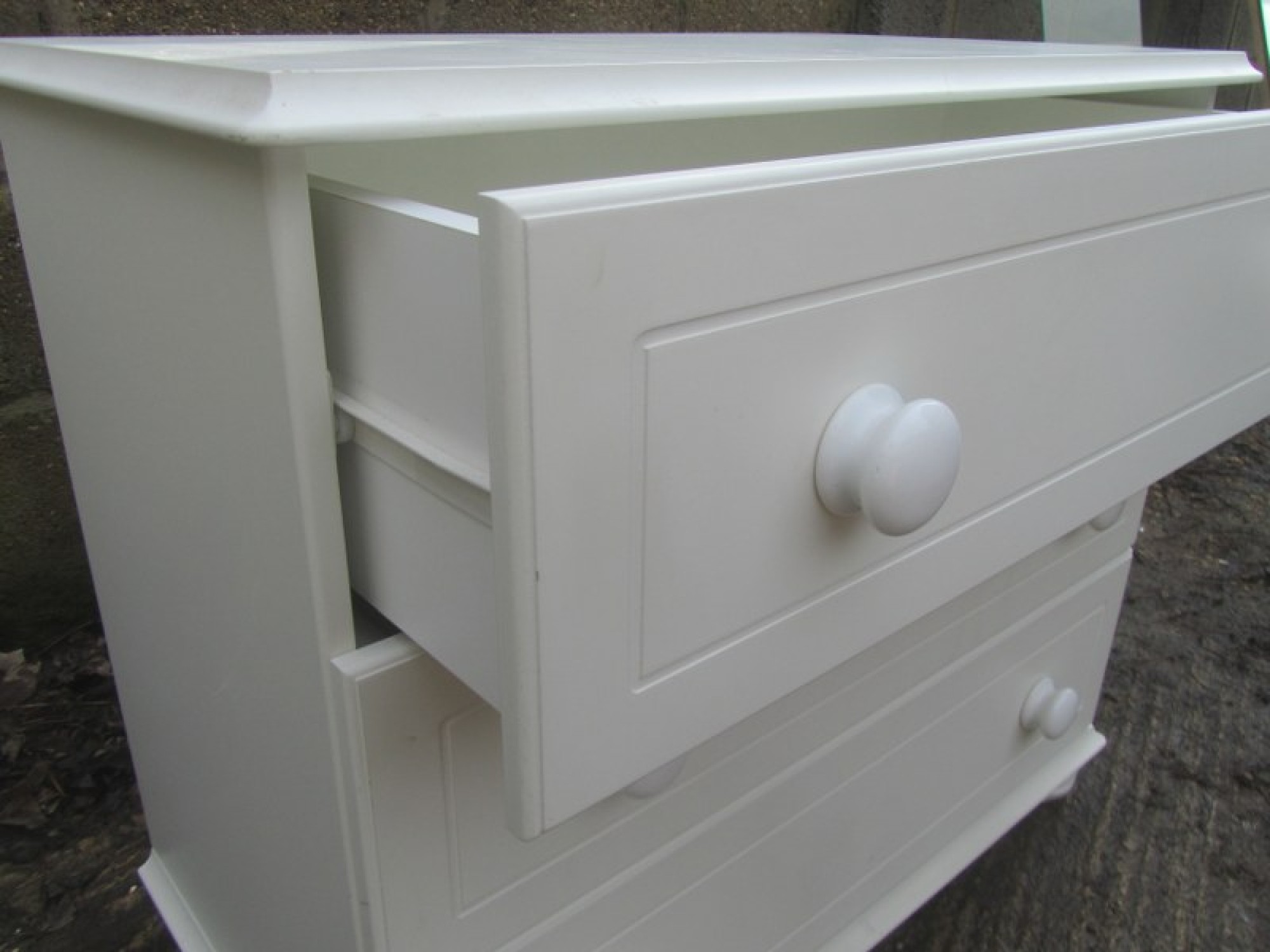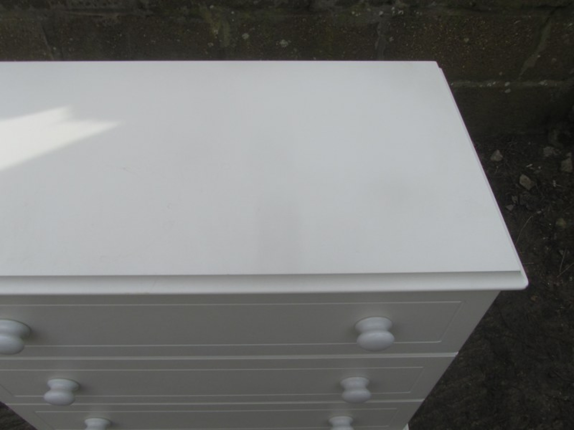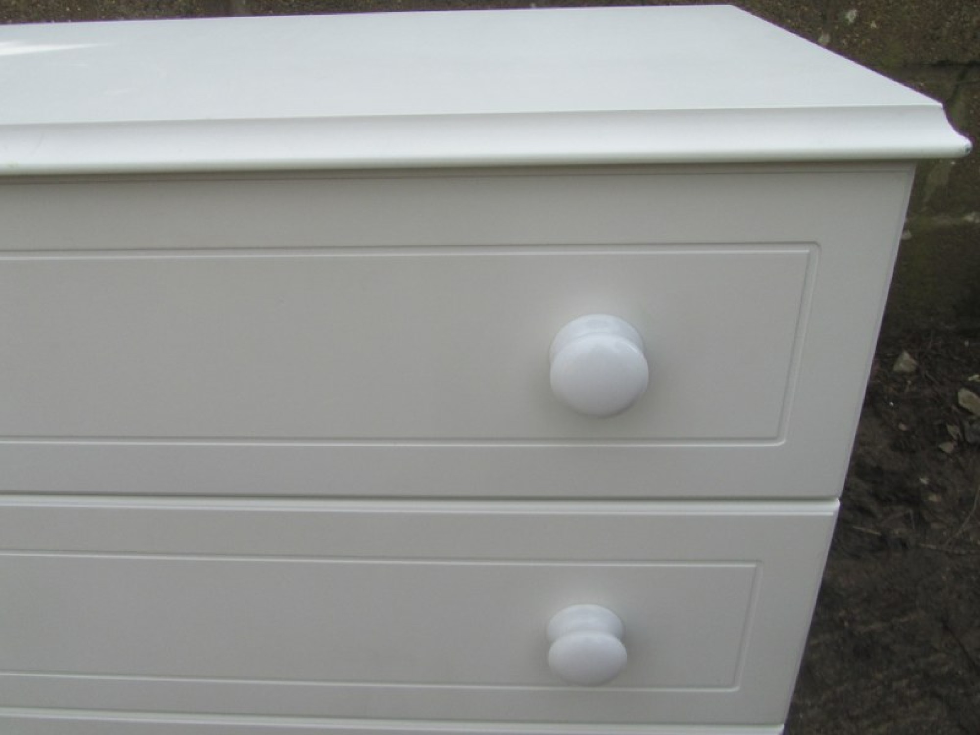THIS IS A LARGE CHEST OF DRAWERS. IN A WHITE FINISH. IN GOOD CONDITION. MADE IN MDF, VERY HEAVY.