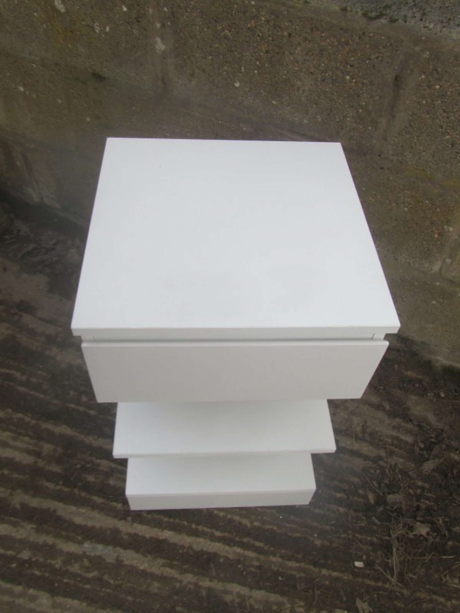 Items for Sale MODERN WHITE BEDSIDE CABINET / CHEST OF DRAWERS Share: View Larger Image View Larger Image View Larger Image Select to enlarge £ 15 THIS IS A BEDSIDE CABINET. IN A WHITE FINISH. IN GOOD CONDITION. ADDITIONAL DETAILS RESERVE ITEM Condition:GOOD Manufacture Date:2010s Height:65 cms Length:39 cms Depth:39 cms Quantity:1 Item Number:41278 * Please complete all the fields below to send an enquiry about this product. Please reserve this item for me… Reset Send