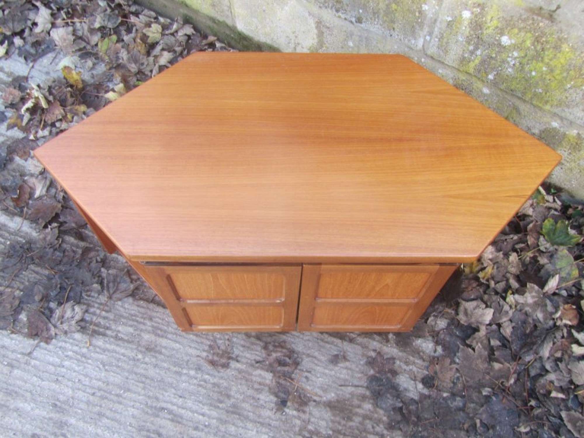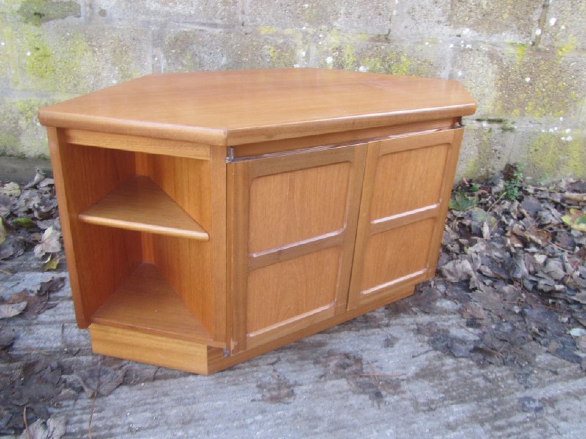 THIS IS A TEAK VENEER CABINET. THIS HAS SHELVES & CUPBOARDS, IDEAL FOR TV etc. IN GOOD CONDITION, A GOOD QUALITY ITEM. MADE BY 'NATHAN'.