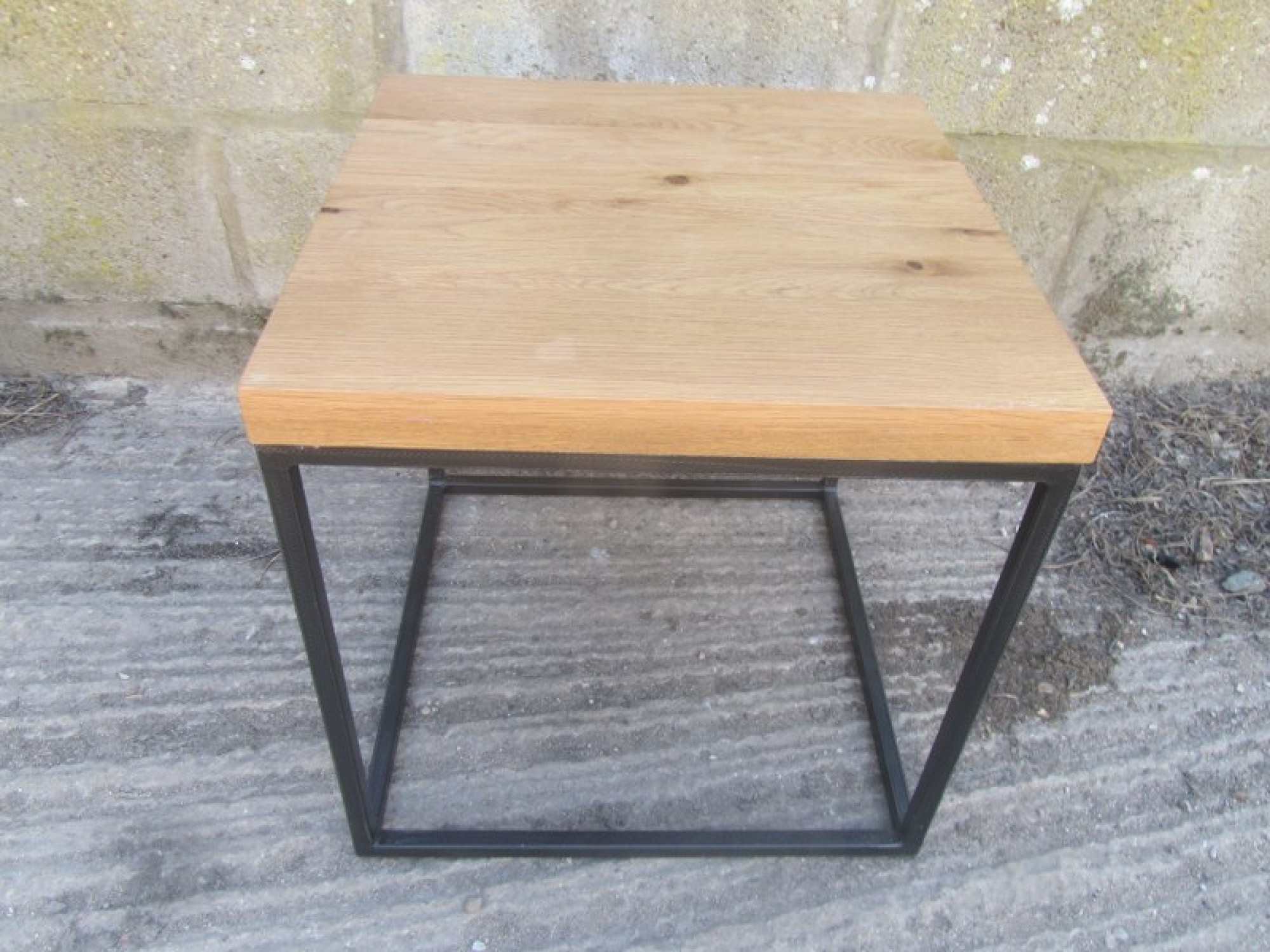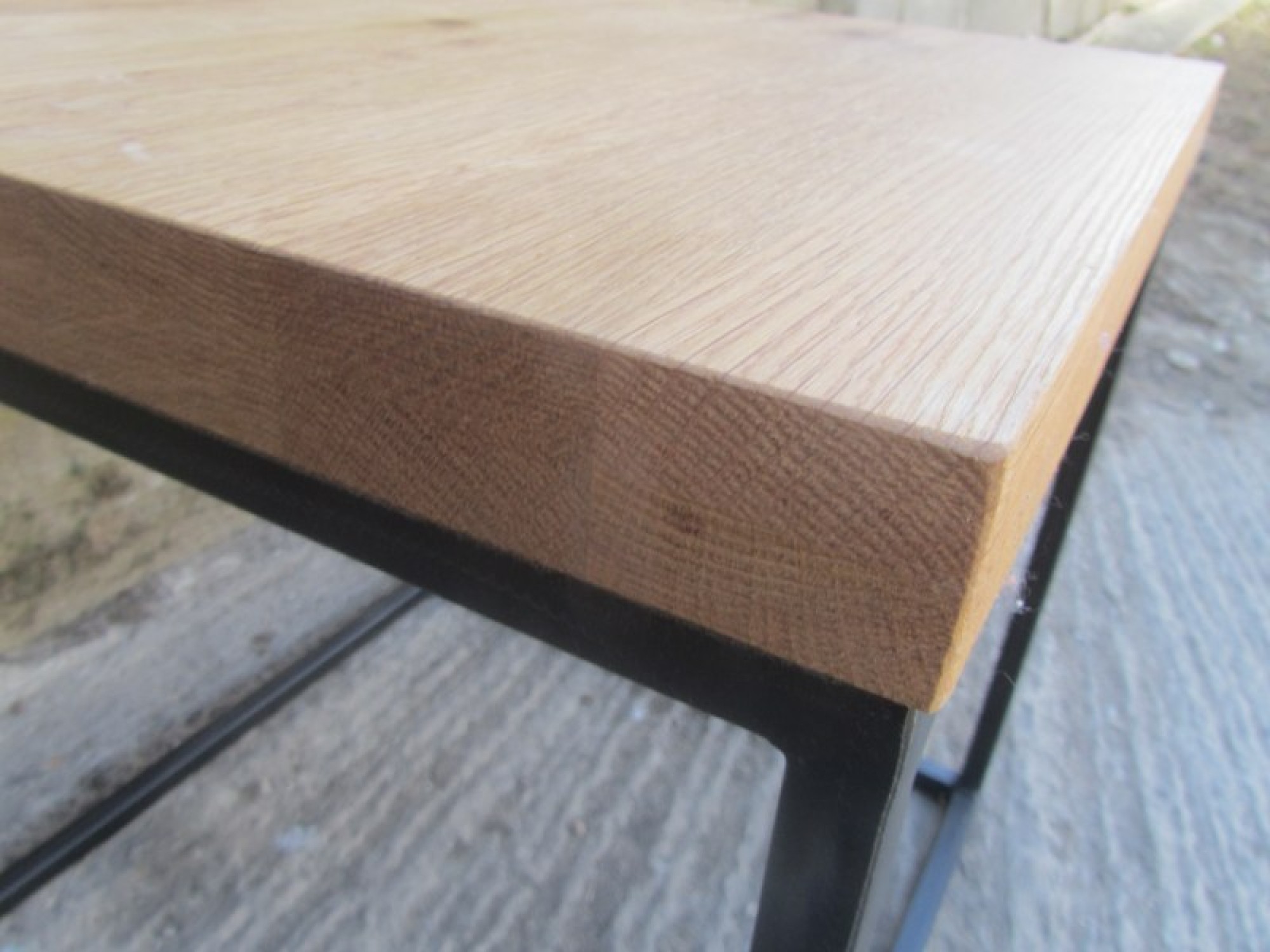 THIS IS A MODERN OAK TABLE. METAL FRAME. SOLID OAK TOP. MADE BY JOHN LEWIS.