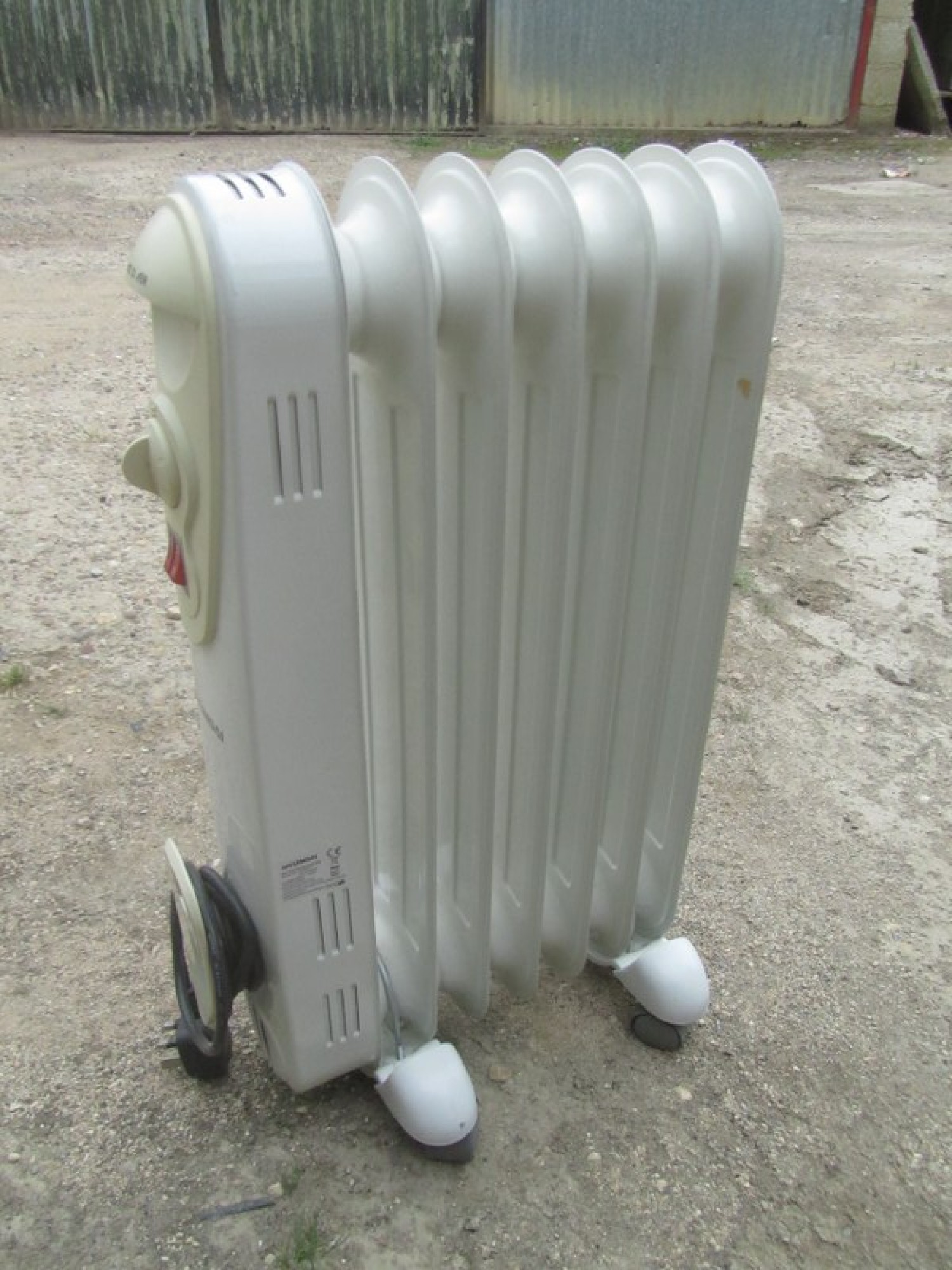 A MODERN OIL FILLED RADIATOR, A COMPACT SIZE, ON CASTORS SO CAN EASILY BE MOVED AROUND. THE TEMPERATURE IS TERMOSTAT CONTROLLED. A CLEAN EFFIECIENT SOURCE OF HEAT, IDEAL FOR COLD WINTERS!