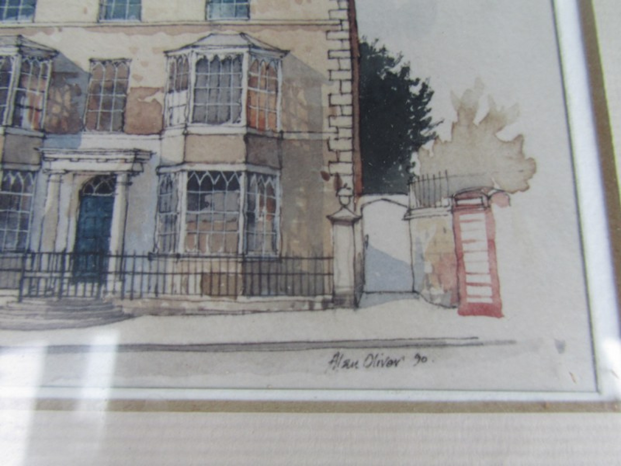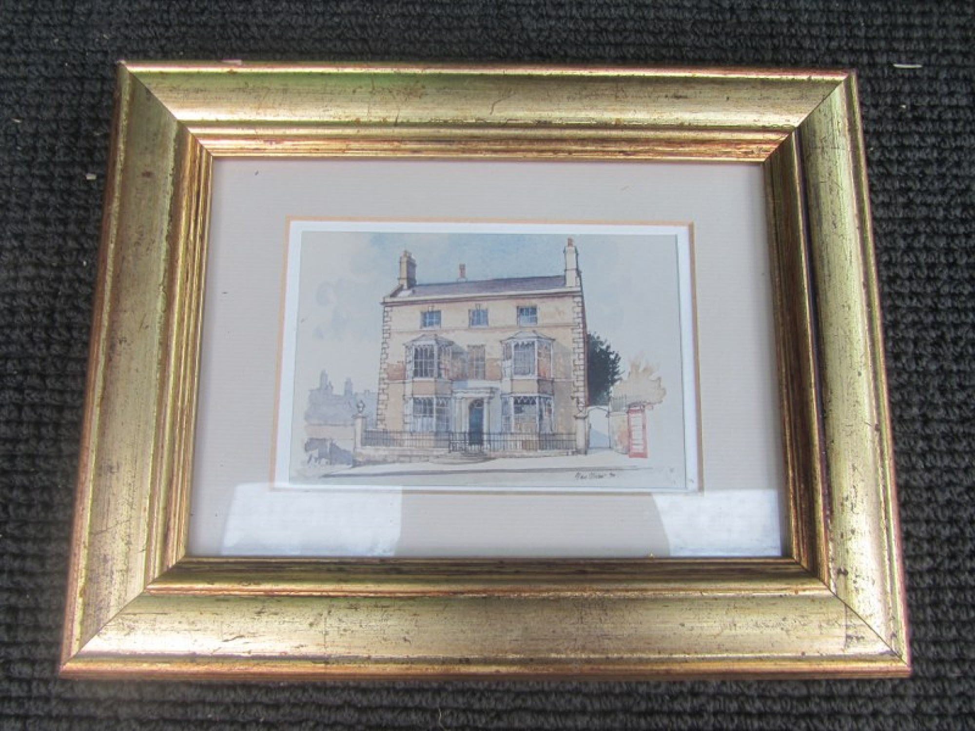 A SMALL FRAMED PHOTO PRINT OF THE OLD SOLICITORS BUILDING ON BROAD STREET (NEAR THE MODEL FISH BAR) STAMFORD - BY LOCAL ARTIST ALAN OLIVER. HE IS A KNOWN ARTIST, HIS WORK HAS BEEN SHOWN IN THE ROI, RWS, PS AND THE RA.
