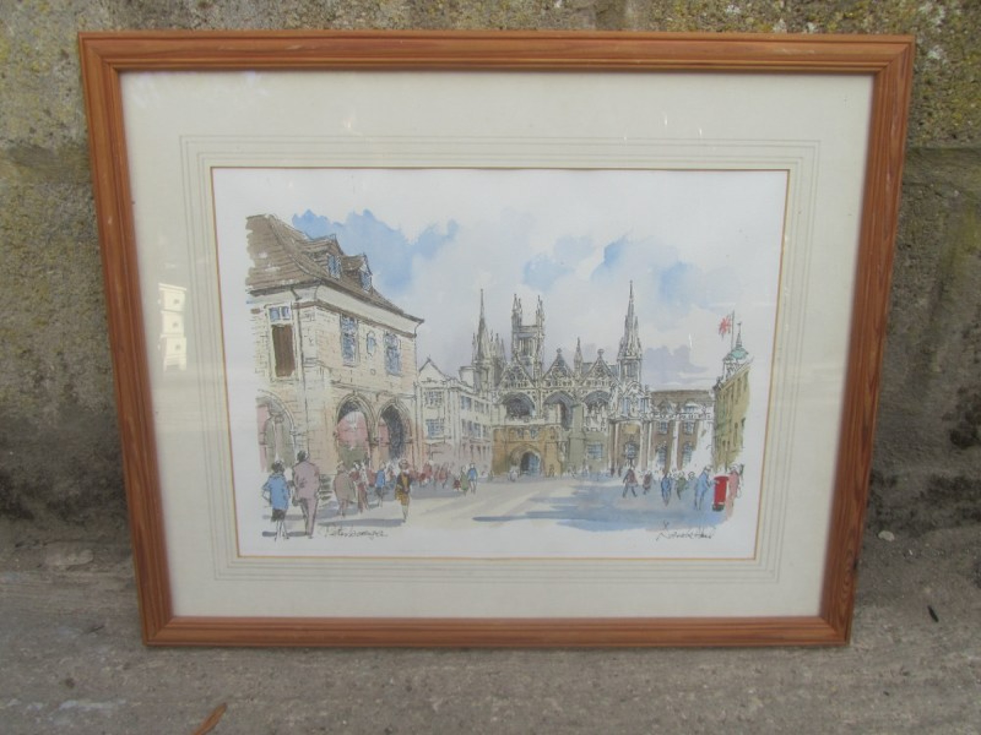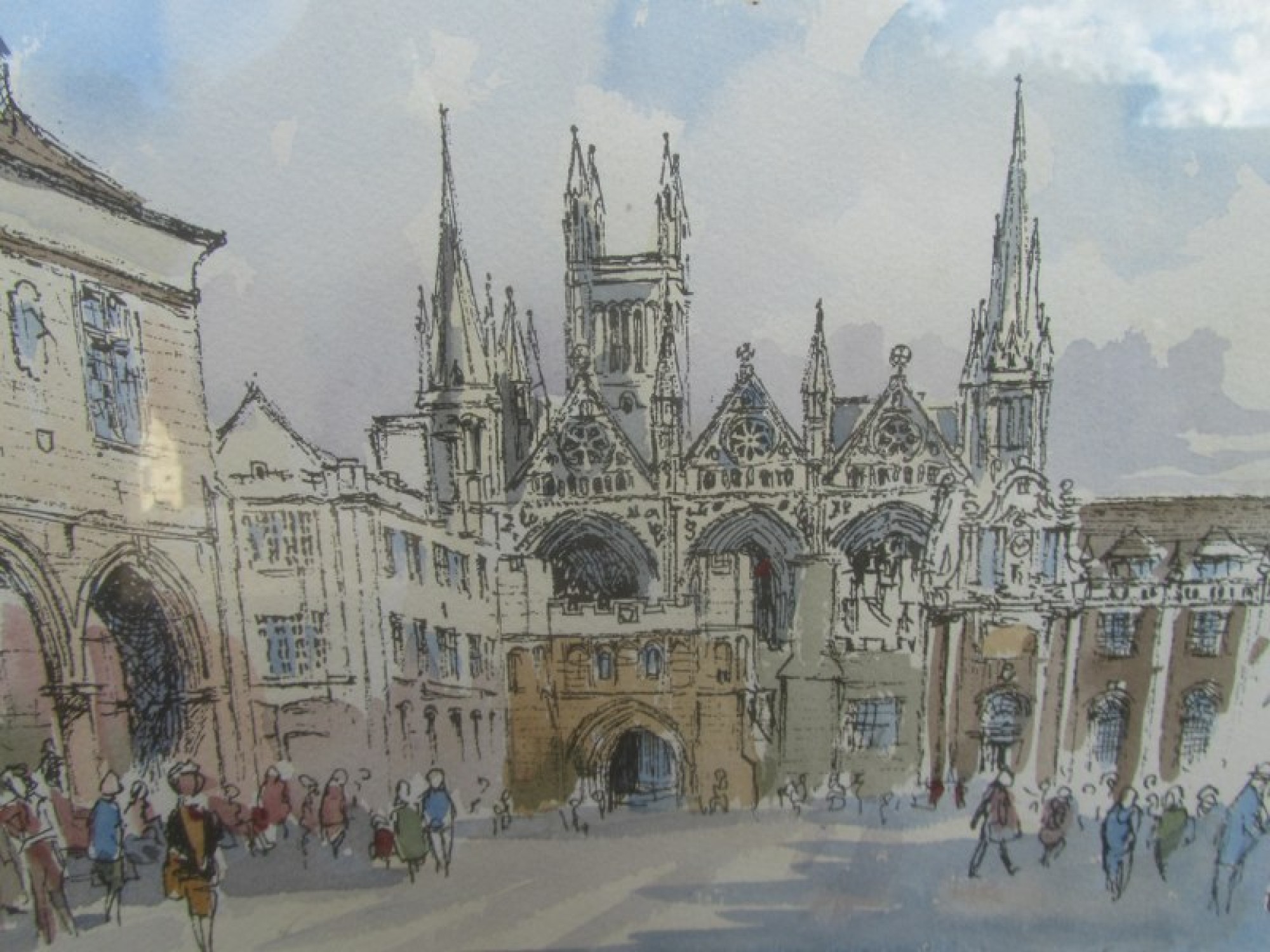 A WATERCOLOUR PAINTING OF CATHEDRAL SQUARE IN PETERBOROUGH, CAMBRIDGESHIRE. IT IS SIGNED DEREK ABEL. IT IS SIGNED DEREK ABEL, b1925 - d2008.