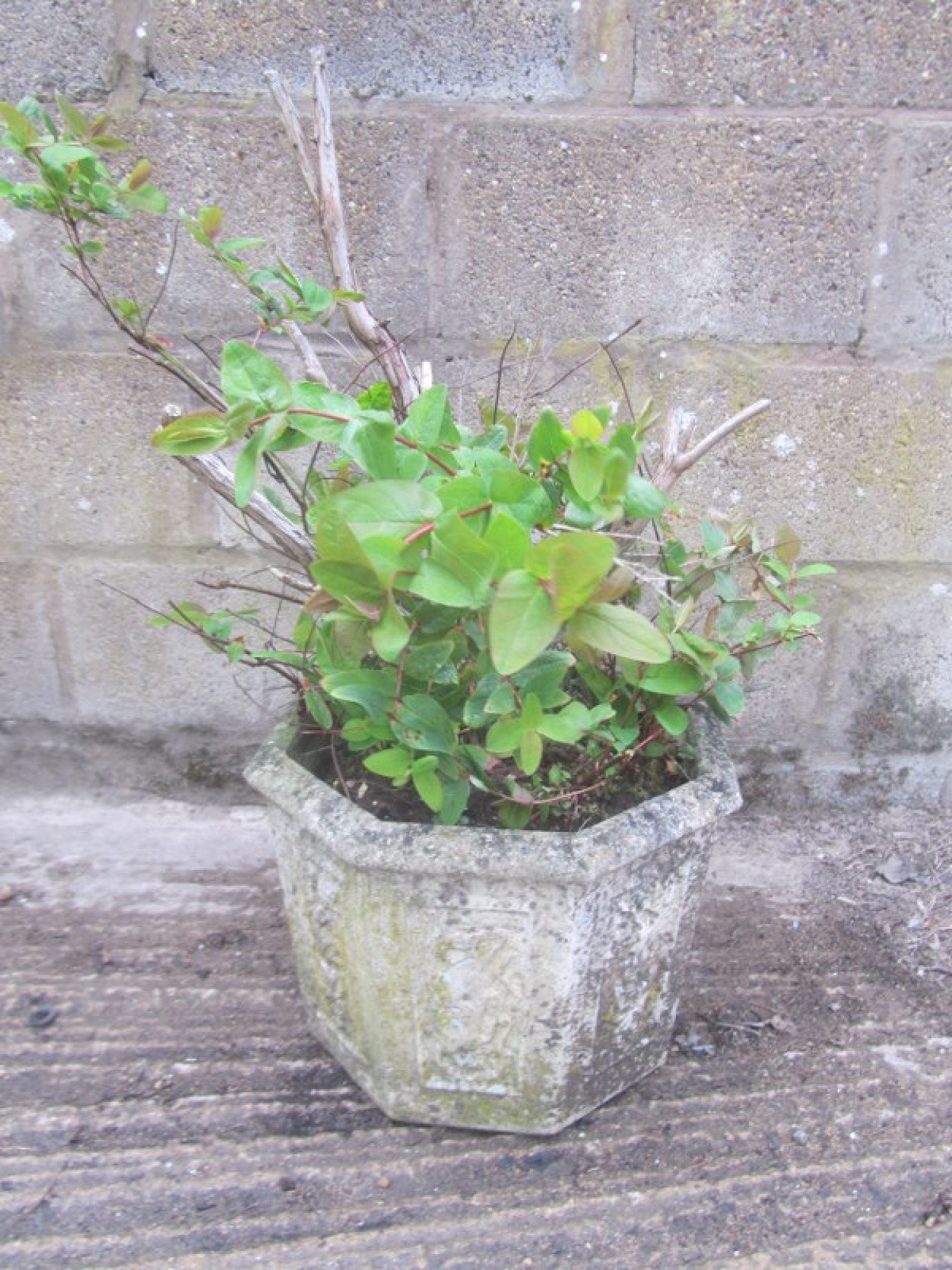 A CAST STONE PLANTER FOR THE GARDEN. IT'S BEEN OUTSIDE FOR YEARS, WITH A WEATHERED LOOK, COMPLETE WITH GREEN STAINING & LICHEN. MADE TO LOOK LIKE WORN LIMESTONE. IT LOOKS VERY OLD, BUT IS PROBABLY ABOUT 20-30 YEARS OLD.
