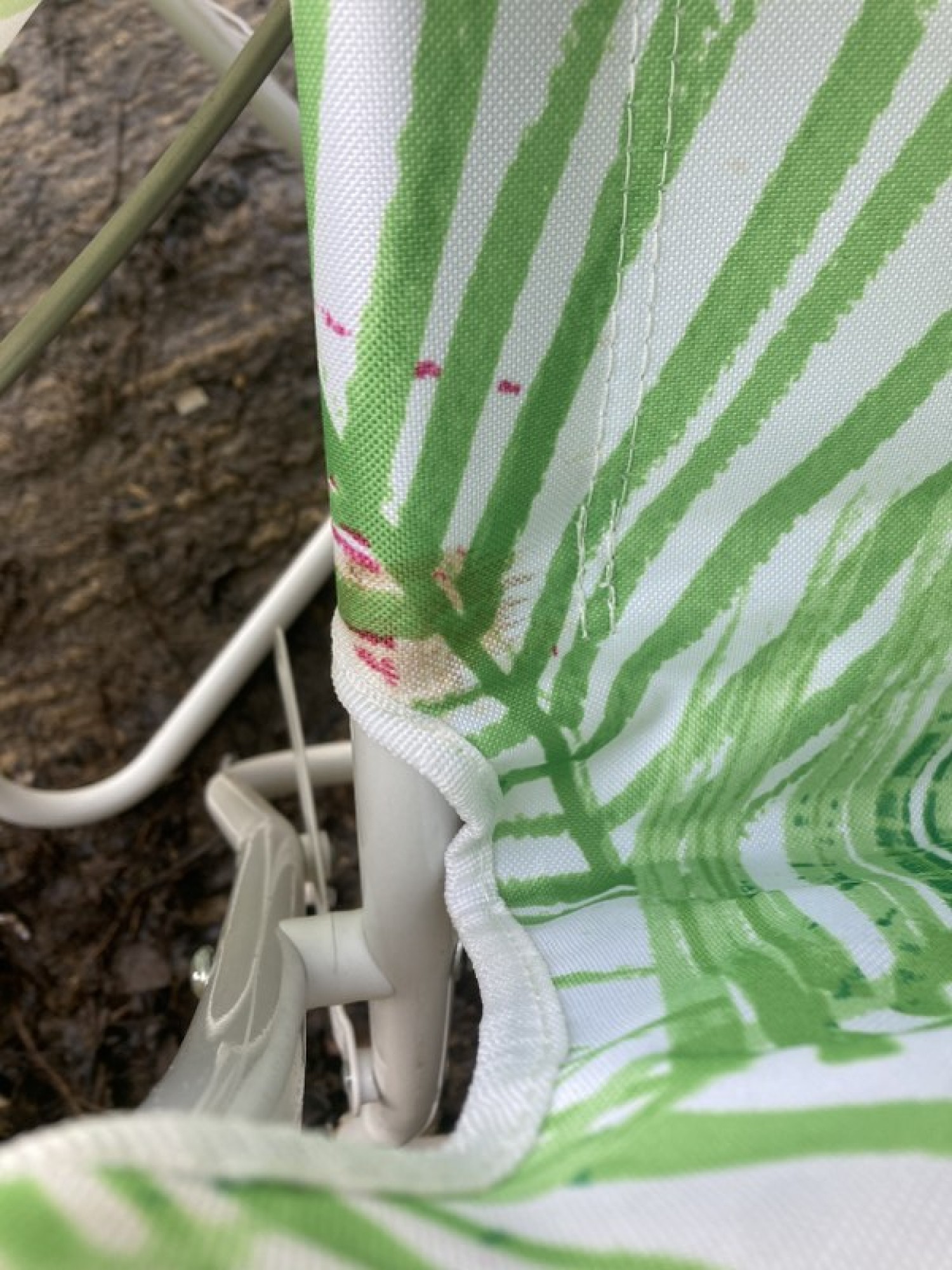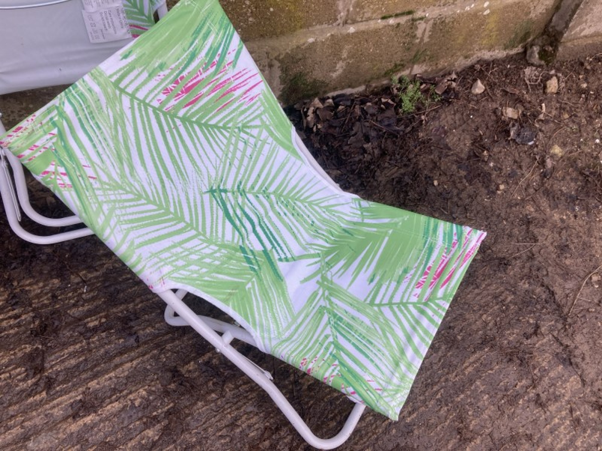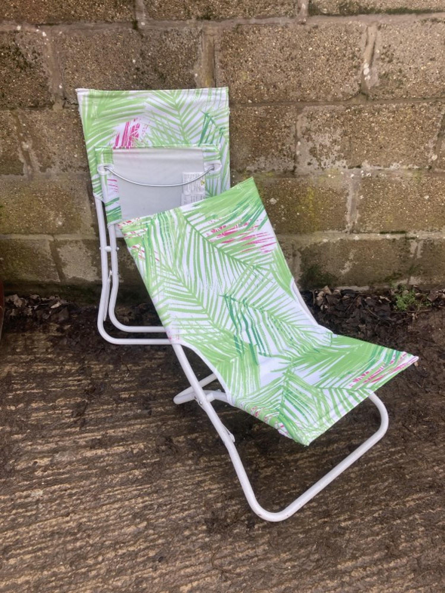 THIS IS A MATCHING PAIR OF FOLD UP OUTDOOR CHAIRS. THE FRAMES ARE METAL. THE SEATS ARE MATERIAL. FOR SALE AS A PAIR OF CHAIRS. SEAT HEIGHT IS 36cm. ONE CHAIR HAS A SLIGHT STAIN.