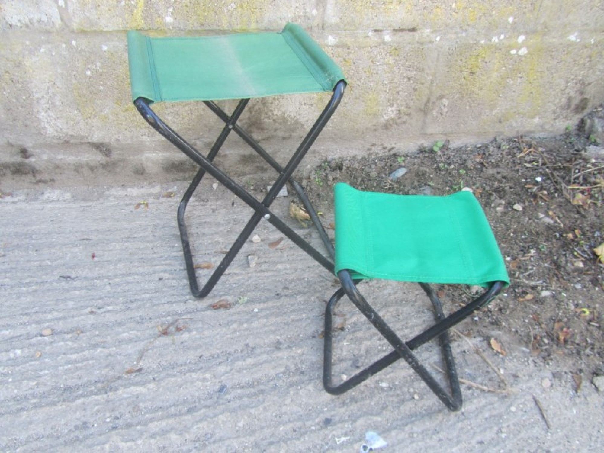 THIS IS A PAIR OF STOOLS. METAL FRAMES. THE TOPS ARE MATERIAL. THE FRAMES ARE STURDY. SIZE LISTED IS THE LARGER STOOL. SMALL STOOL IS 27X20X20.