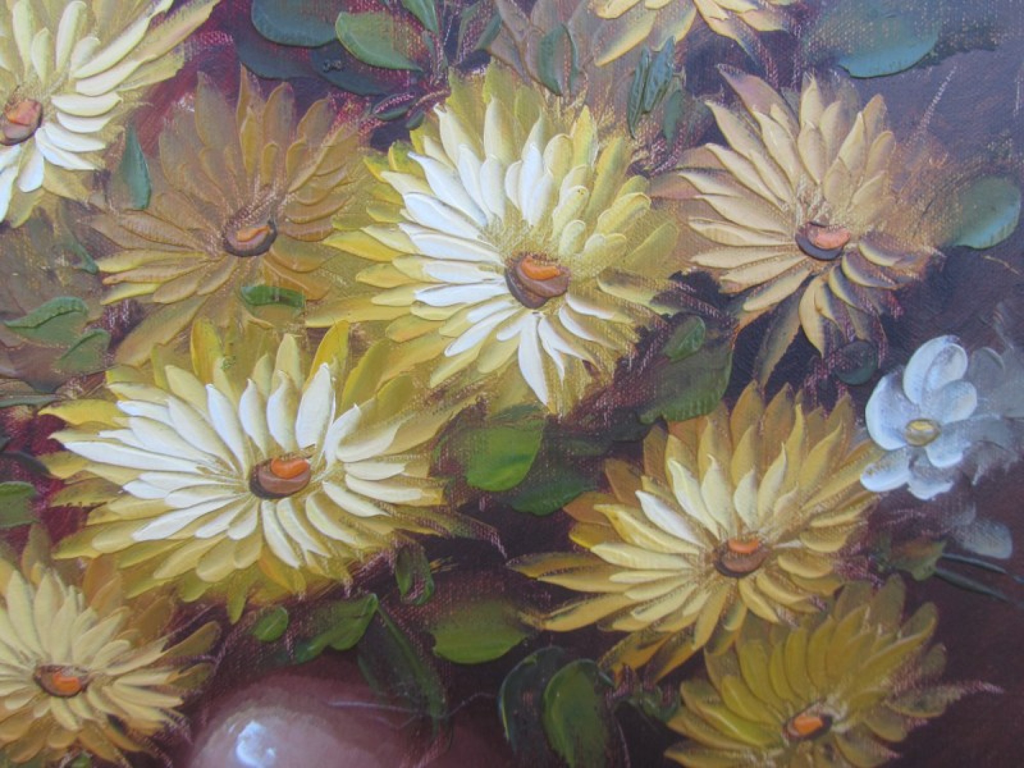 Items for Sale LARGE FRAMED OIL PAINTING - FLOWERS Share: View Larger Image View Larger Image View Larger Image View Larger Image Select to enlarge Swipe £ 45 LARGE OIL PAINTING OF YELLOW FLOWERS. IN AN ANTIQUE STYLE FRAME. SIGNED. ADDITIONAL DETAILS RESERVE ITEM Condition:GOOD Height:73 cms Length:60 cms Depth:3 cms Quantity:1 Item Number:40562 * Please complete all the fields below to send an enquiry about this product. Please reserve this item for me… Reset Send