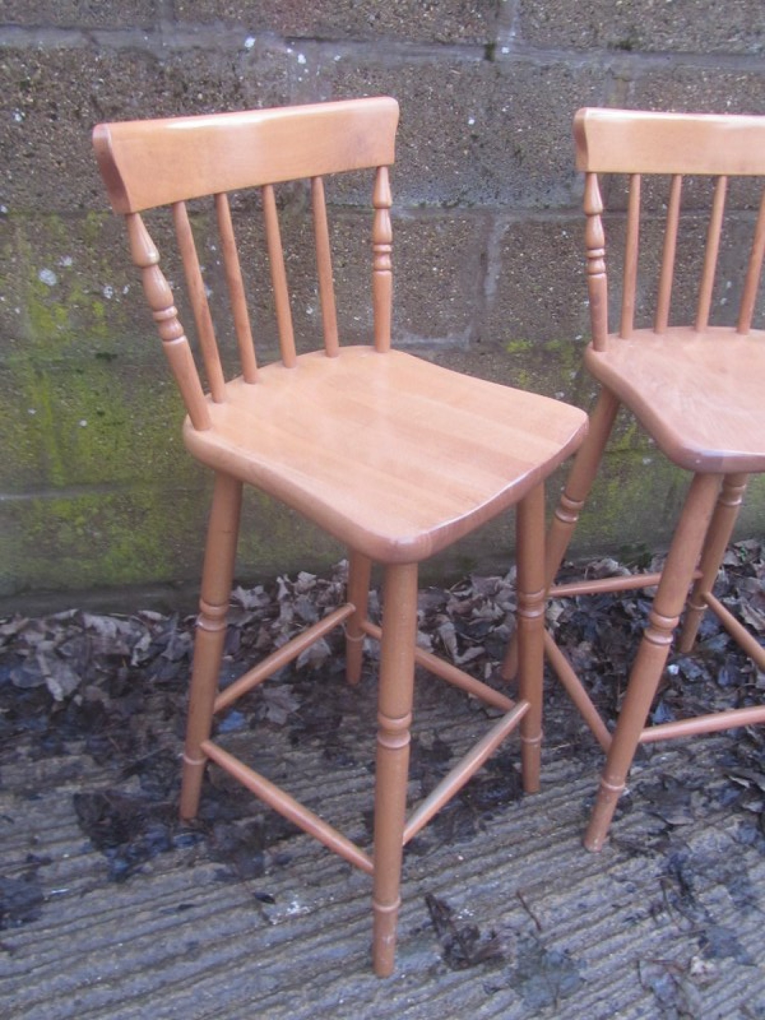 THIS IS A PAIR OF TALL STOOLS. SOLID BEECH WOOD FRAMES, STURDY.