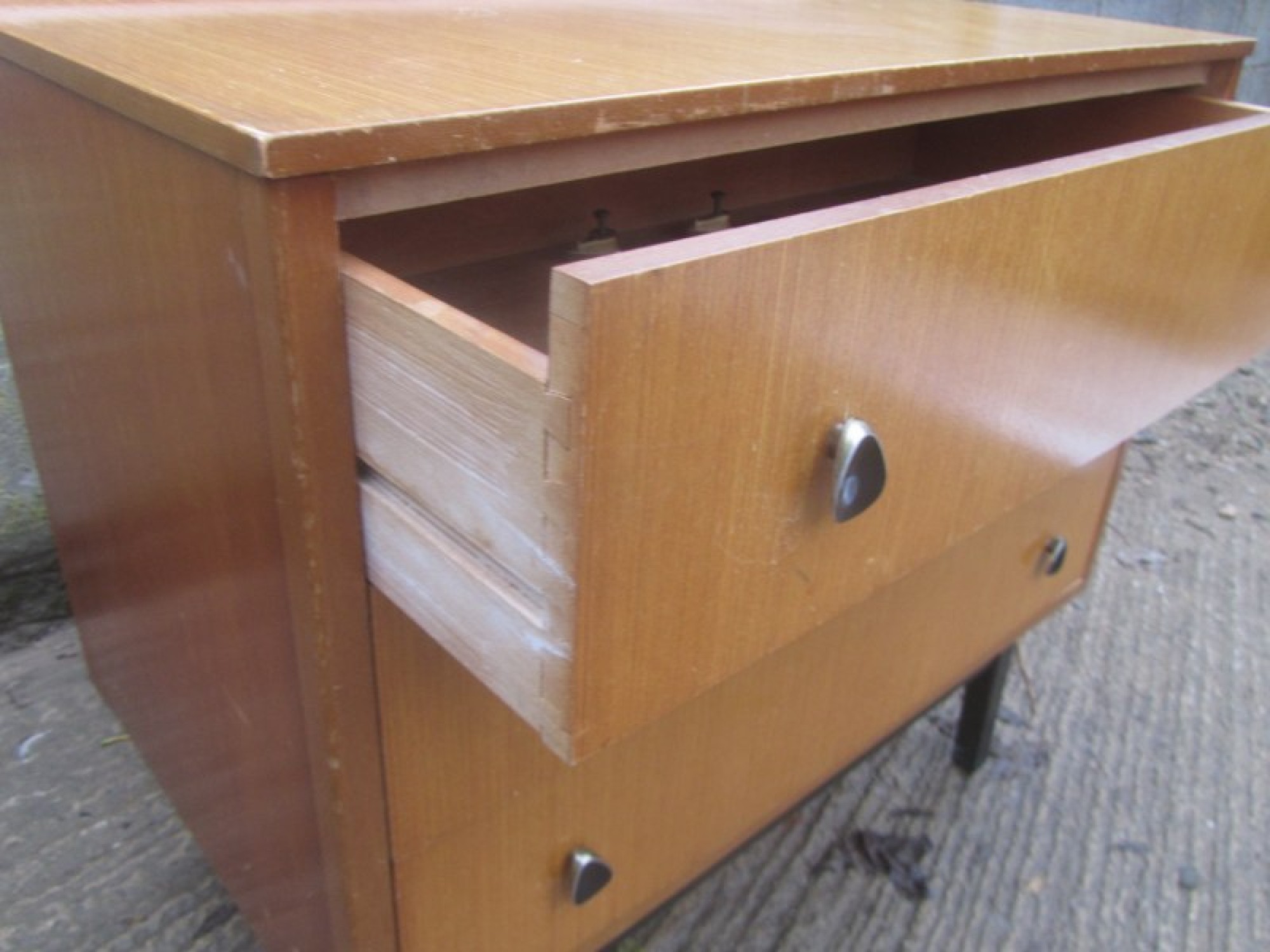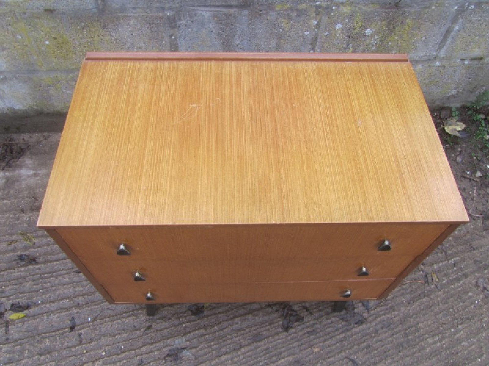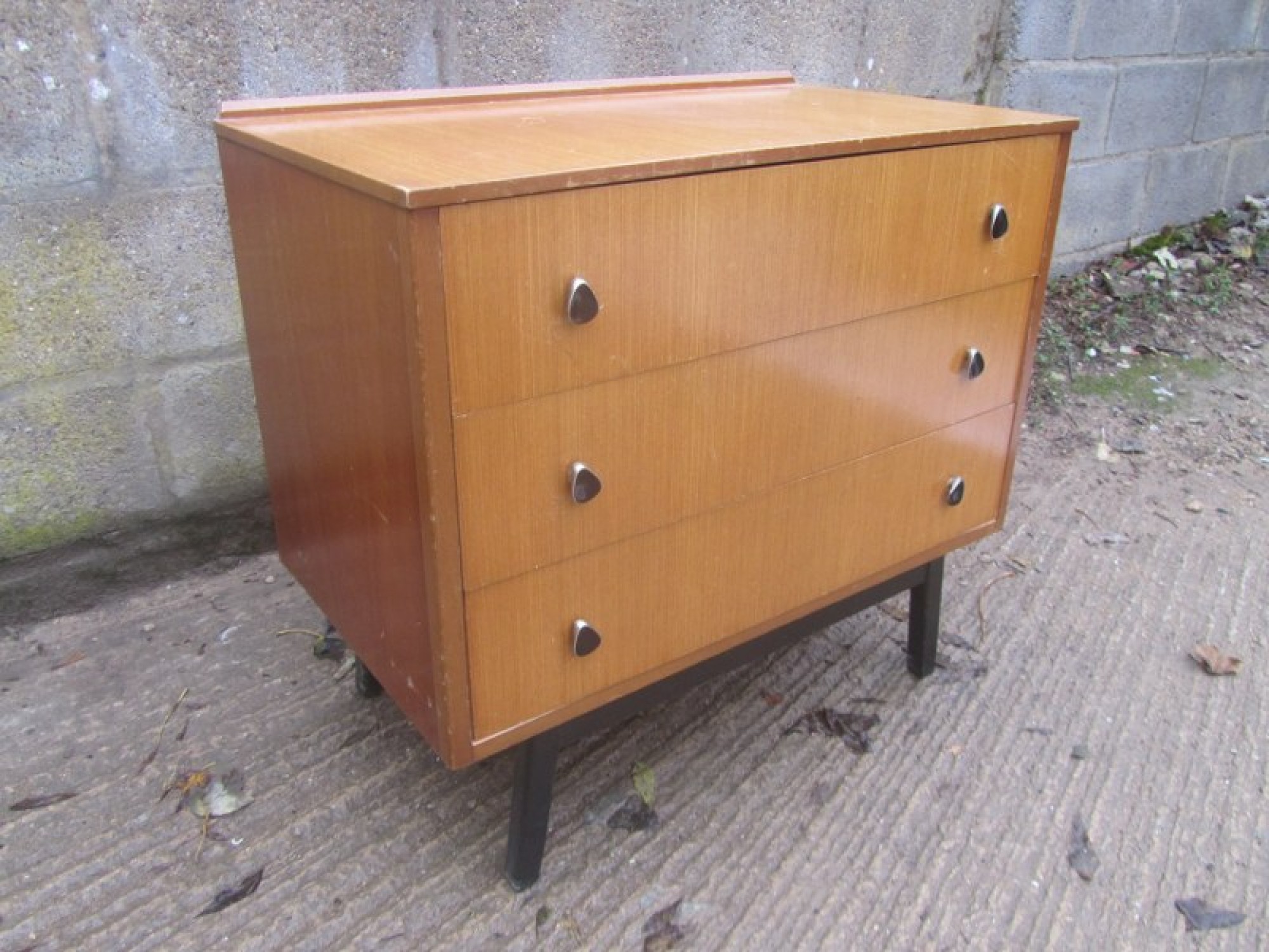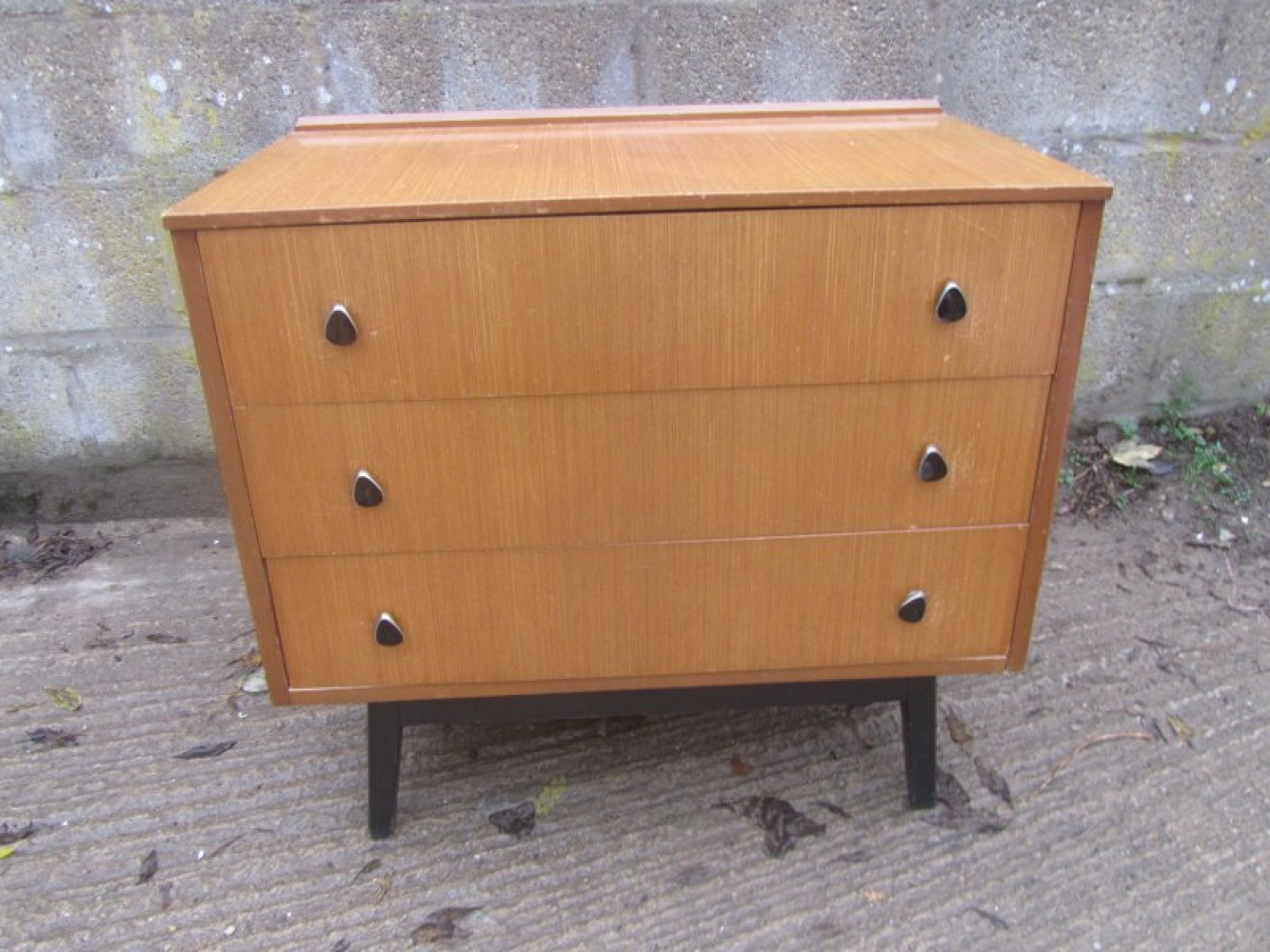 THIS IS A VINTAGE CHEST FROM THE 1960s. IT IS A GREAT VINTAGE PIECE, A USEFUL ITEM FOR THE HOME. THE TOP AND SIDES ARE VENEERED. SOME SCUFFS AND WEAR, THE VENEER IS CHIPPED ON THE SIDE, AVERAGE CONDITION.