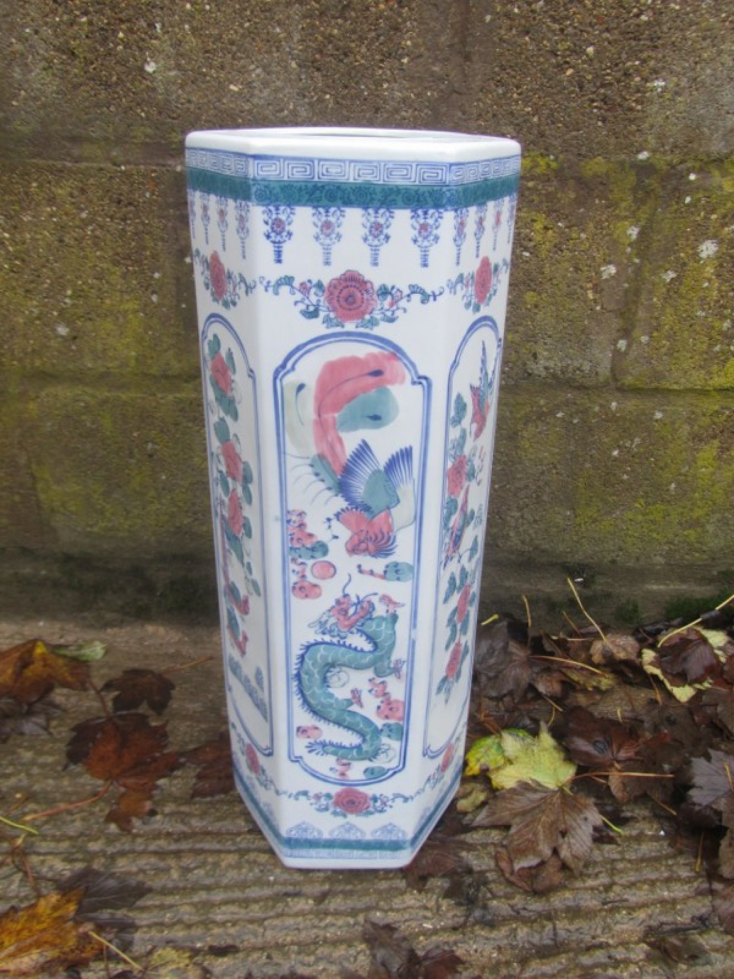 A TALL CERAMIC BROLLY HOLDER. WITH A PATTERN, A MODERN REPRODUCTION.