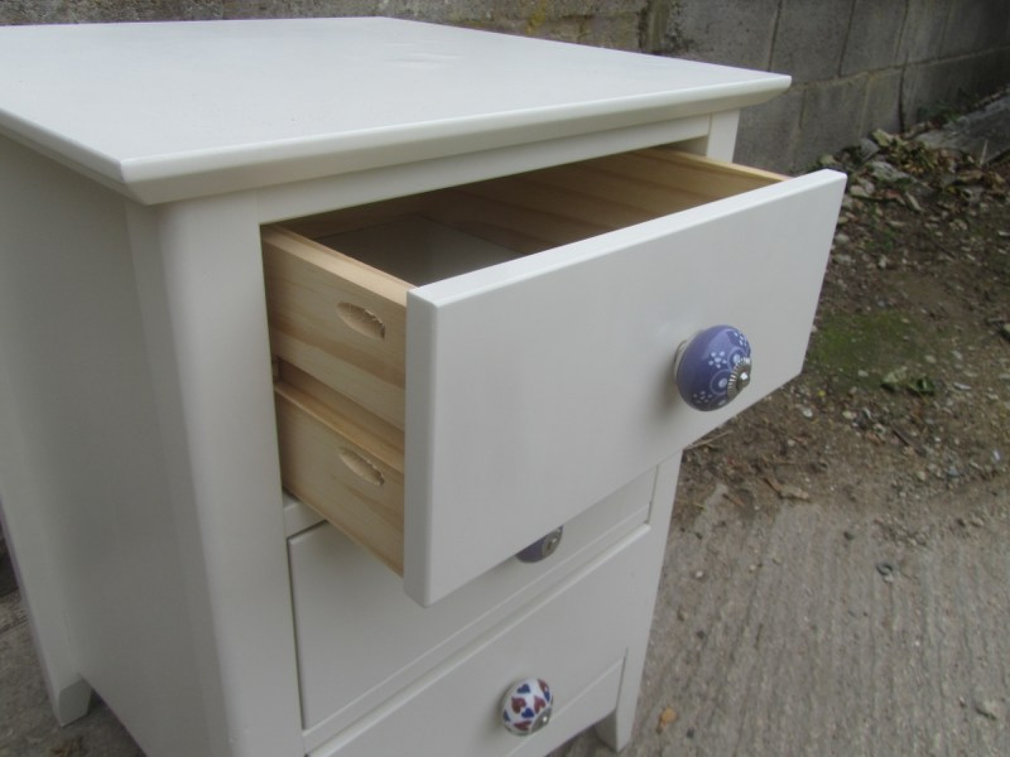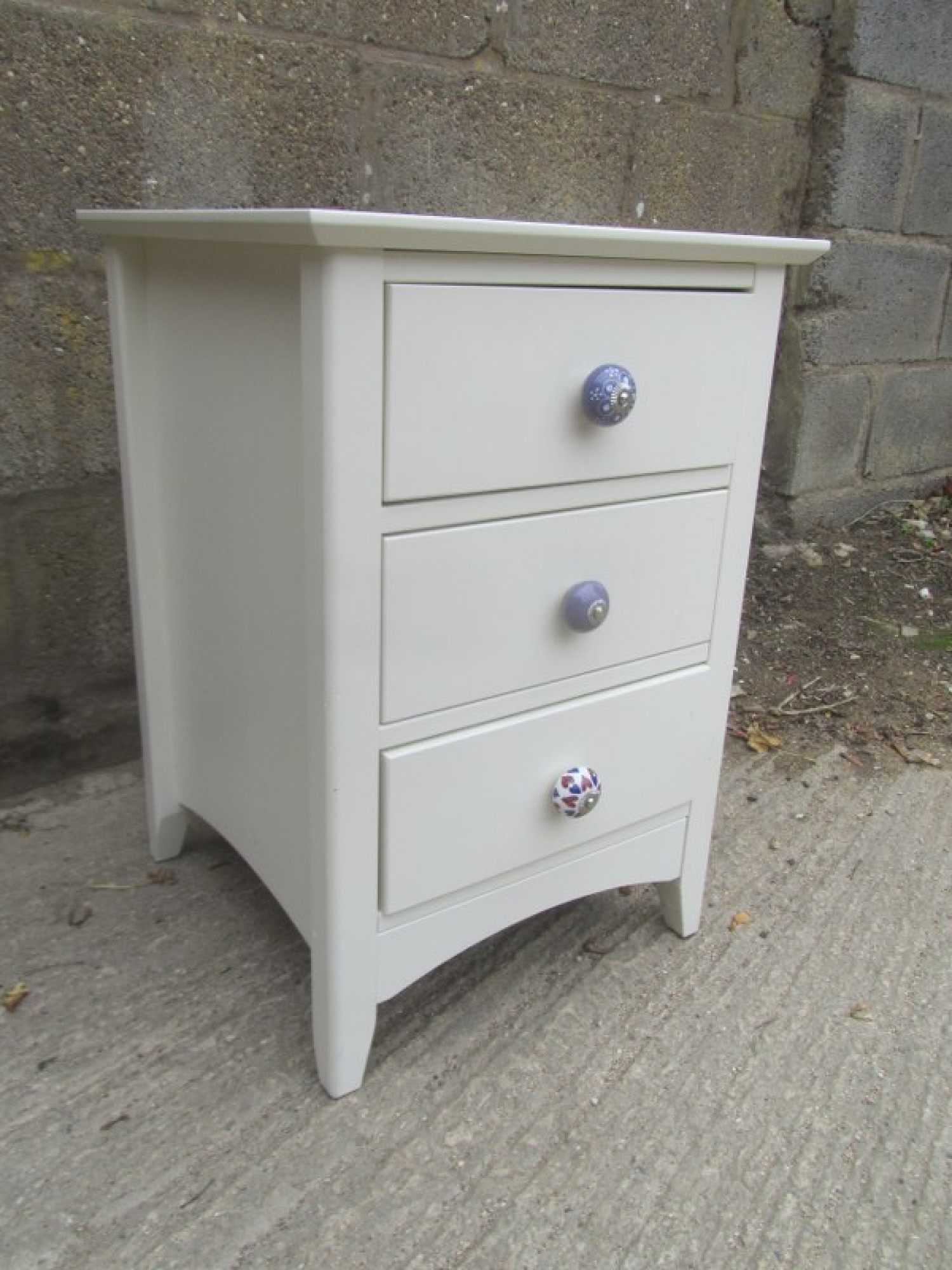 THIS IS A BEDSIDE CABINET. IN A CREAM FINISH. SOME SLIGHT WEAR. STRONG AND STURDY.