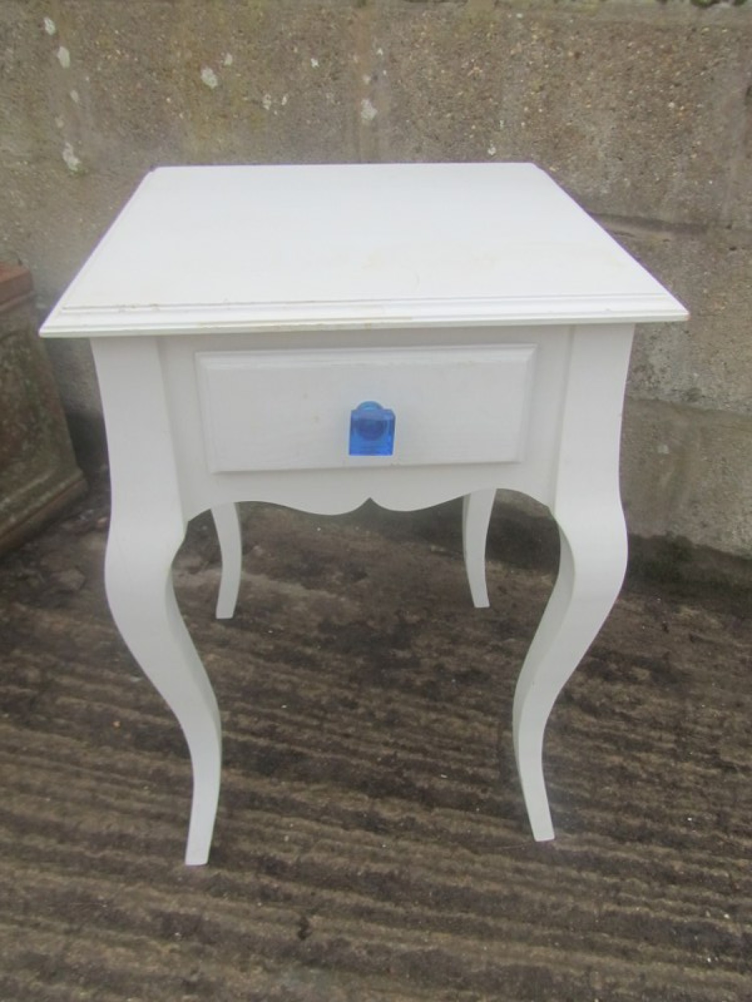 THIS IS A BEDSIDE CABINET. IN A VINTAGE STYLE, IN A WHITE FINISH. SOME SLIGHT WEAR. STRONG AND STURDY.