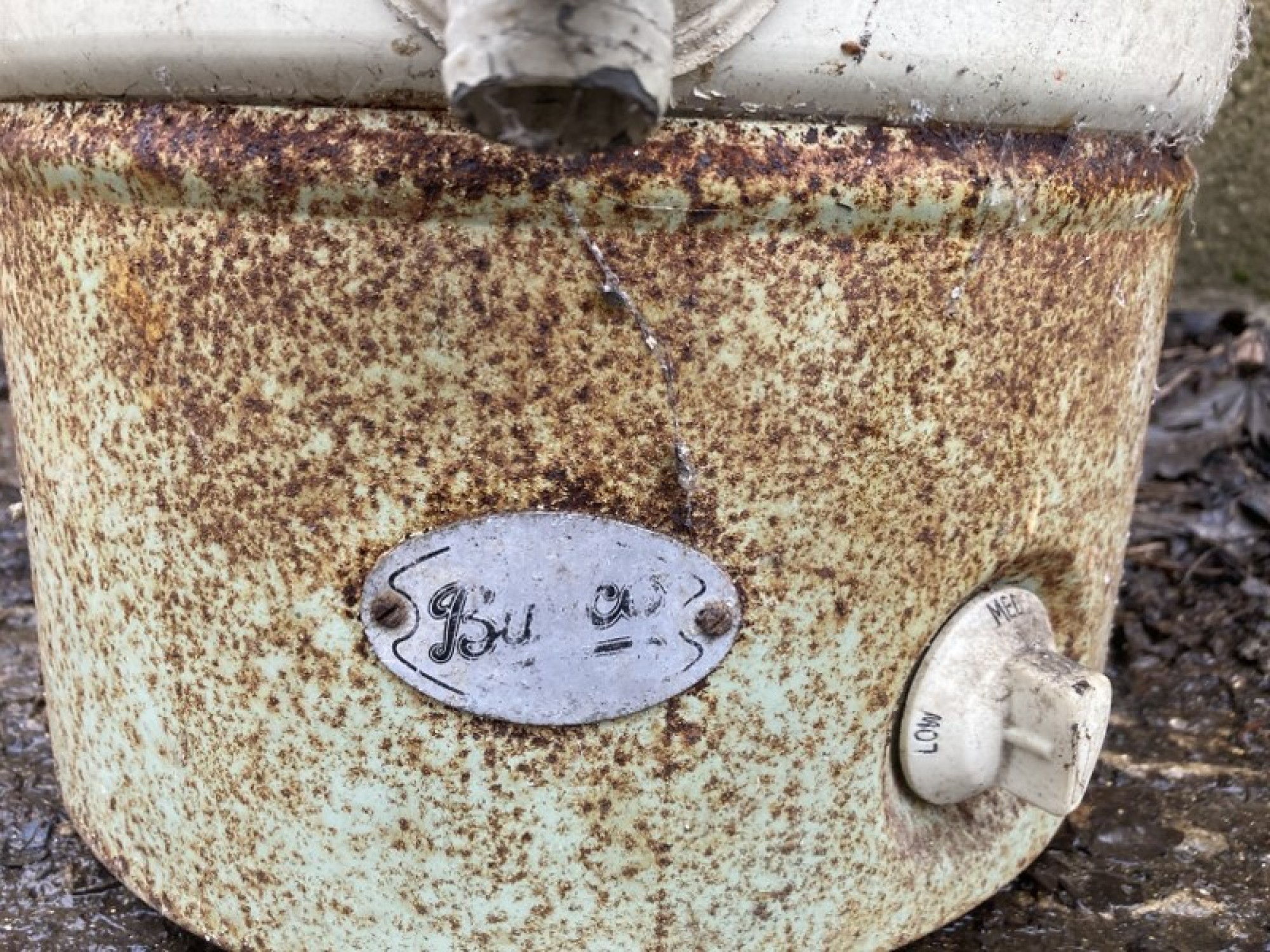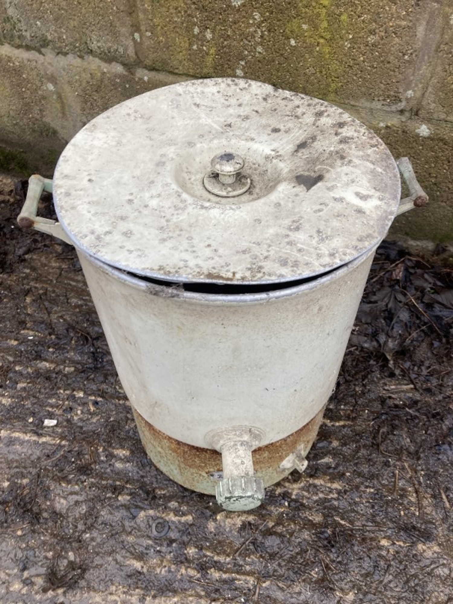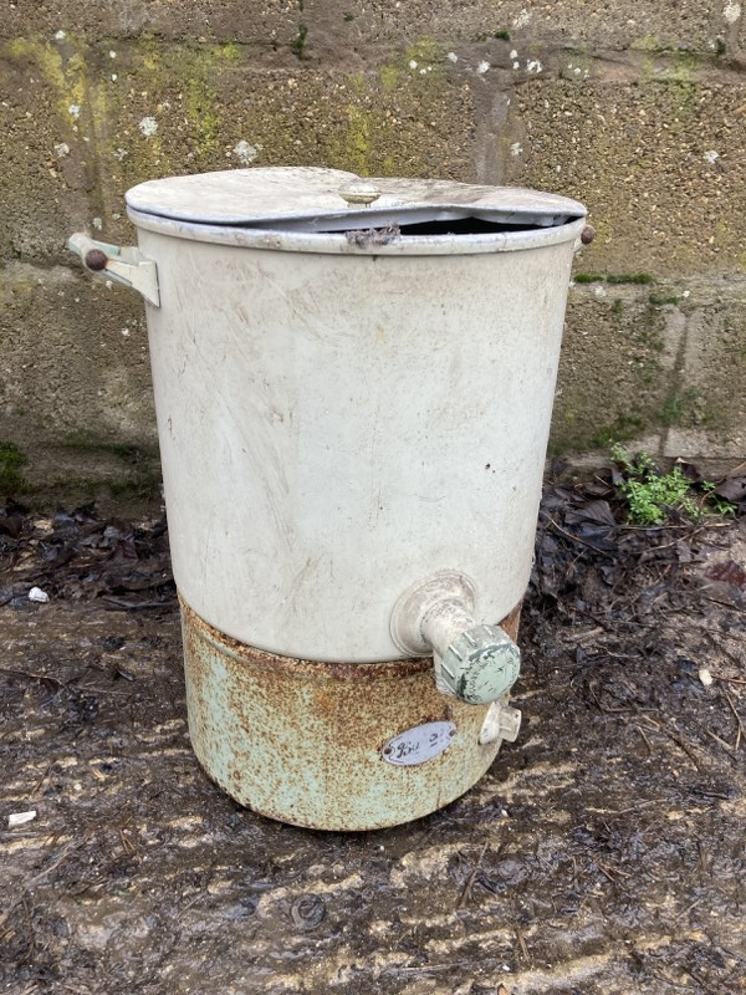 AN OLD BURCO BOILER WITH LID. IT IS NOT WORKING AND HAS HAD THE CABLE REMOVED, SOLD AS A DECORATIVE ITEM. A GREAT GARDEN PLANTER. IN WORN CONDITION.