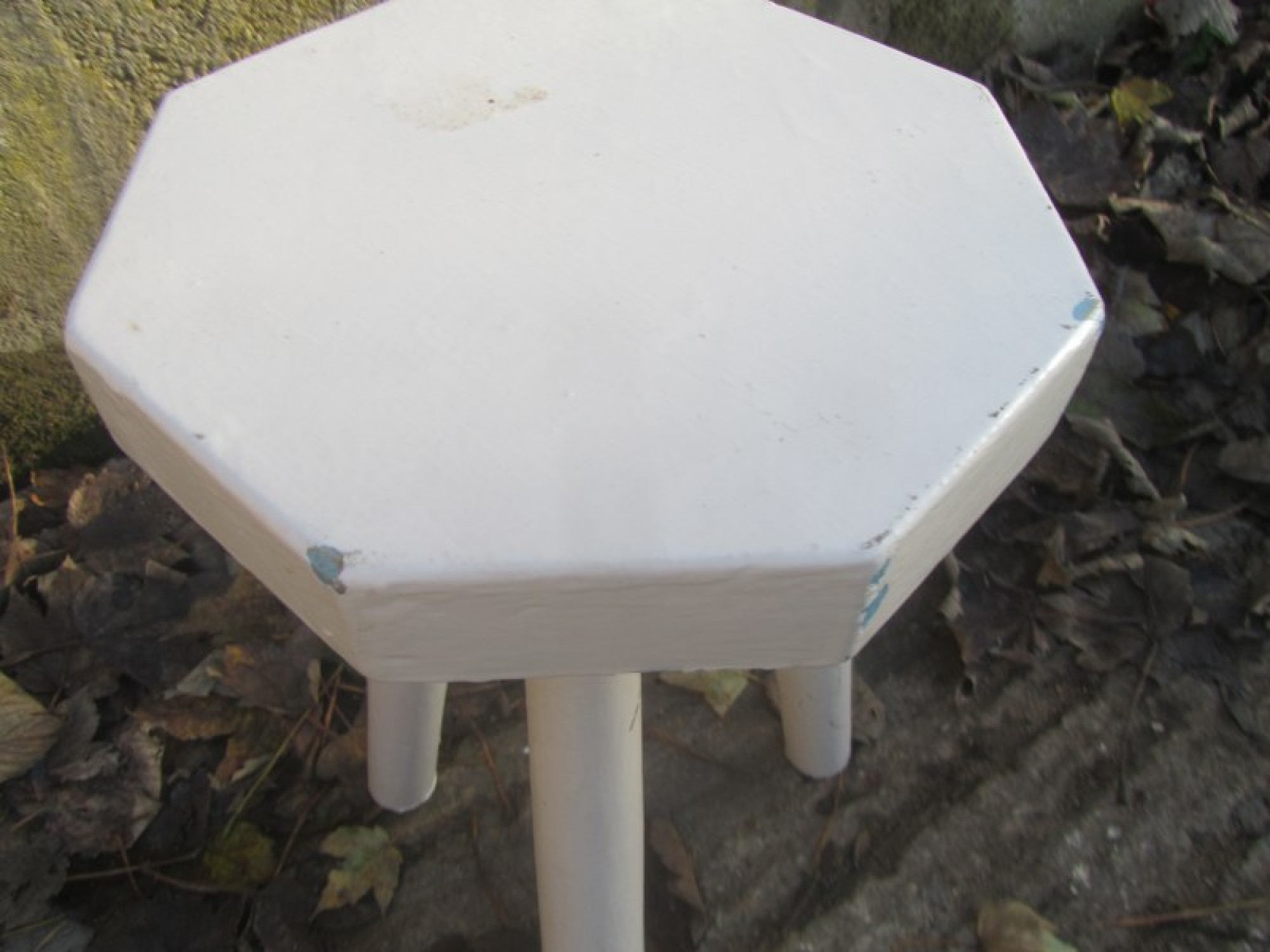 A SMALL STOOL WITH STURDY FRAME. IT HAS BEEN PAINTED SOME TIME AGO.