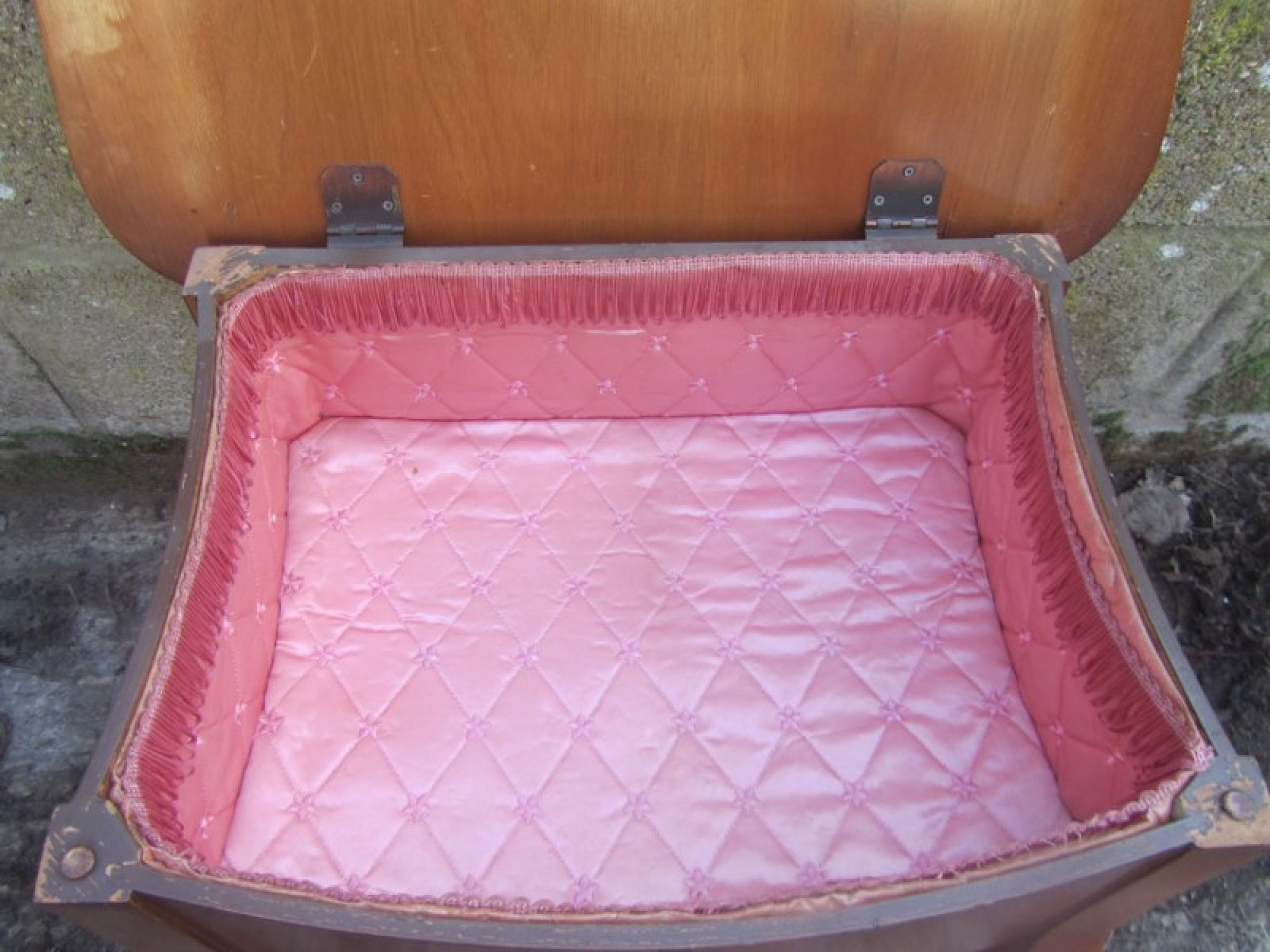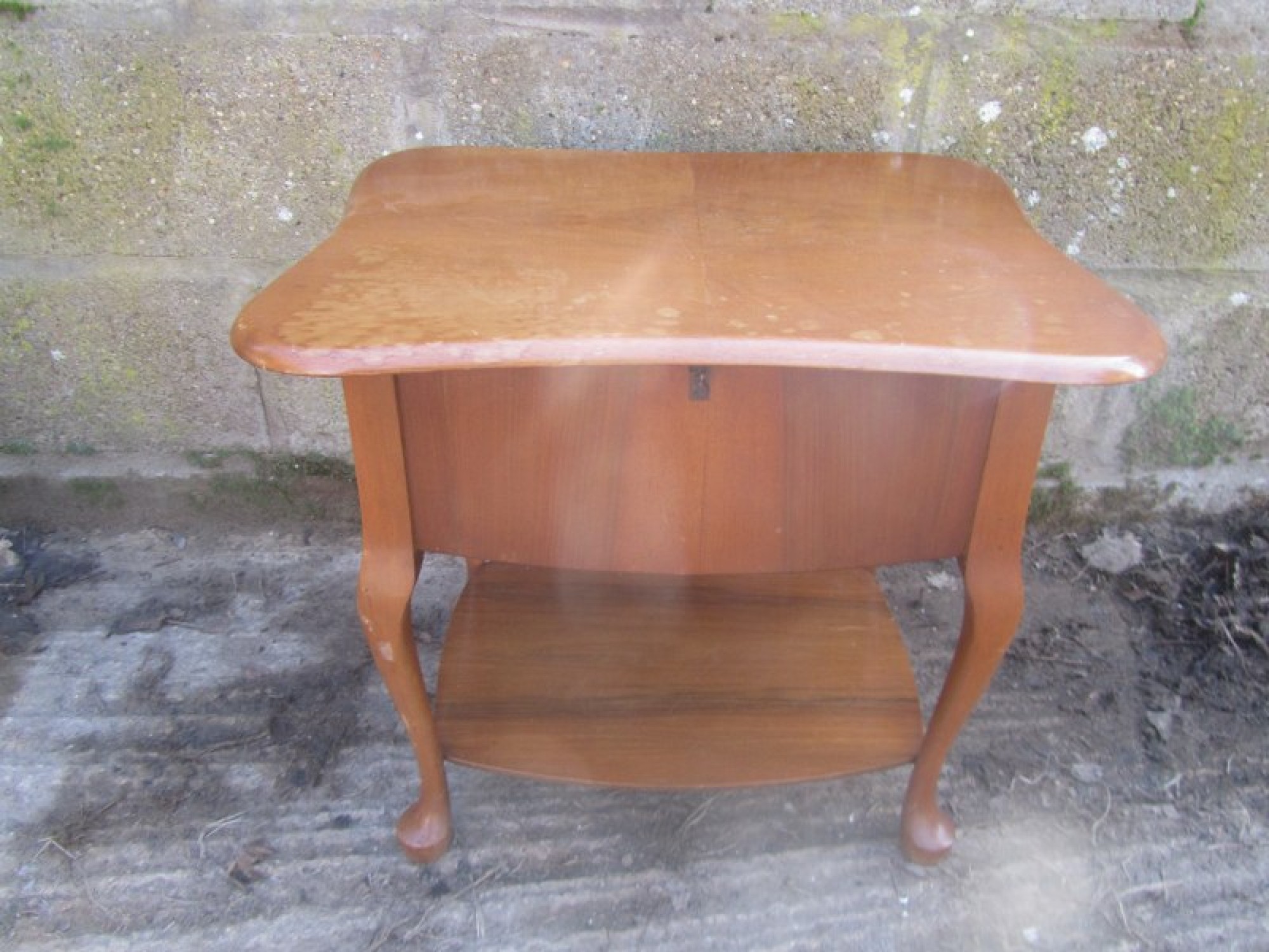 Items for Sale ANTIQUE WALNUT SEWING BOX CABINET / SIDE TABLE - VINTAGE Share: View Larger Image View Larger Image View Larger Image View Larger Image View Larger Image Select to enlarge Swipe £ 25 A SMALL WALNUT SEWING BOX WITH A LIFT UP LID. THE LID IS WALNUT VENEERED WITH SOME VENEER DAMAGE. IT HAS SUFFERED WITH WOOD WORM IN ONE LEG, IT IS PROBABLY LONG DEAD! BUT I WOULD RECOMMEND TREATING IT TO BE SURE. ADDITIONAL DETAILS RESERVE ITEM Condition:AVERAGE Manufacture Date:1940s Height:49 cms Length:55 cms Depth:45 cms Quantity:1 Item Number:41263 * Please complete all the fields below to send an enquiry about this product. Please reserve this item for me… Reset Send