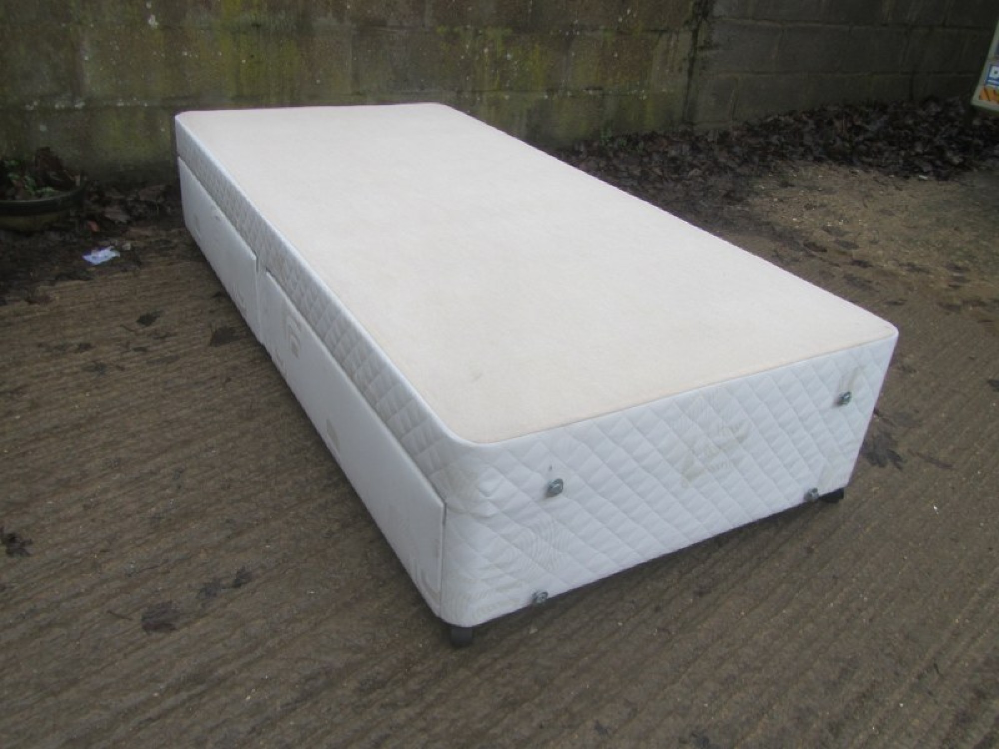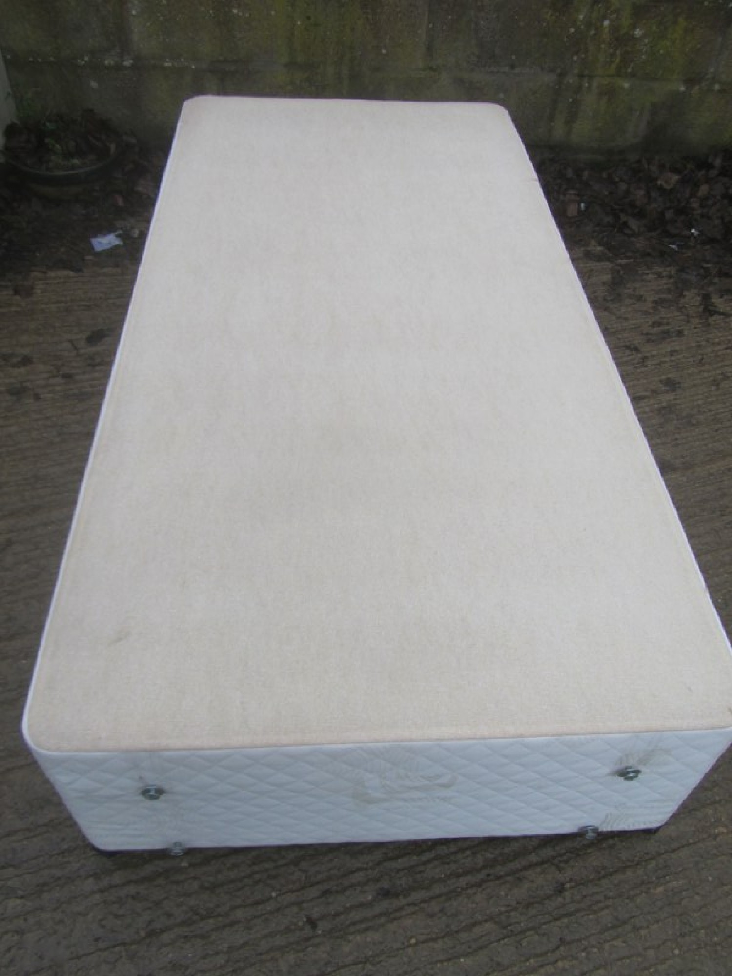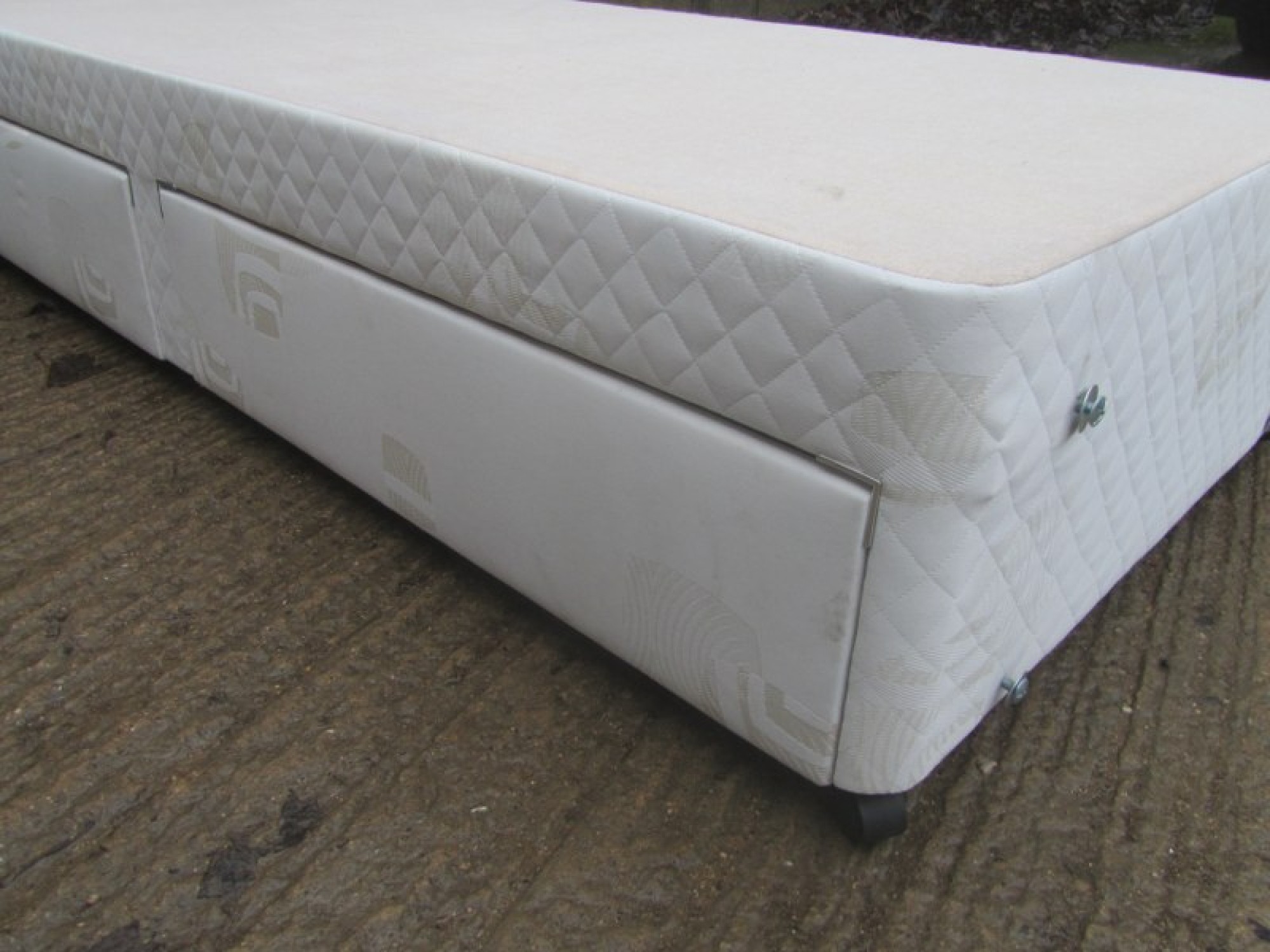 A 3' SINGLE BED. THERE ARE DRAWERS IN THE SIDE OF THE DIVAN, IDEAL FOR STORING SHOES, CLOTHES etc. THE BASE IS CLEAN AND IN GOOD CONDITION.