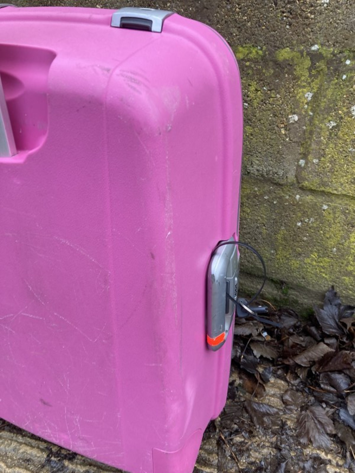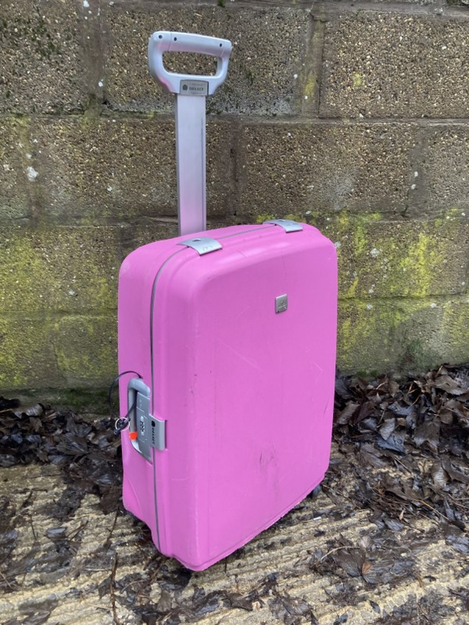 A LARGE HARDCASE SUITCASE, 2 WHEELS. ROBUST ENOUGH TO SURVIVE AIRPORT BAGGAGE, OR IDEAL FOR 'MOUSE PROOF' STORAGE IN THE LOFT.