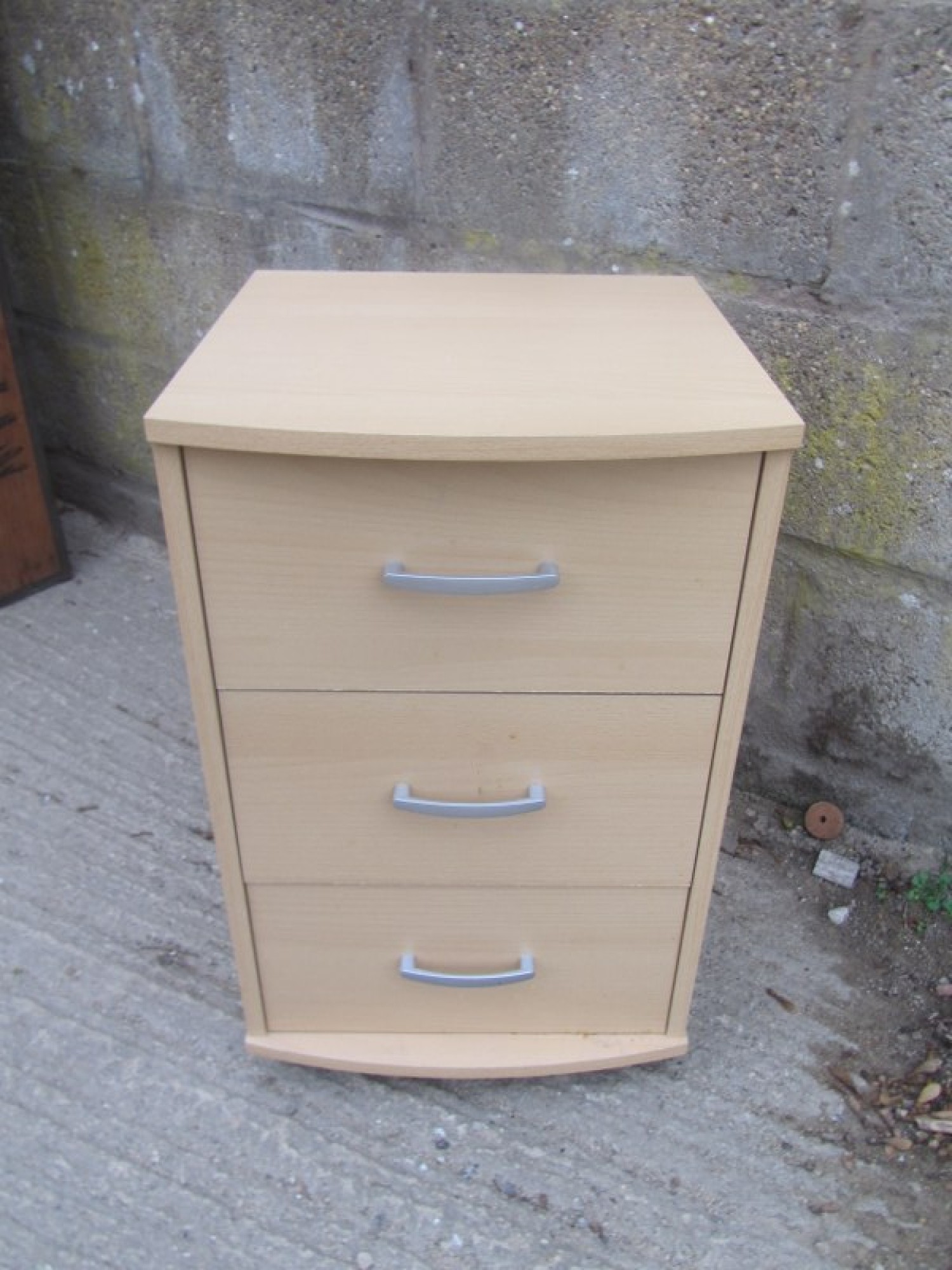 Items for Sale SMALL BEECH EFFECT BEDSIDE CABINET / CHEST OF DRAWERS Share: View Larger Image View Larger Image View Larger Image View Larger Image Select to enlarge Swipe £ 15 A SMALL BEECH EFFECT BEDSIDE CABINET. DRAWERS. ADDITIONAL DETAILS RESERVE ITEM Condition:GOOD Manufacture Date:2000s Height:61 cms Length:38 cms Depth:39 cms Quantity:1 Item Number:40400 * Please complete all the fields below to send an enquiry about this product. Please reserve this item for me… Reset Send