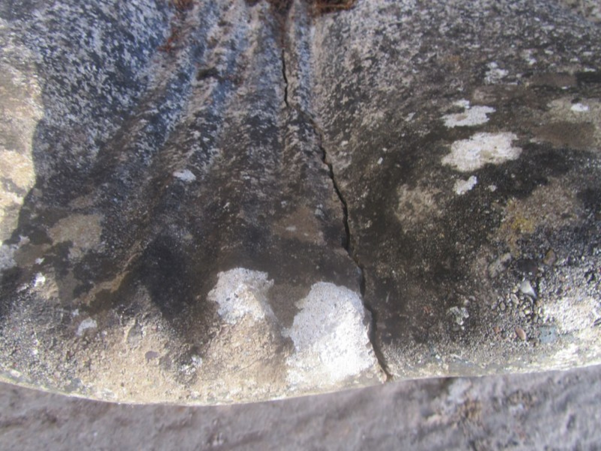 A CAST STONE BIRD BATH. IT HAS BEEN OUTSIDE FOR YEARS, IT HAS A WEATHERED LOOK. PROBABLY ABOUT 20-30 YEARS OLD. SOME CHIPS AND WEAR. CRACKED AT THE FRONT, IT WILL NOT HOLD WATER.