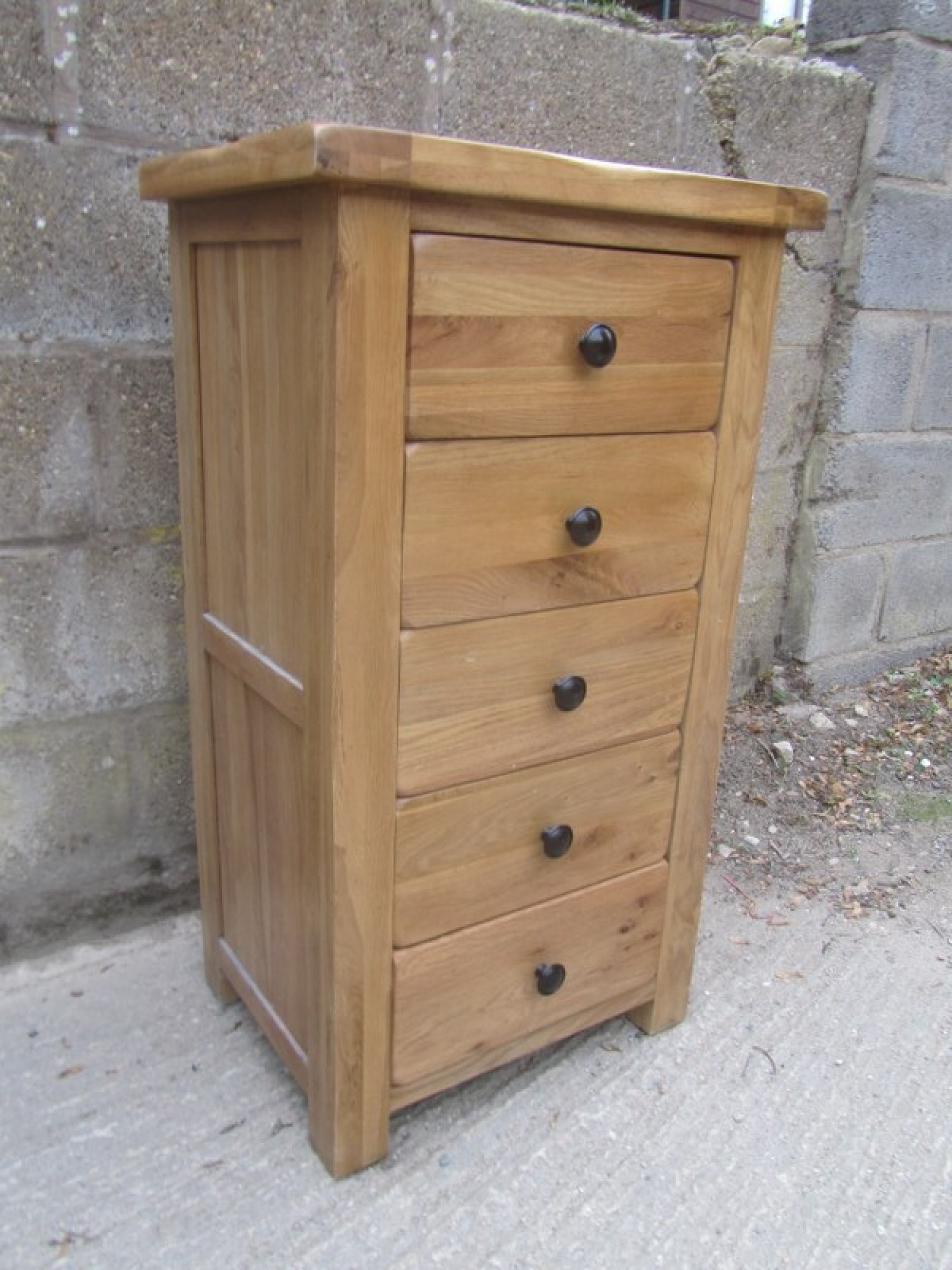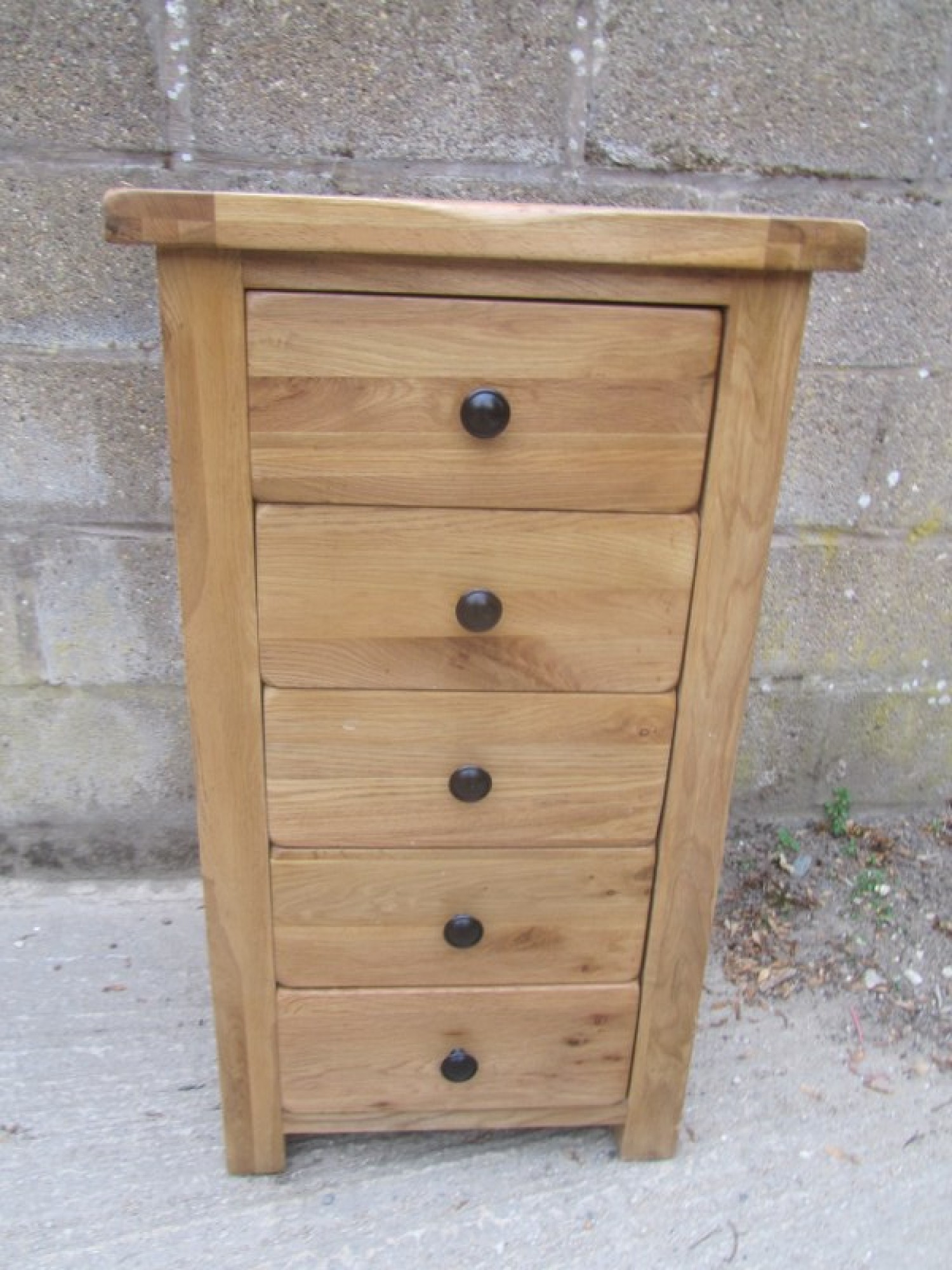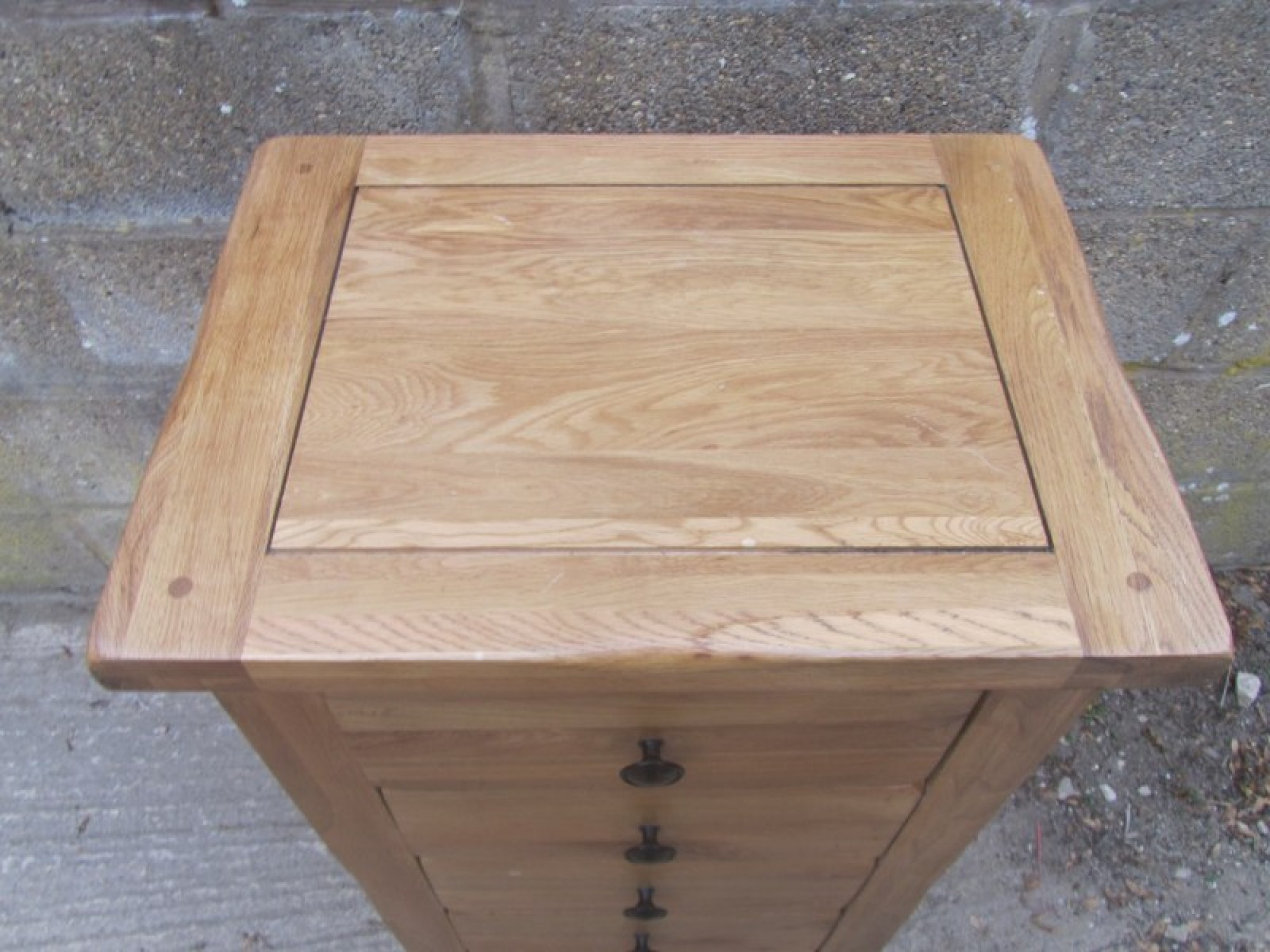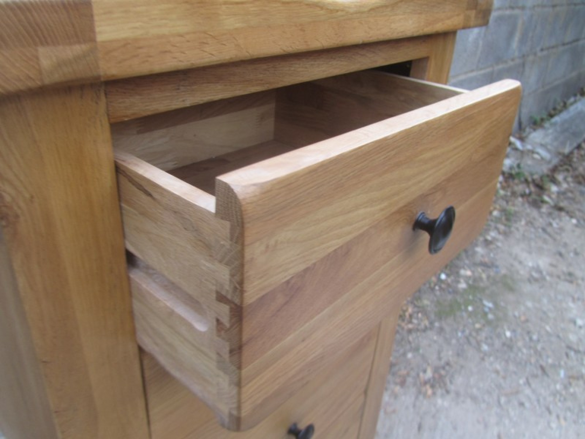 A STURDY OAK & OAK VENEERED CABINET. DRAWERS RUN WELL.