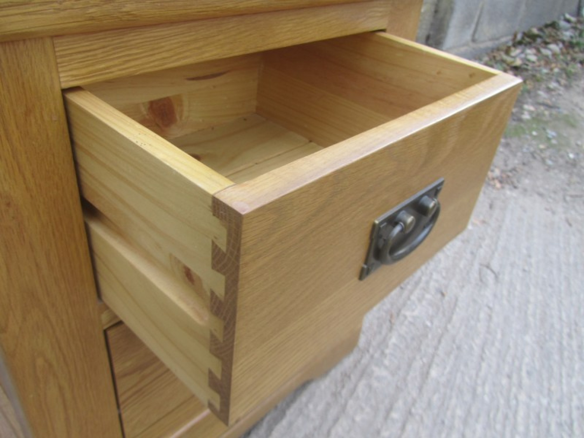 A STURDY OAK & OAK VENEERED CABINET. WITH A DRAWER.