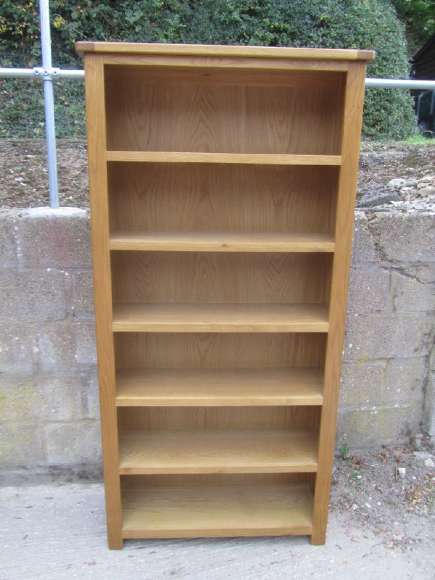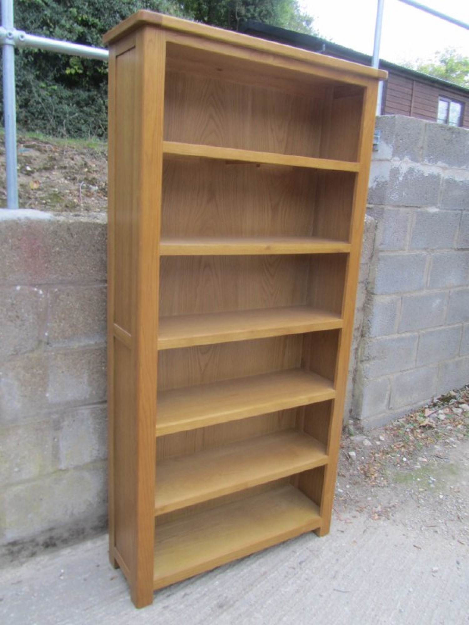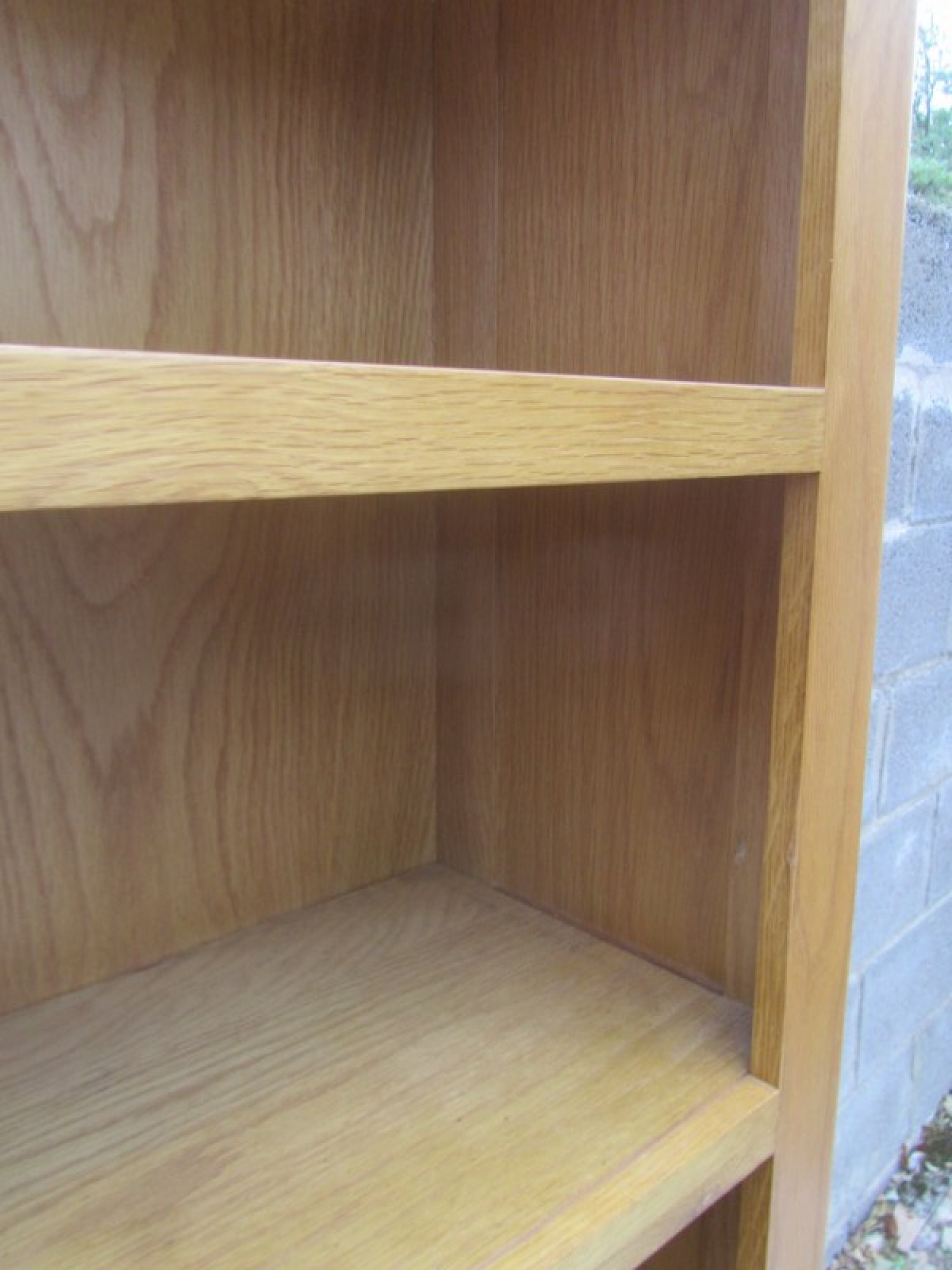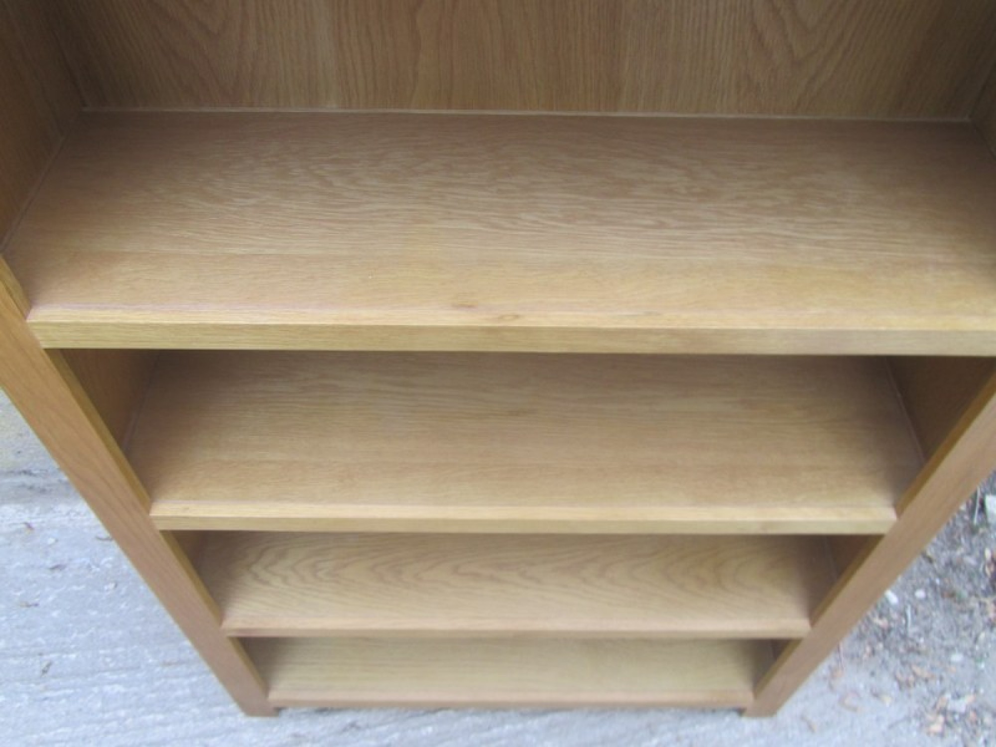 A STURDY OAK & OAK VENEERED STURDY BOOKCASE. FITTED SHELVES.