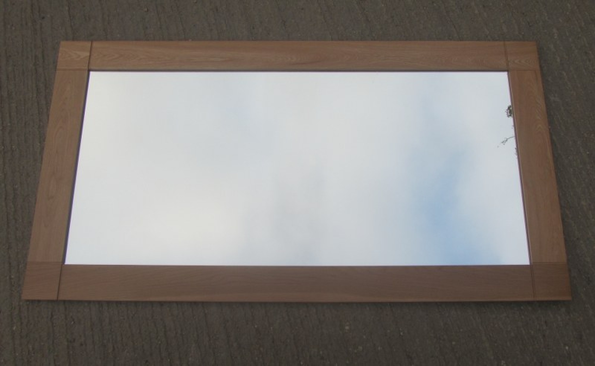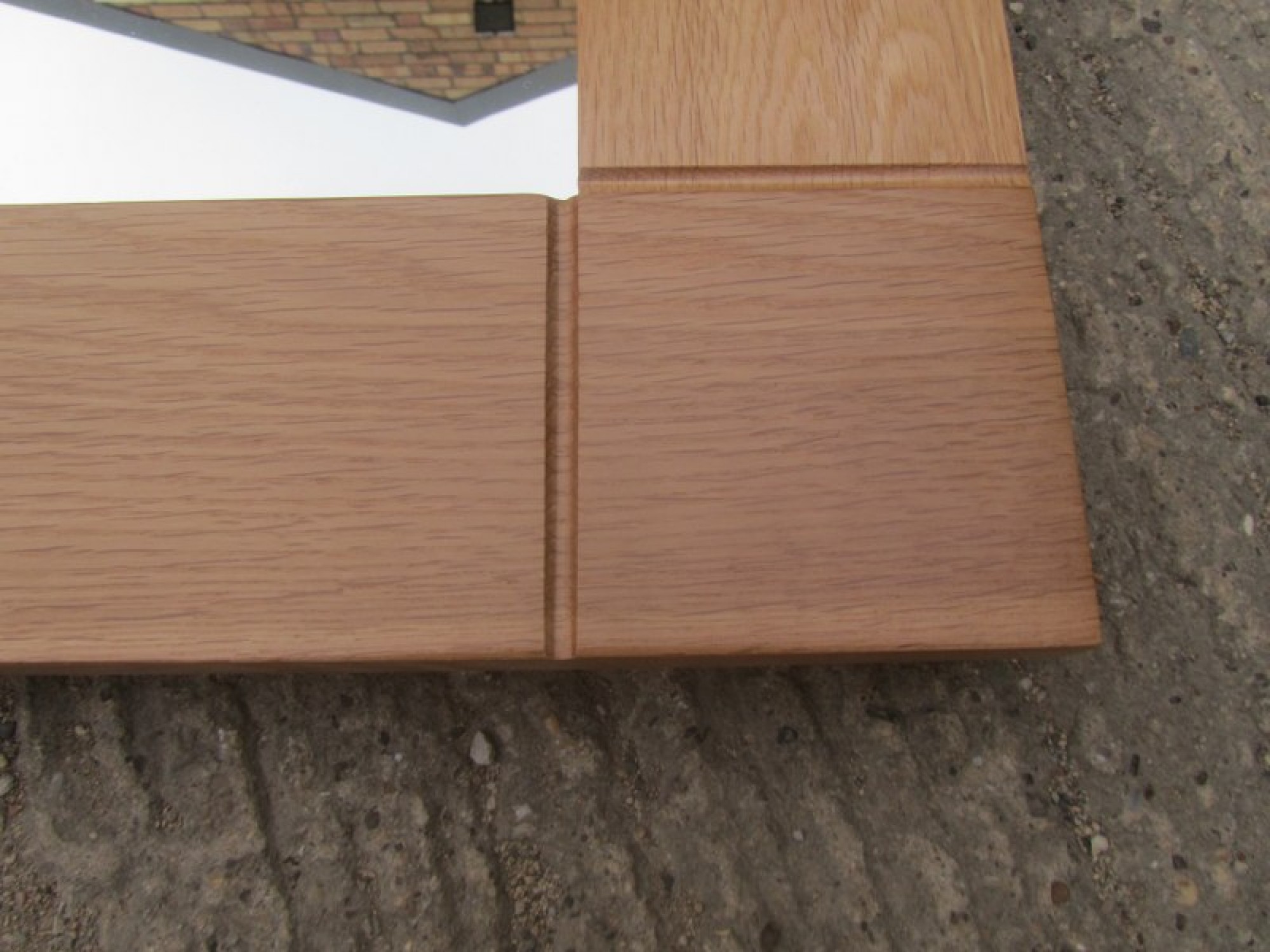 A LARGE OVERMANTLE OR DRESSING WALL MIRROR. OAK FRAME, GOOD QUALITY MIRROR.