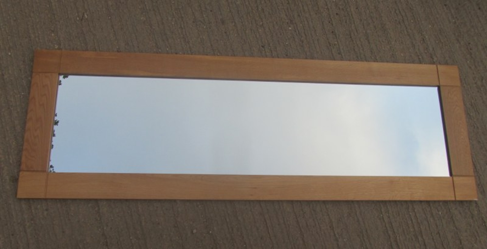 A LARGE OVERMANTLE OR DRESSING WALL MIRROR. OAK FRAME, GOOD QUALITY MIRROR.