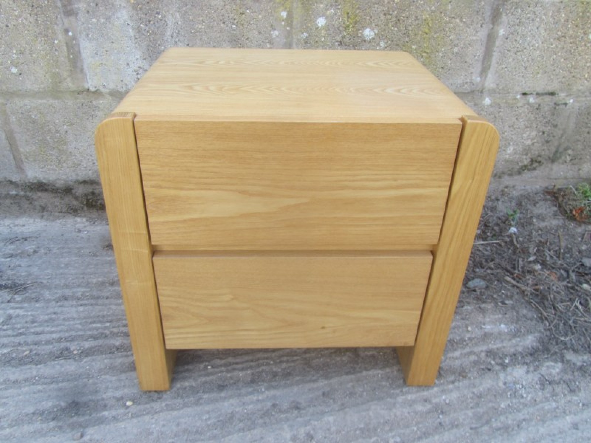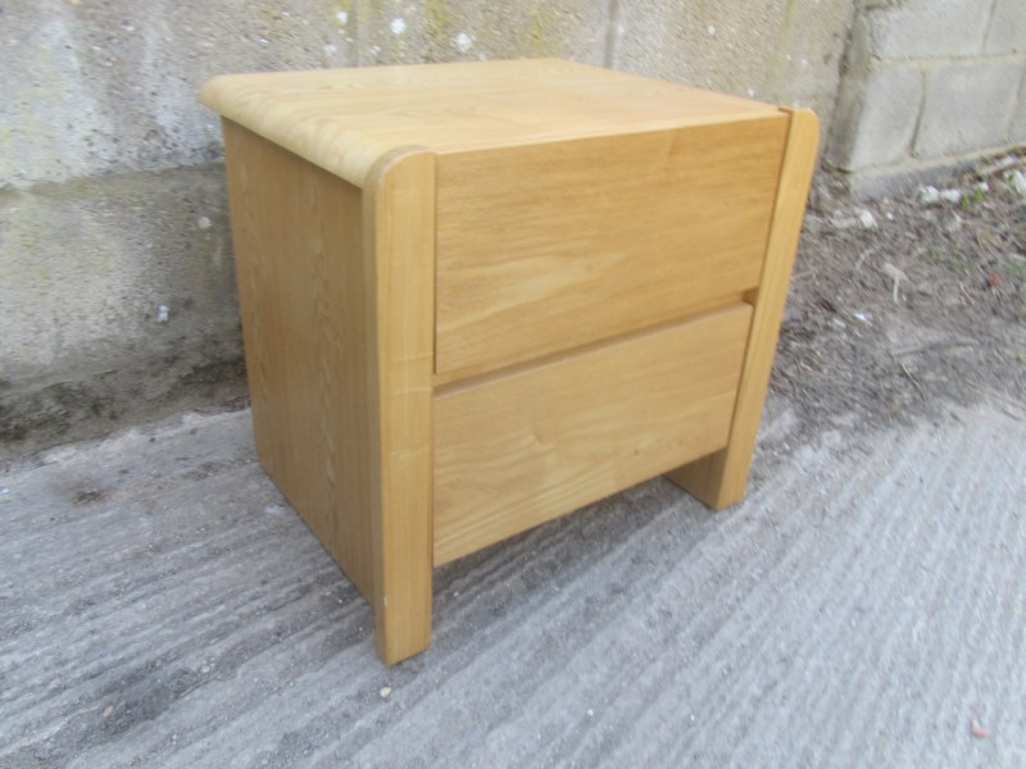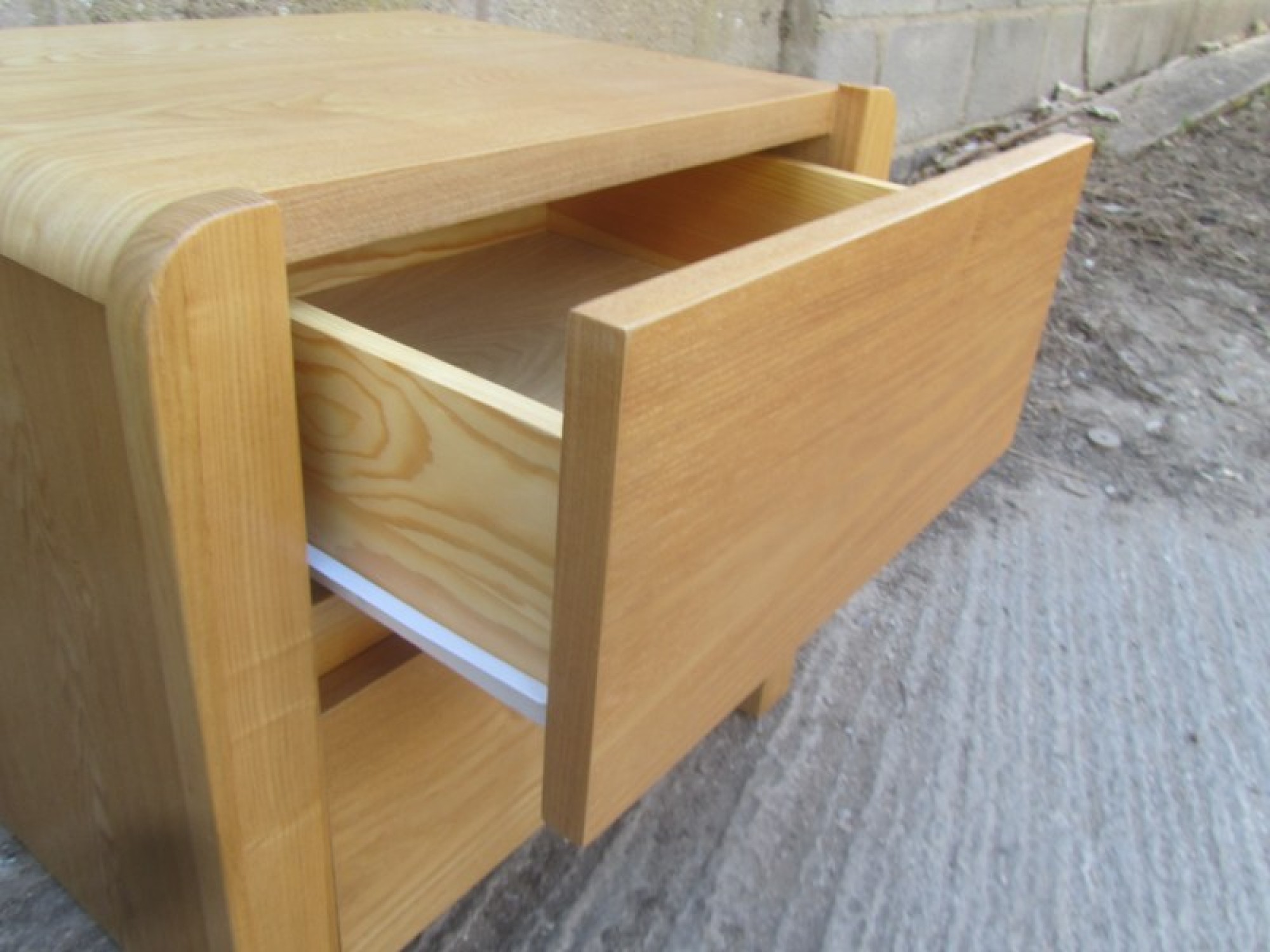 A STURDY OAK VENEERED CABINET. WITH 2 DRAWERS.