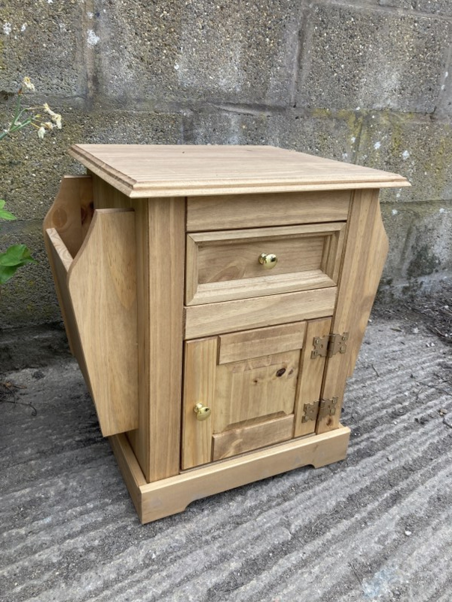 A SOLID PINE COFFEE TABLE. WITH MAGAZINE STORAGE BOTH SIDES.
