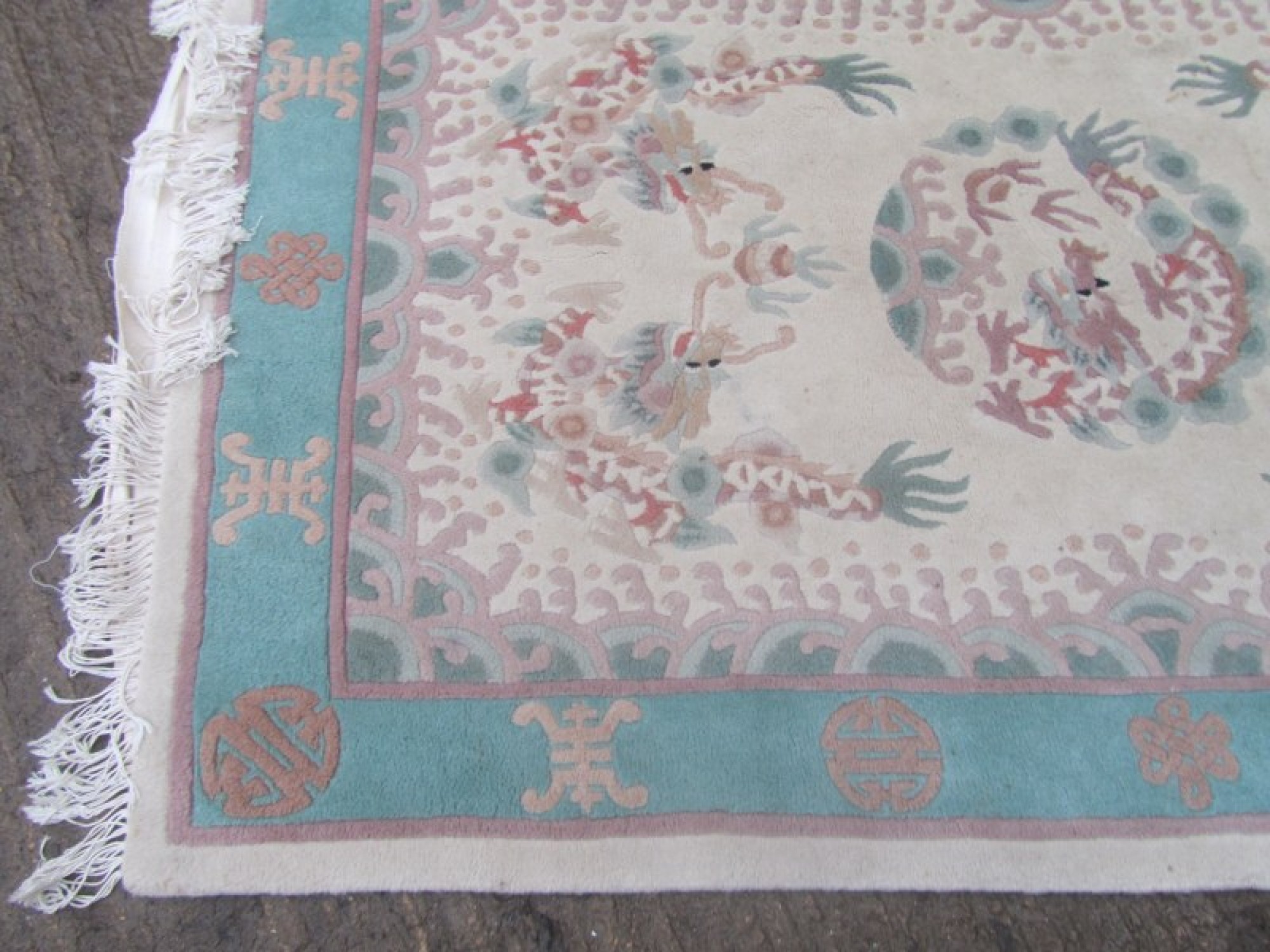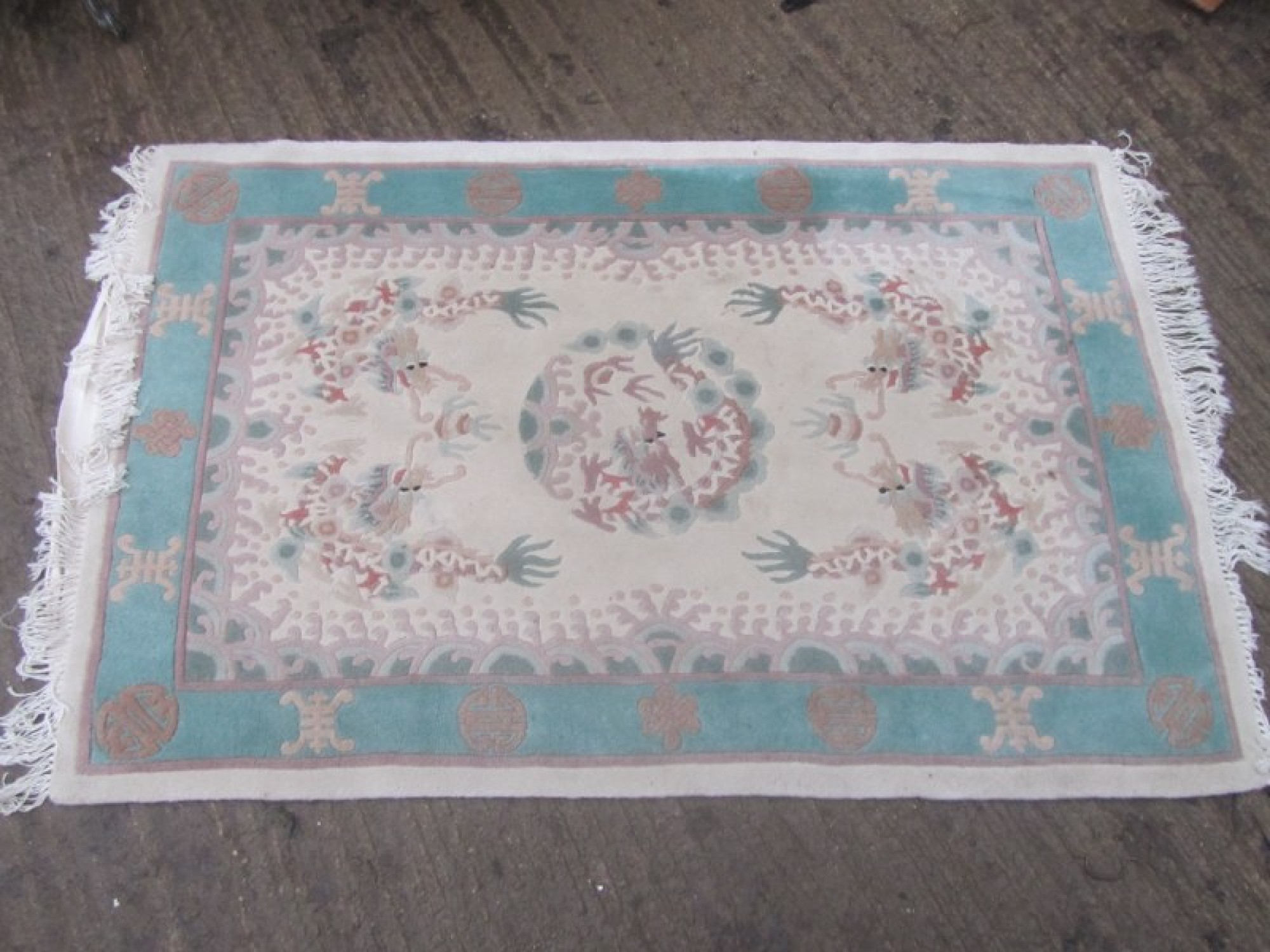 A RECTANGULAR RUG WITH A TRADITIONAL PATTERN. COLOURED PATTERN.