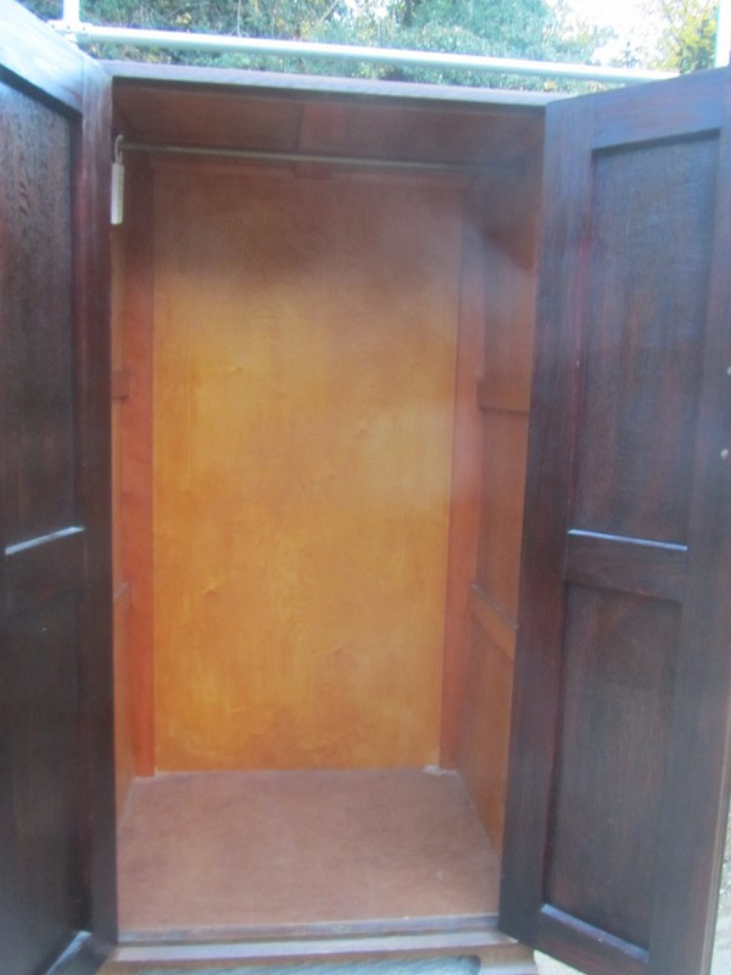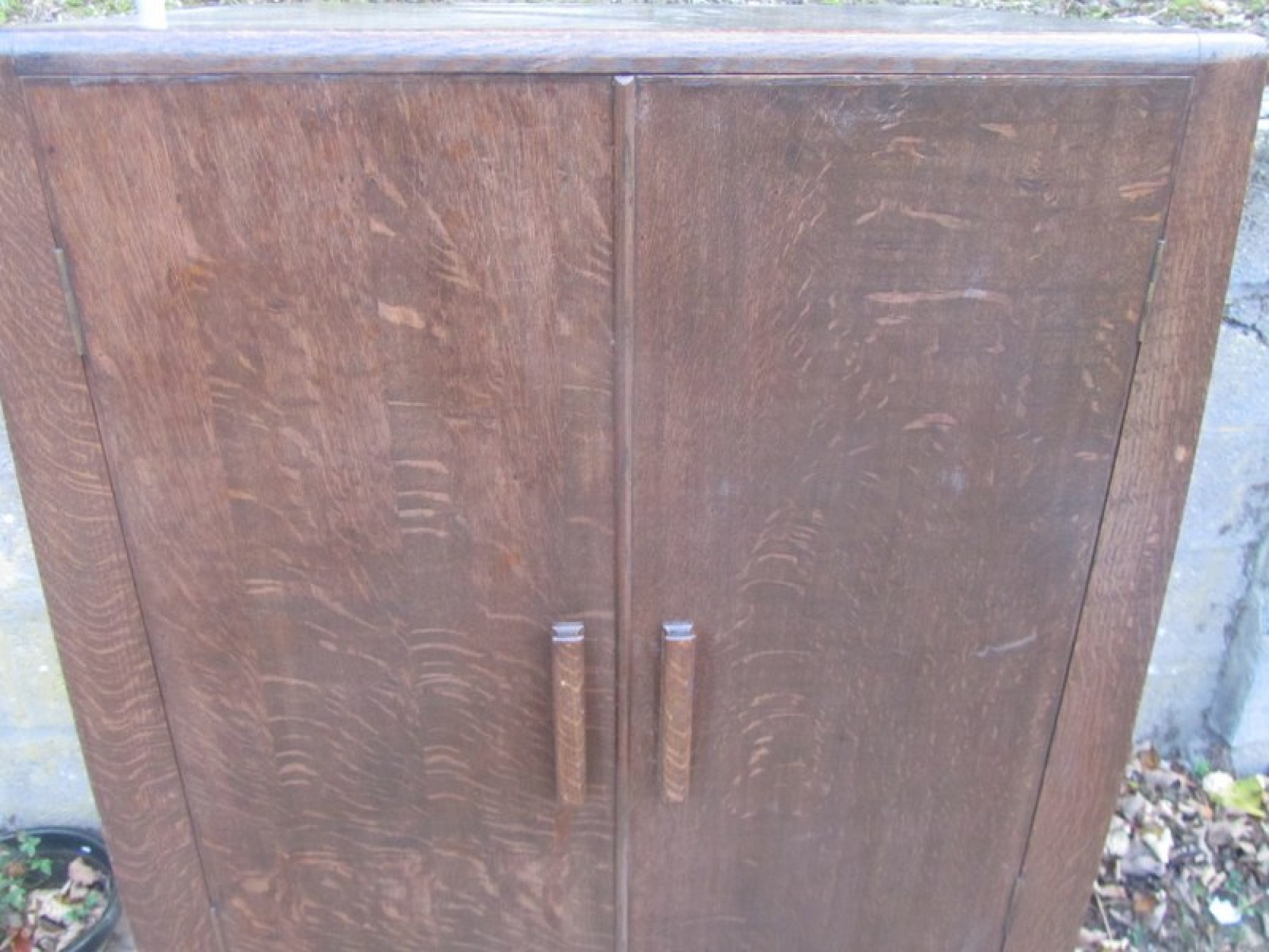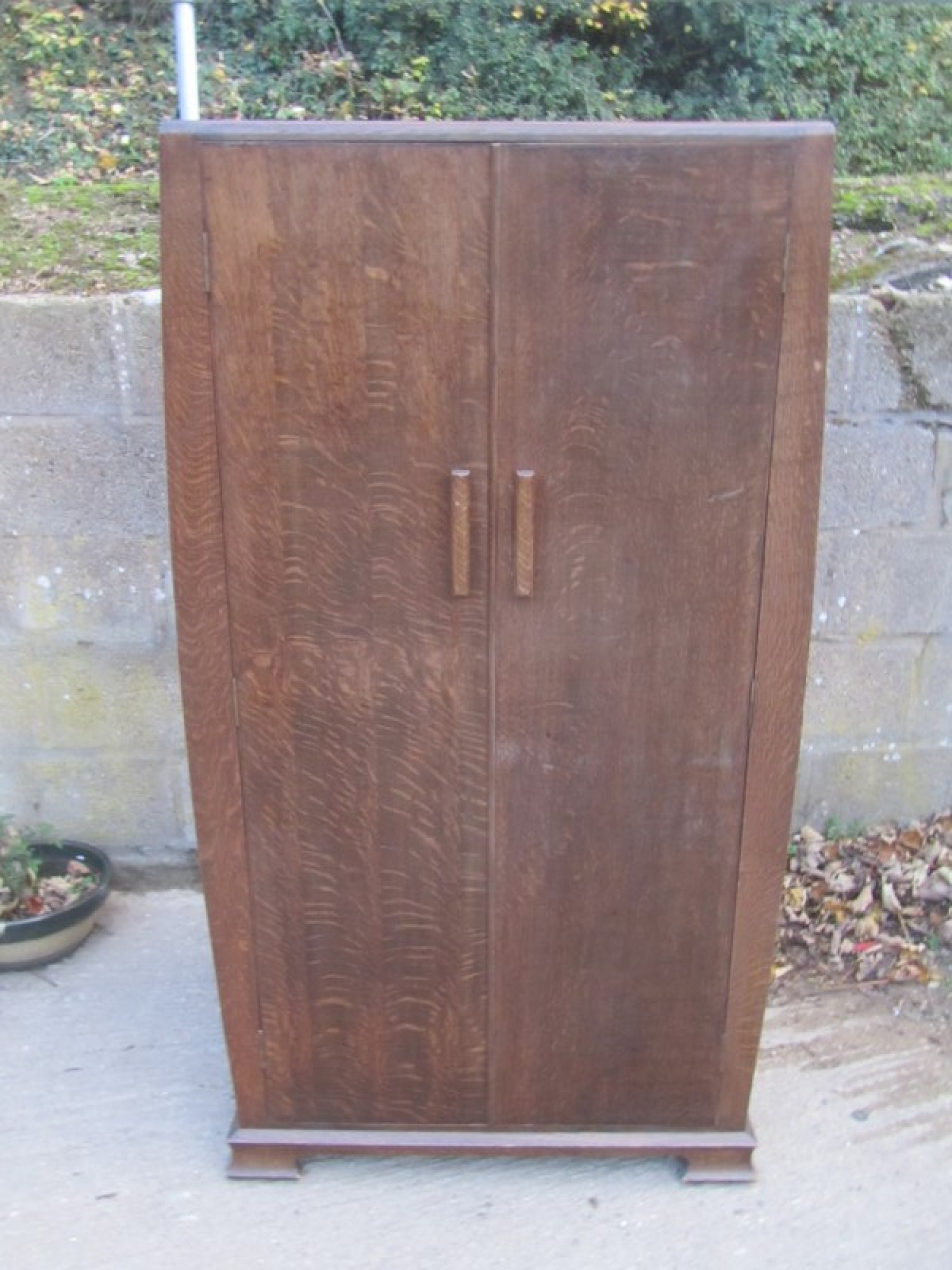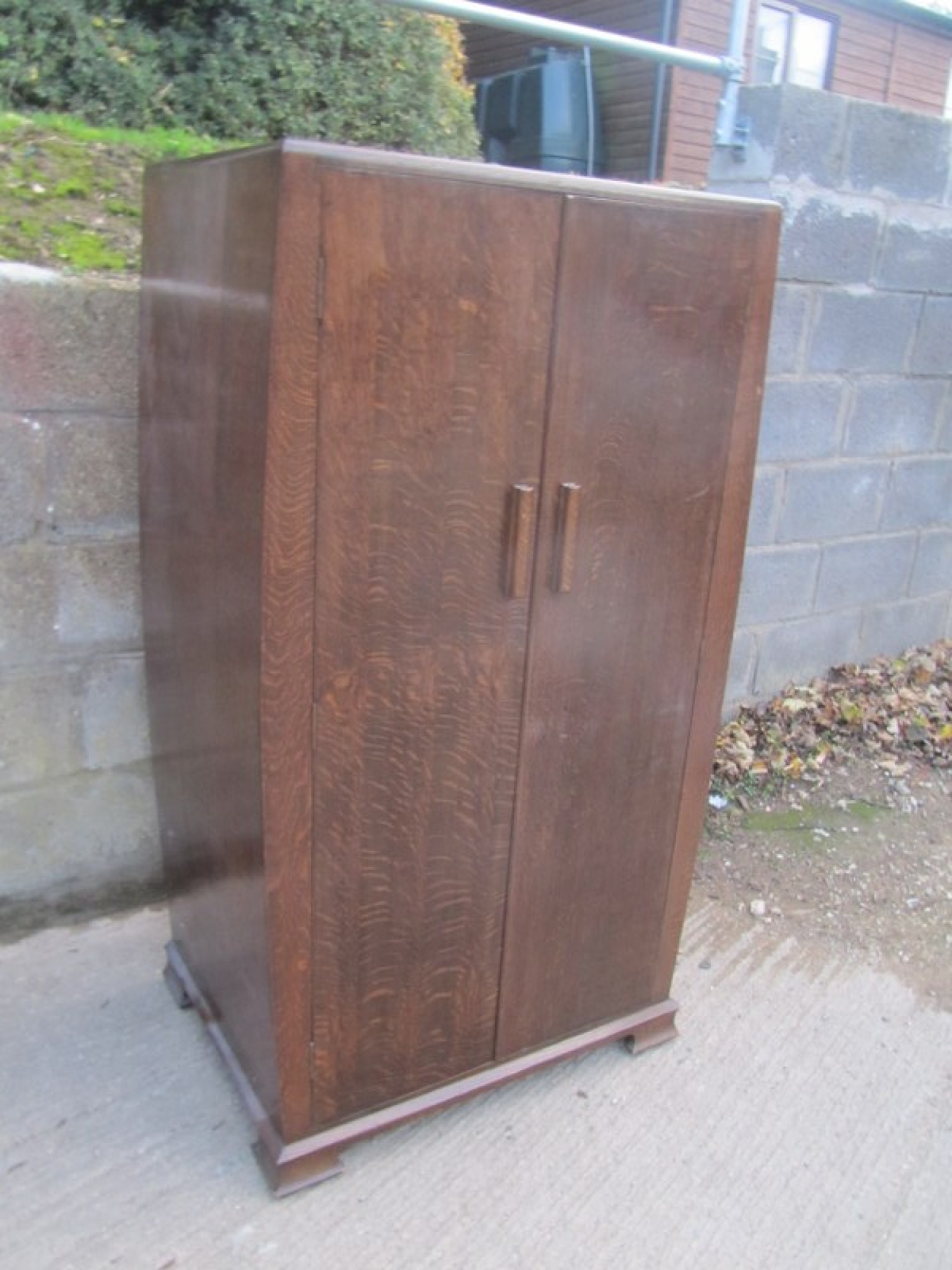 THIS IS AN OAK VENEERED WARDROBE FROM THE 1940s. IT IS A GREAT VINTAGE PIECE, A USEFUL ITEM FOR THE HOME. IT HAS 2 DOORS, PLENTY OF STORAGE SPACE. HANGING RAIL IN SIDE. IT IS IN AVERAGE CONDITION, MINOR WEAR AND TEAR.