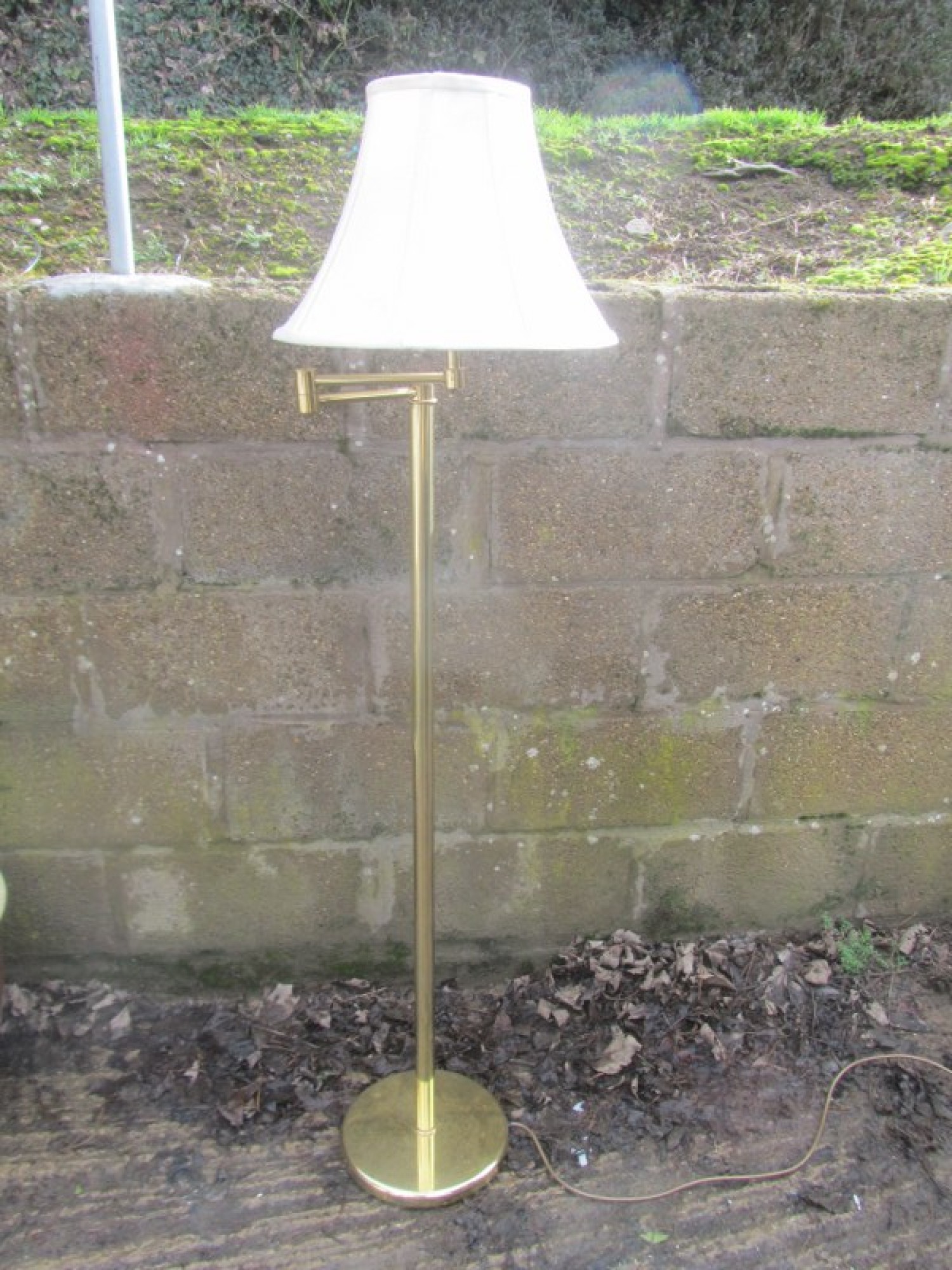 A TALL BRASS STANDARD LAMP. AN ATTRACTIVE AND STYLISH LAMP, IDEAL FOR ANYWHERE IN THE HOME. IT TAKES A STANDARD BAYONET BULB. WITH ADJUSTABLE SWING LIGHT.