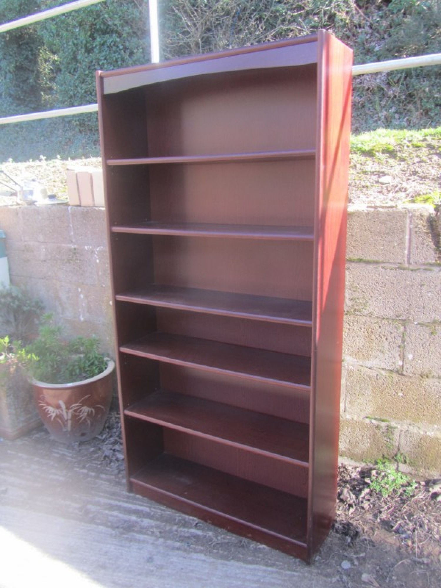 THIS IS A LARGE MAHOGANY VENEERED BOOKCASE. THIS HAS ADJUSTABLE SHELVING, IDEAL FOR STORING BOOKS, DISPLAYING ITEMS etc. AN ATTRACTIVE BOOKCASE IN GOOD CONDITION, SOME LIGHT WEAR AND TEAR. A GOOD QUALITY ITEM.